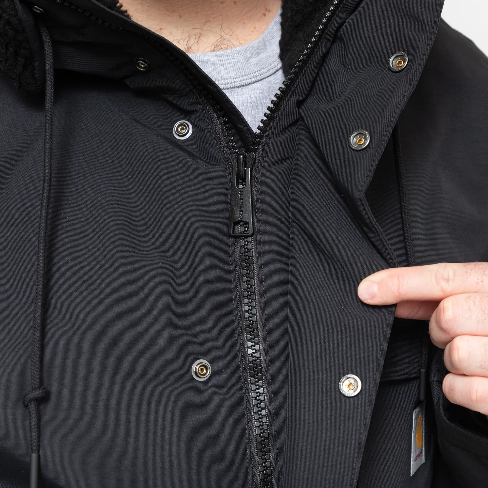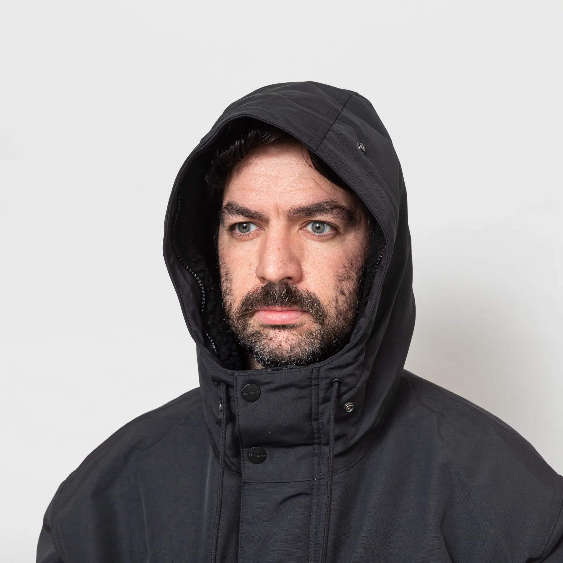 A proper winter coat from Carhartt WIP, constructed from midweight plain-woven nylon fabric with water-repellent qualities.