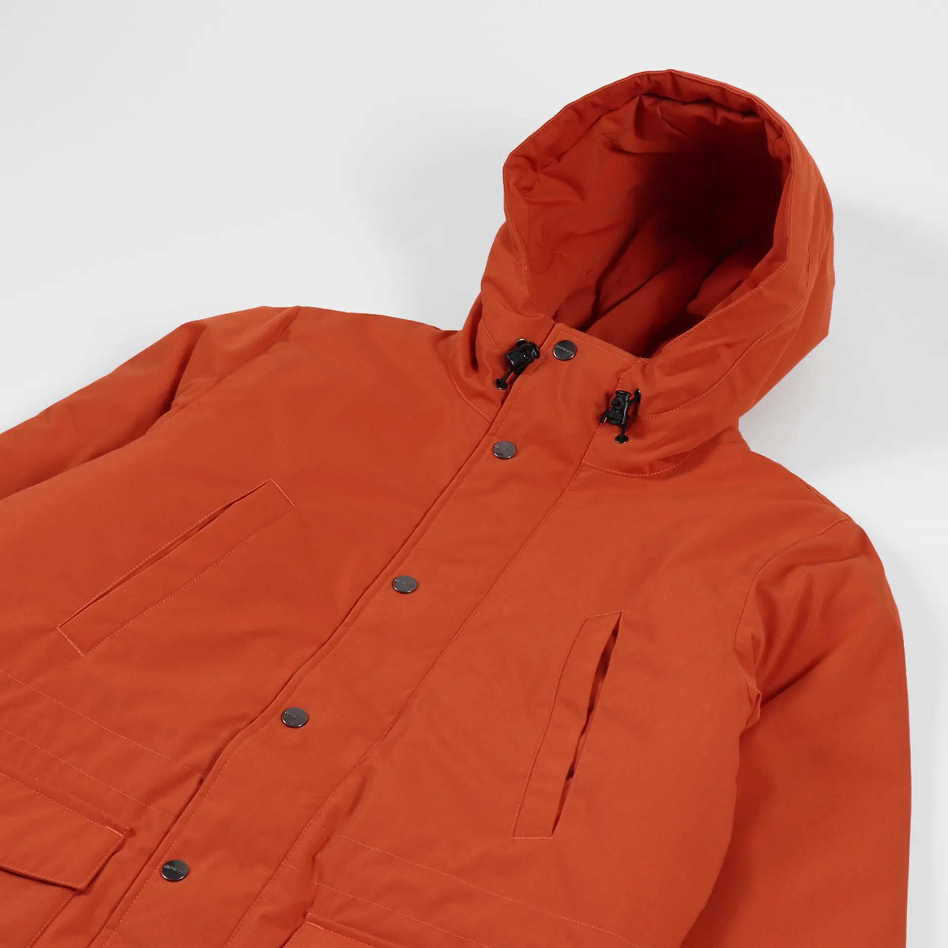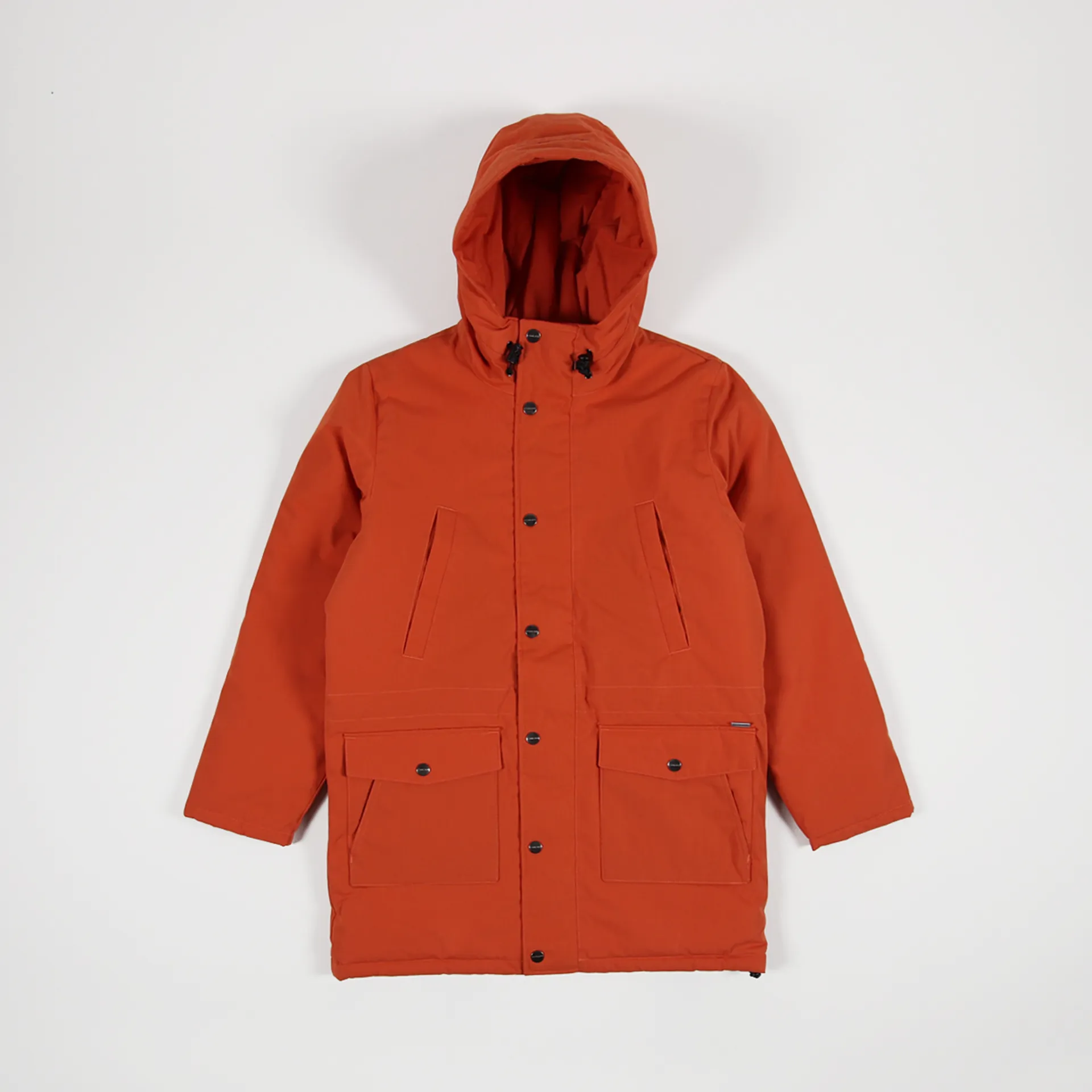 A winter parka from Carhartt WIP made from a weather-resistant 35% cotton and 65% polyester blended shell with a smooth nylon taffeta lining and a synthetic insulation for added warmth.