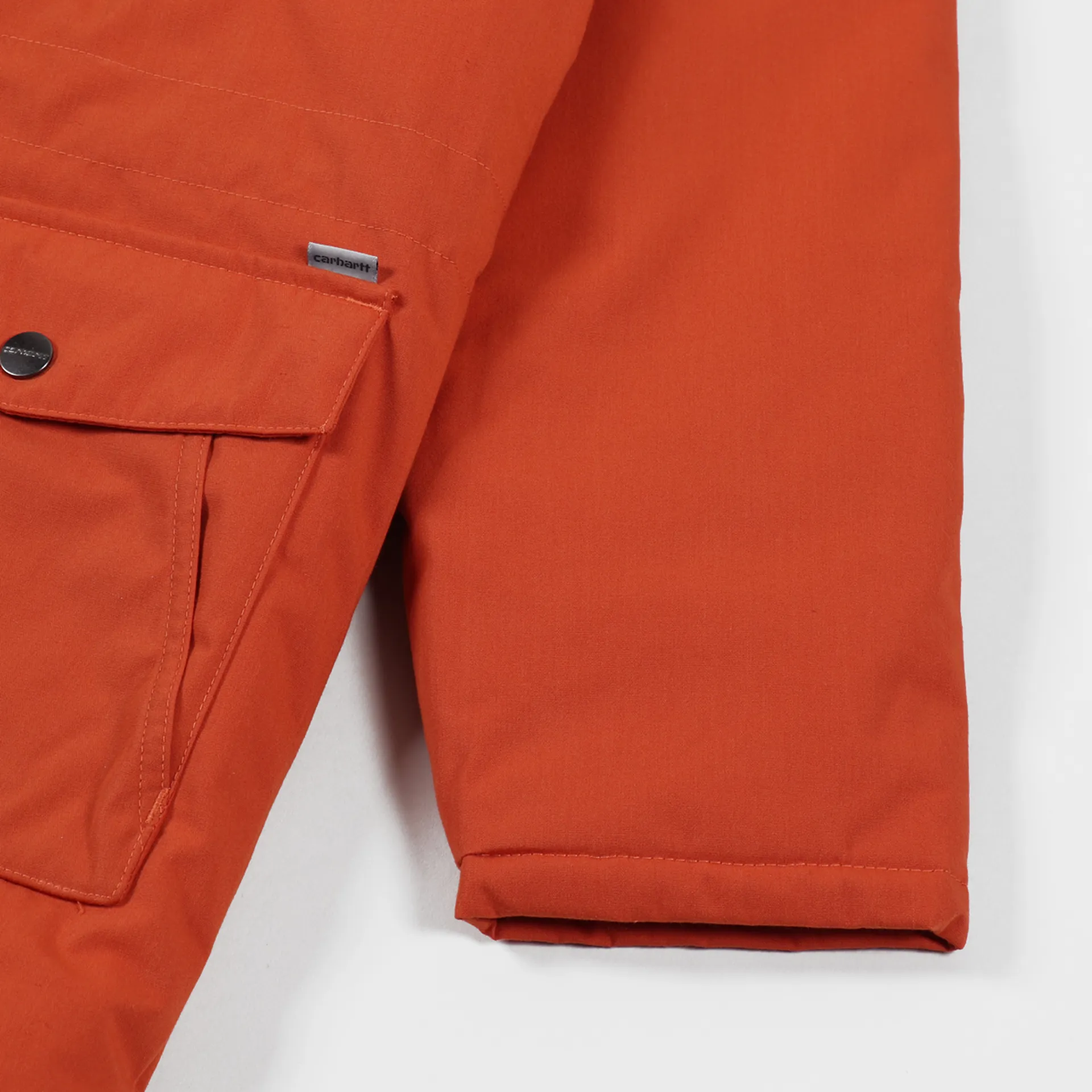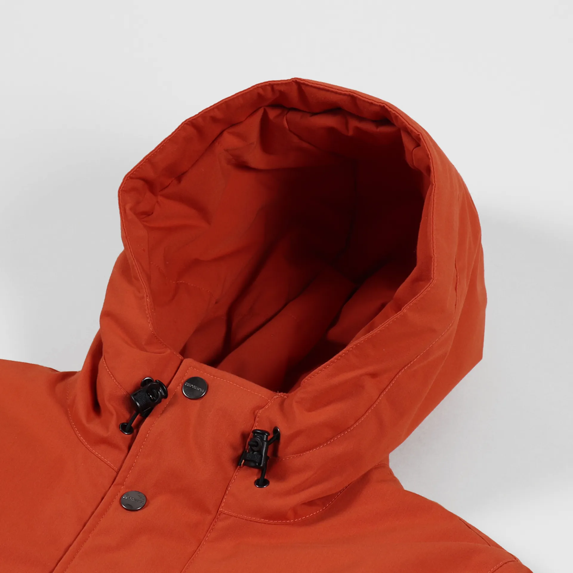 A winter parka from Carhartt WIP made from a weather-resistant cotton and polyester blended shell with a synthetic insulation and an adjustable fit with elasticate ddrawcords to the hem, waist and hood.
