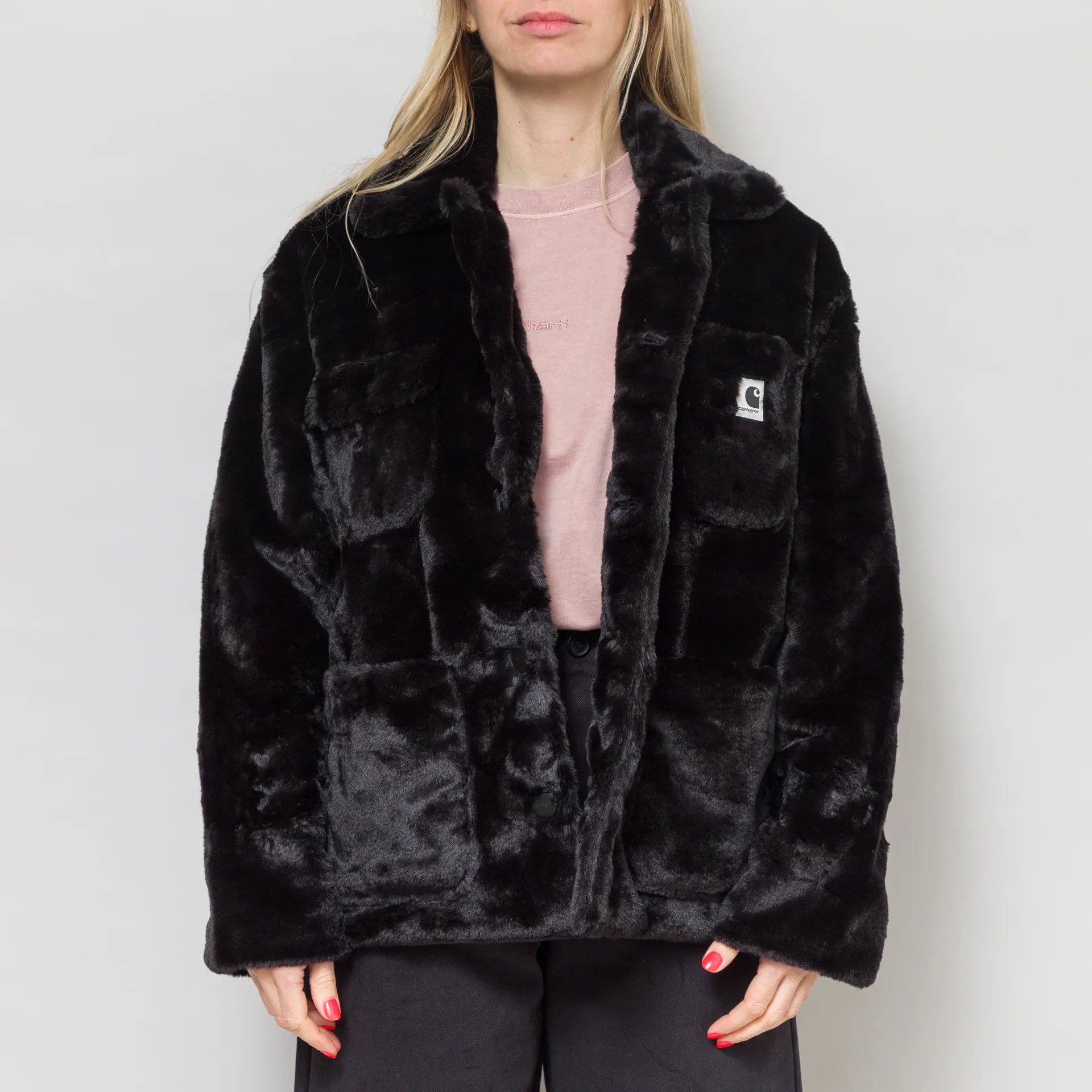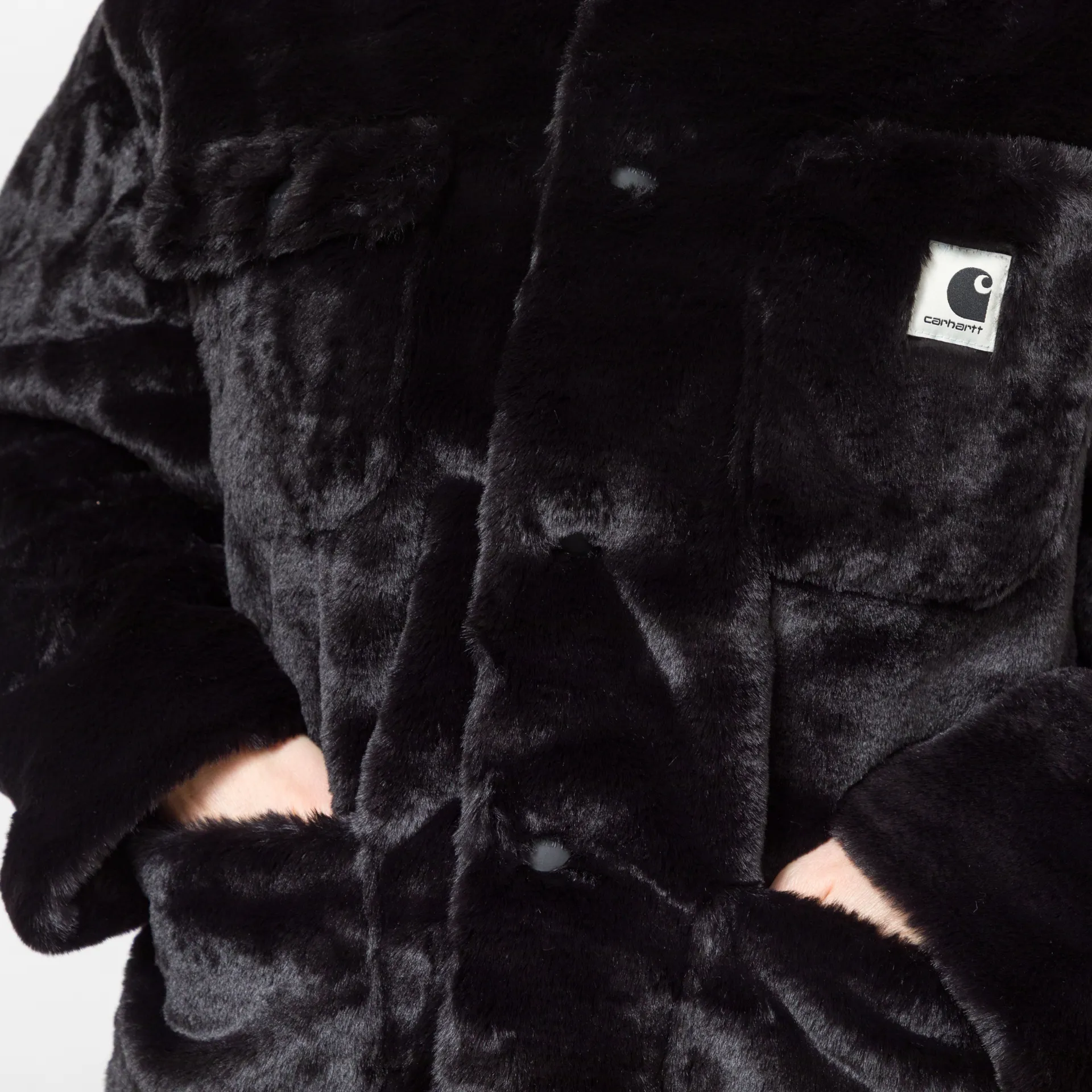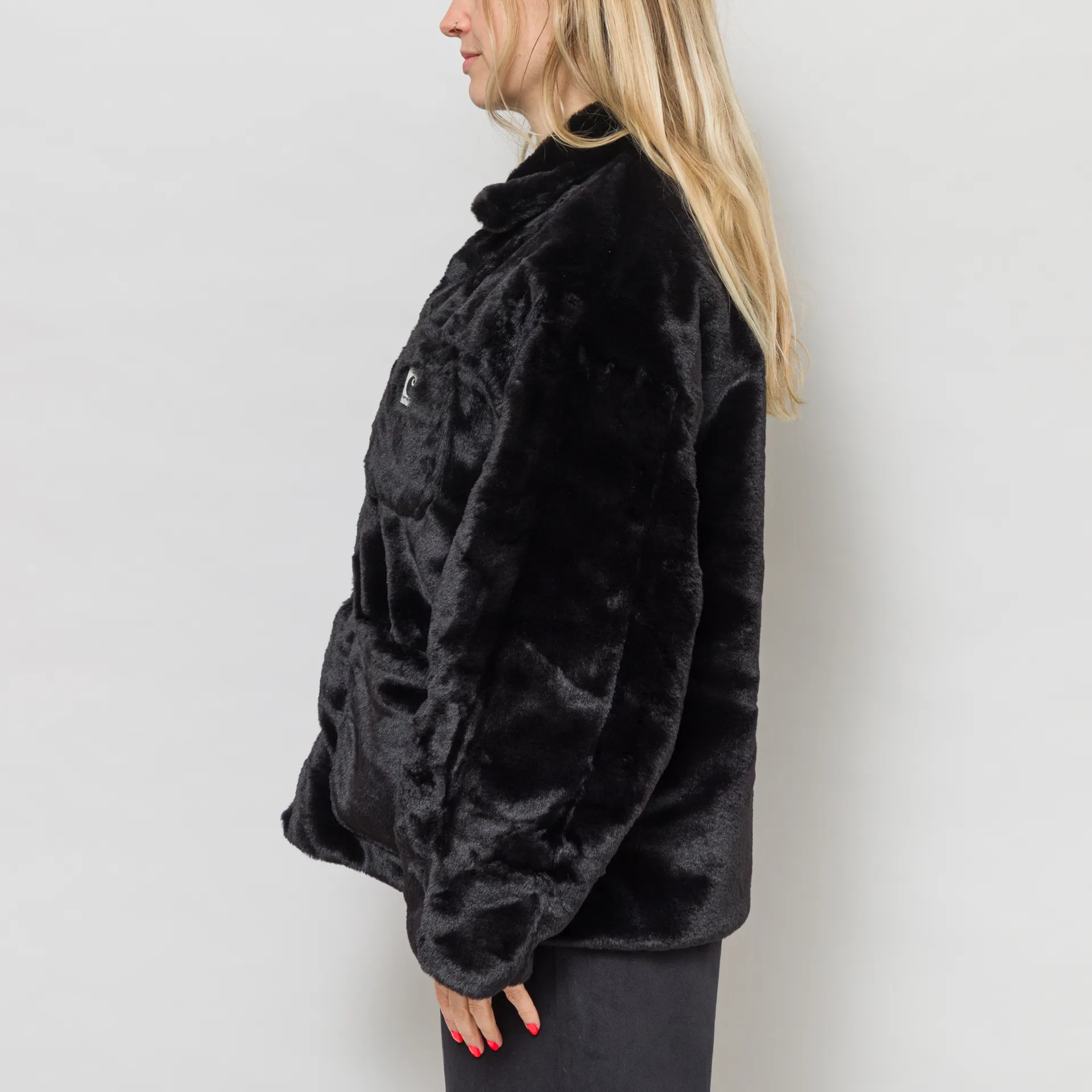 A faux fur jacket from Carhartt WIP, cut in a relaxed fit for a casual silhouette and constructed from super soft polyester with a 100% nylon lining.