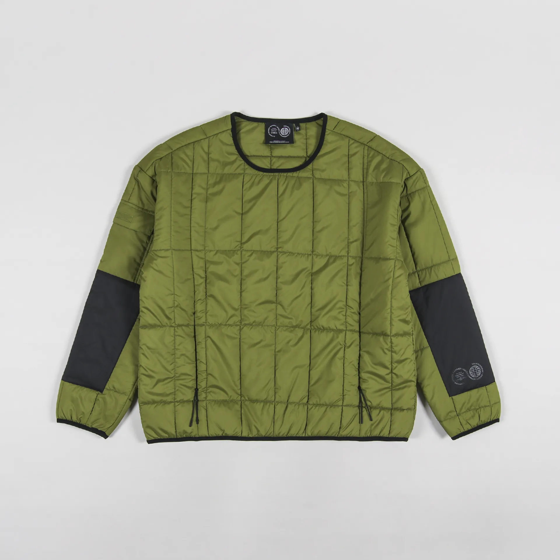A pullover crew neck from Carrier Goods, made from a lightweight and durable shell of 100% polyester ripstop with a synthetic insulation and an elasticated trim to the collar, hem and cuffs.