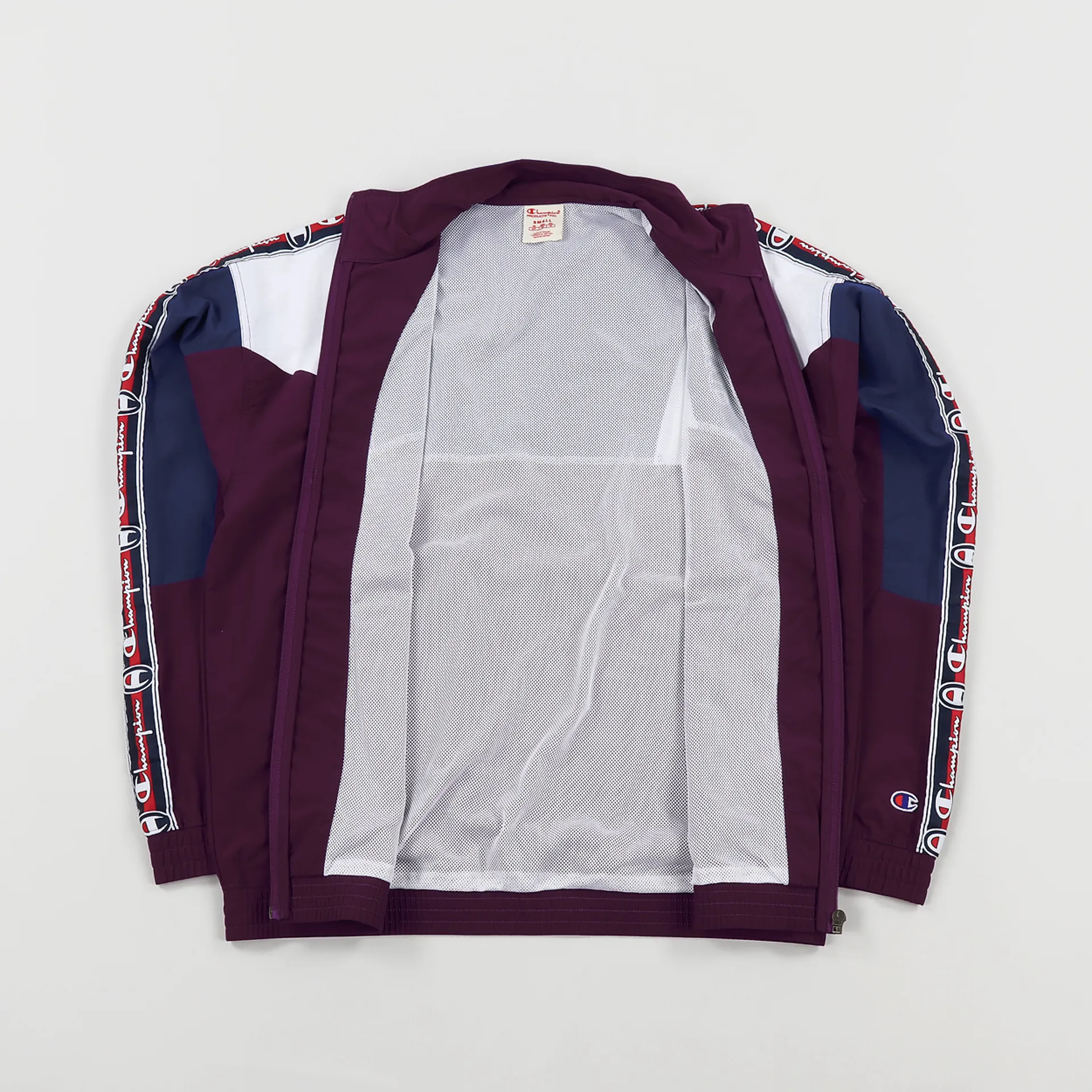 A lightweight tracksuit jacket from Champion made from 100% polyamide with a panelled design and sleeve taping. It has an embroidered logo to the cuff.