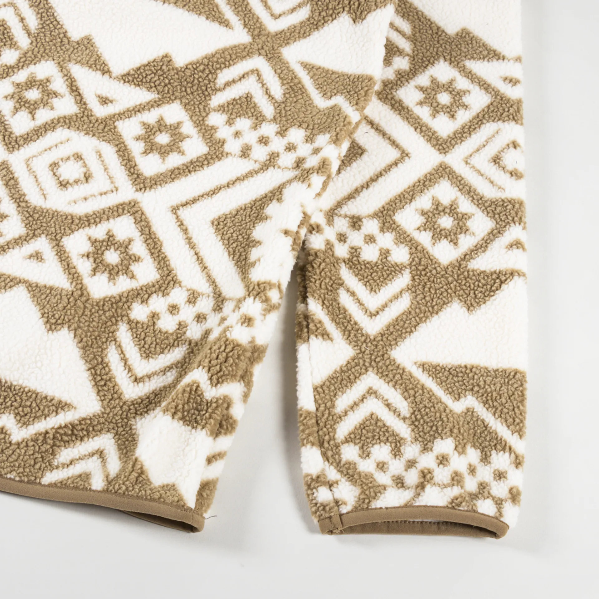 A fleece from Columbia made from a warm and comfortable sherpa-pile fabric of 100% polyester with a smooth lining, a snap-up neck and an elasticated trim.