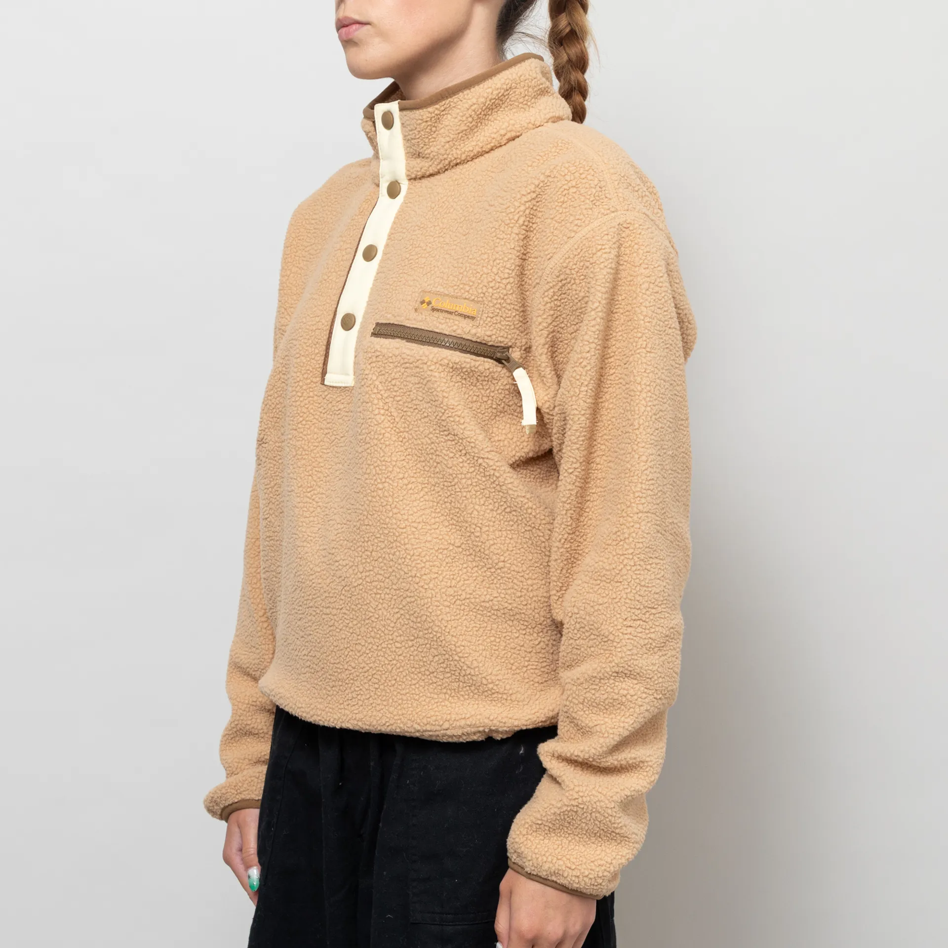 The Helvetia II Half Snap Fleece from Columbia has been cut in a regular fit for everyday comfort, crafted from a warm and soft 100% polyester sherpa pile.