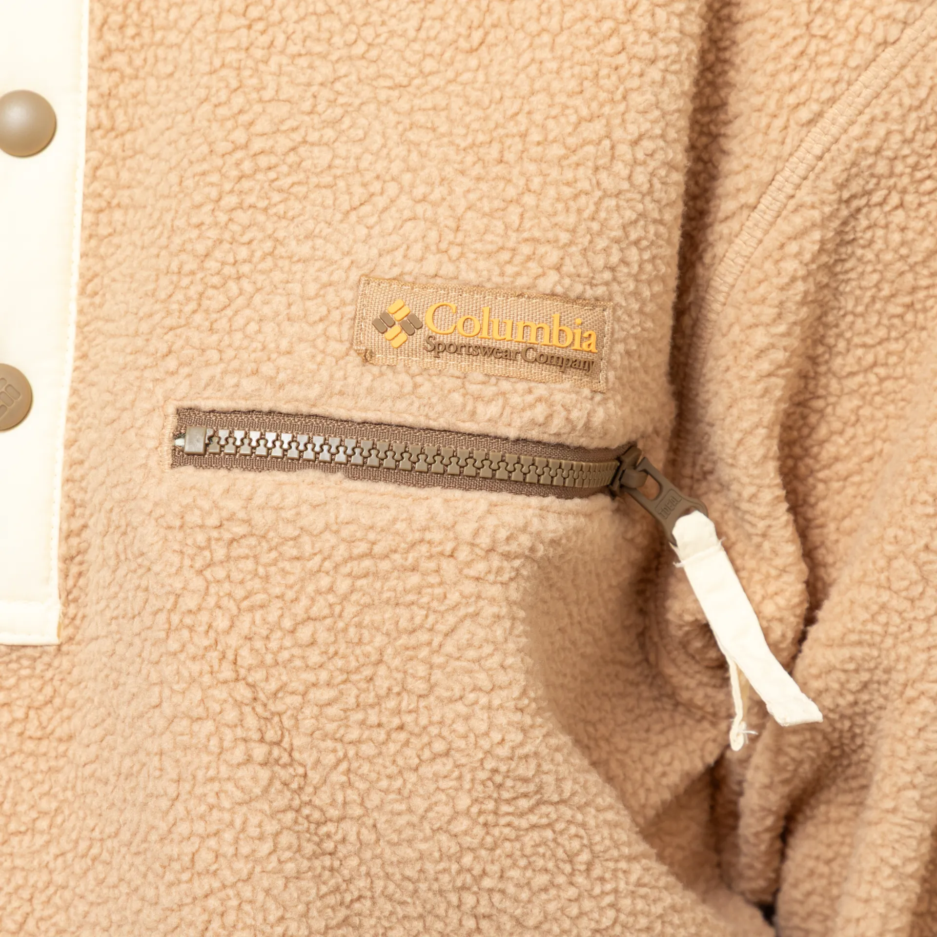The Helvetia II Half Snap Fleece from Columbia has been cut in a regular fit for everyday comfort, crafted from a warm and soft 100% polyester sherpa pile. It features a snap-button placket which leads up to a stand collar, with contrast binding to the hem and cuffs and a single zippered pocket to the chest. Finished off with the signature rubber Columbia logo above the pocket.