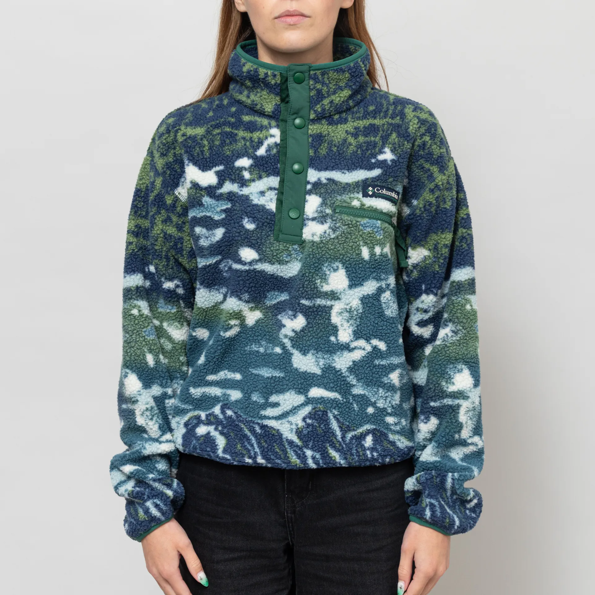 Columbia Womens Helvetia II Printed Half Snap Fleece Everblue Sister Rain Forest
