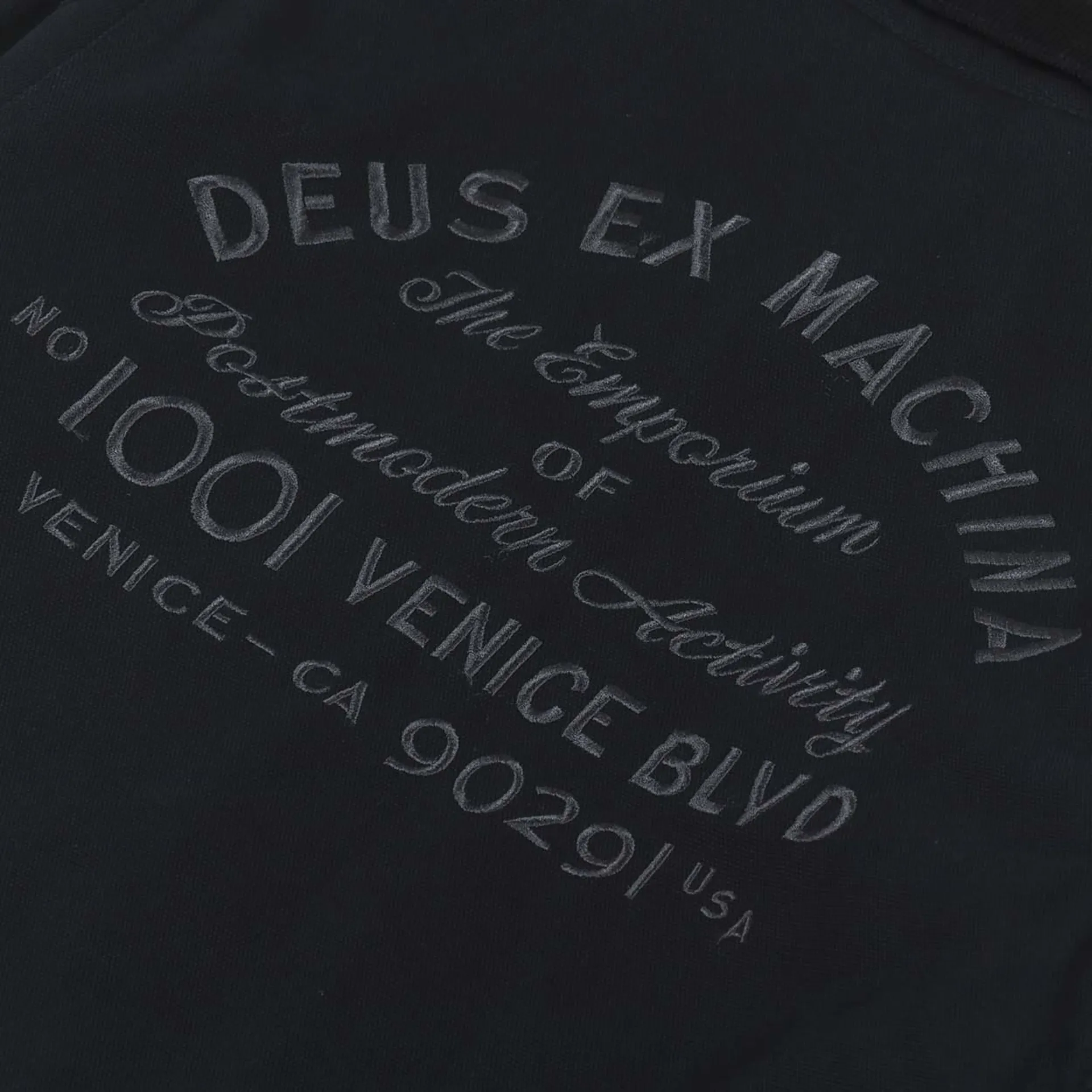This features embroidered branding to the chest and back, Deus Address style.