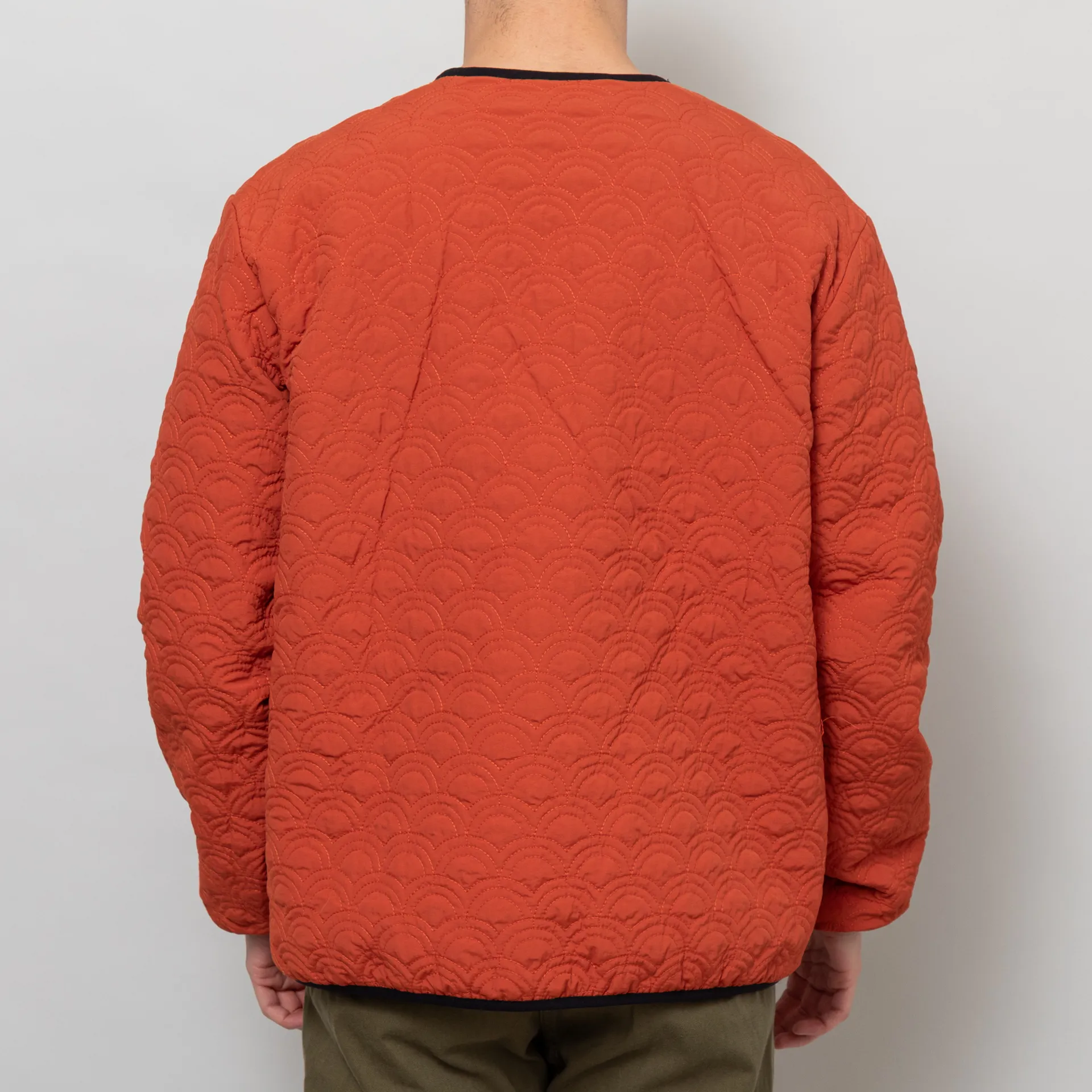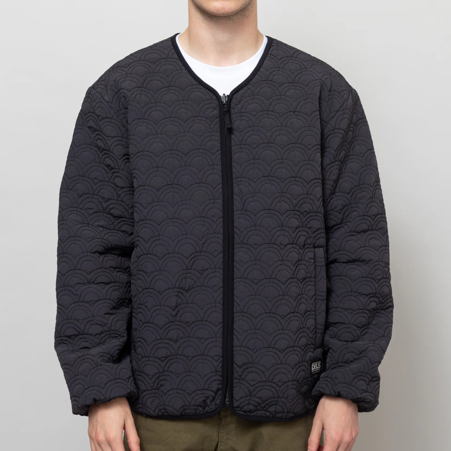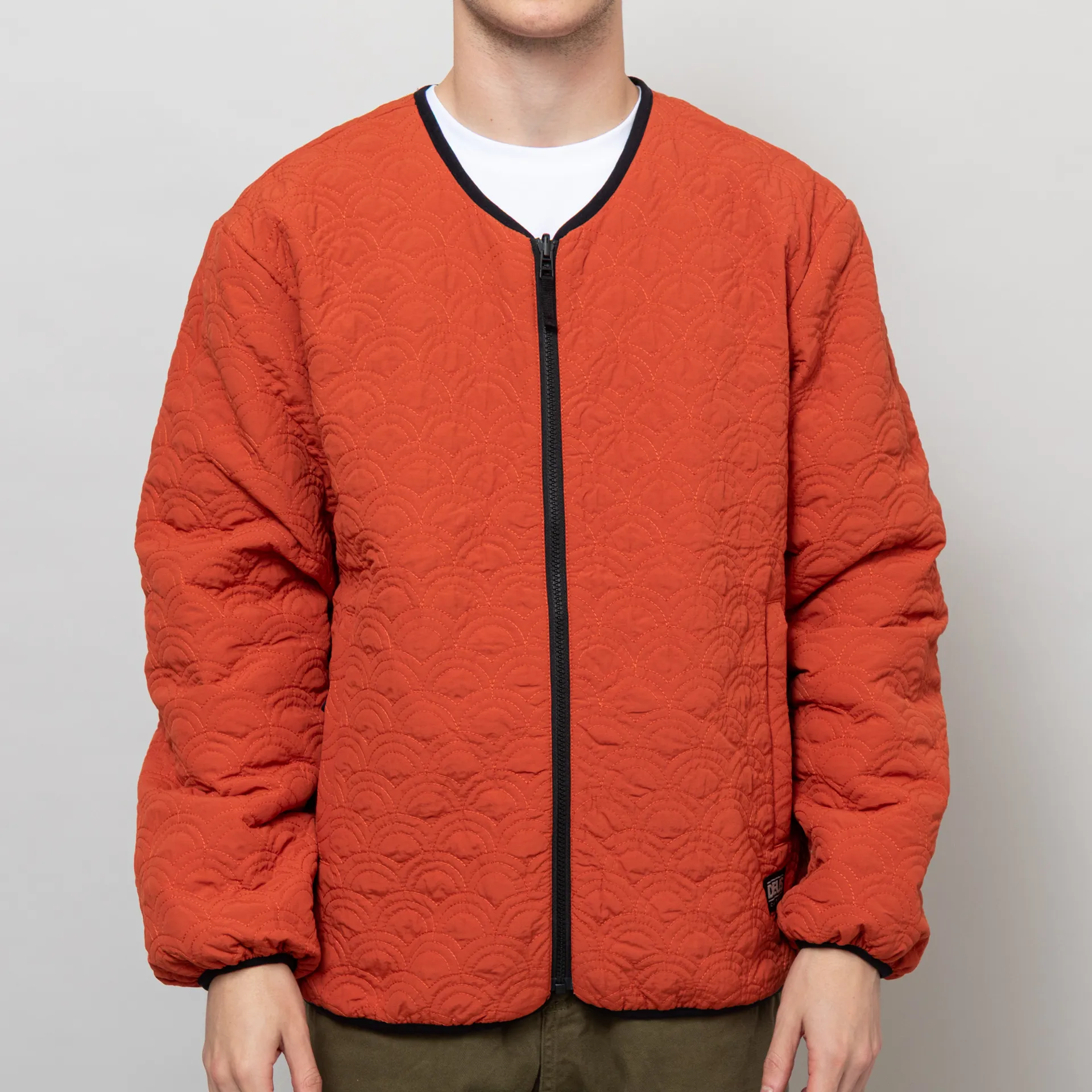 A reversible liner jacket from Deus, cut in a relaxed fit for a casual silhouette and made with an outer of 100% polyamide, decorated in a Segaiha pattern in topstitching. This jacket is filled with a lightweight polyester filling for added warmth. Both sides feature a zip-through front, leading to a collarless neckline, with two hand pockets and a Deus Customs logo patch.