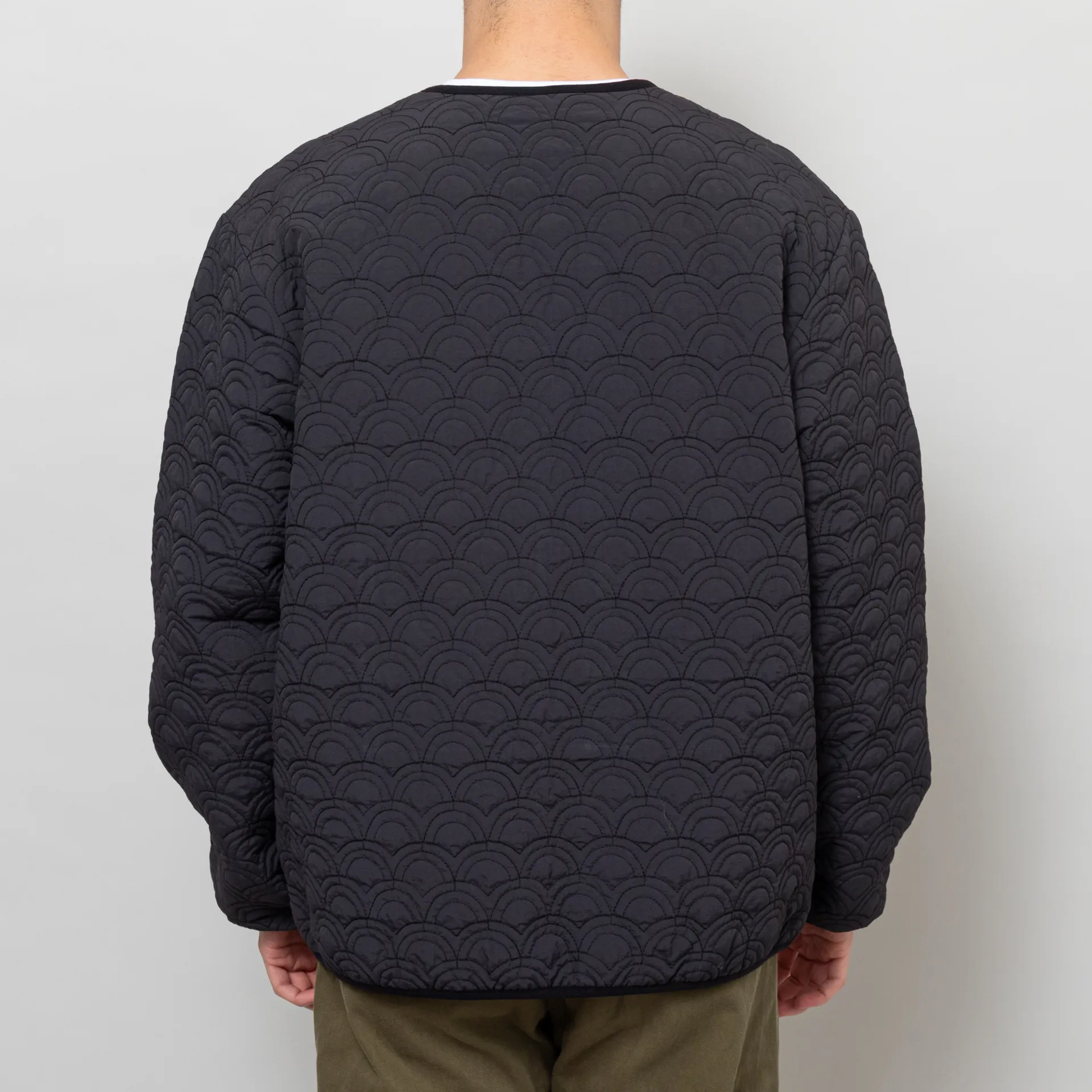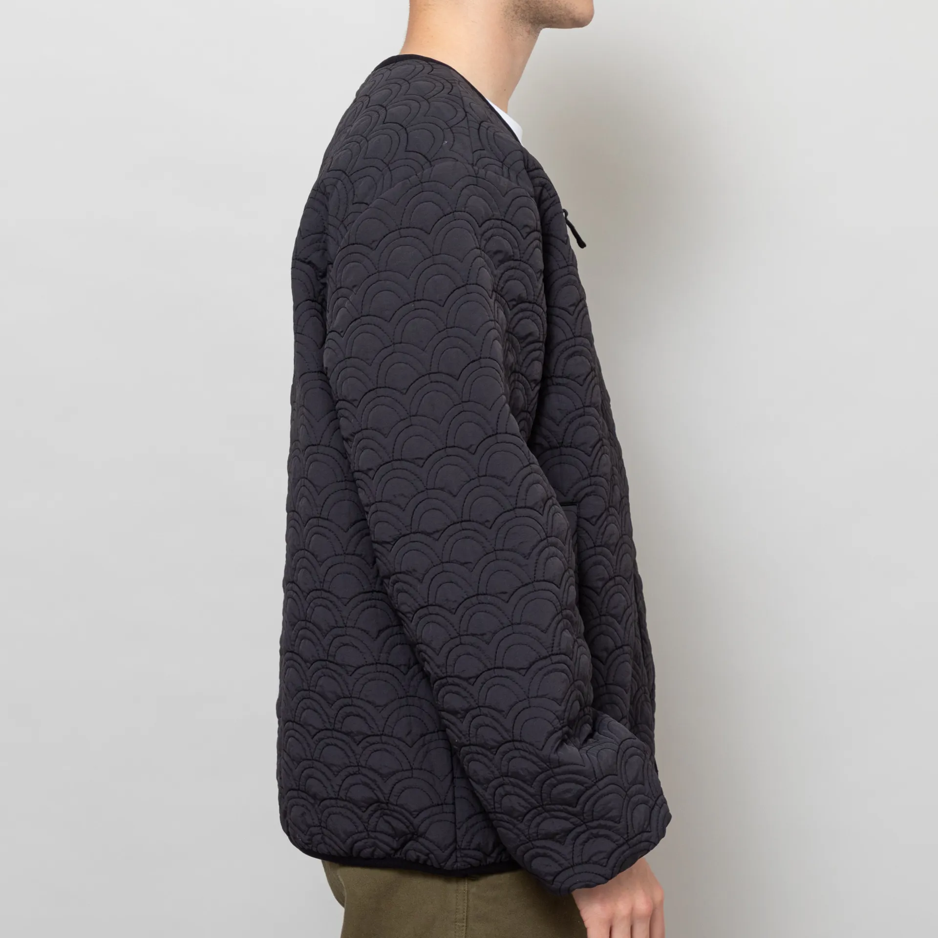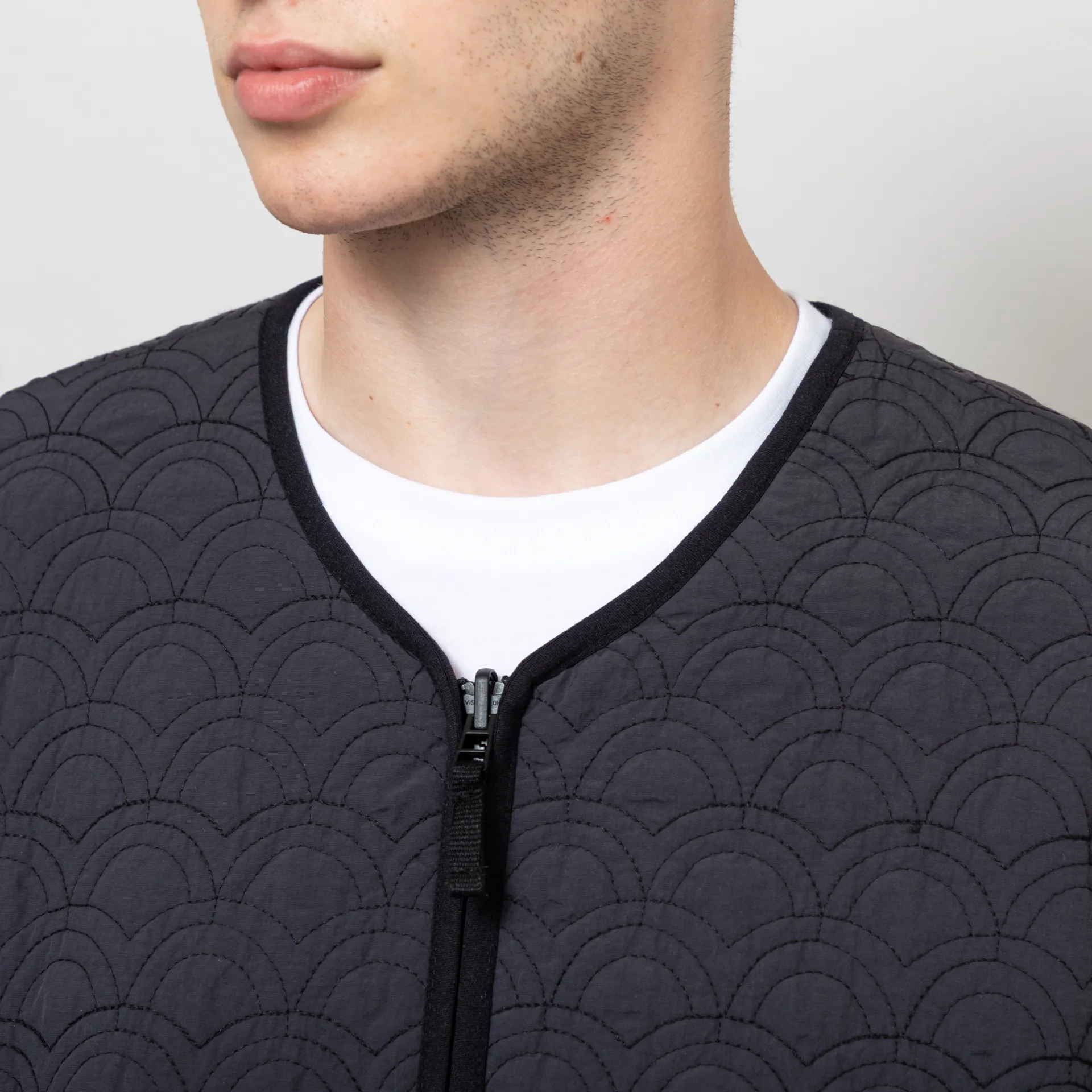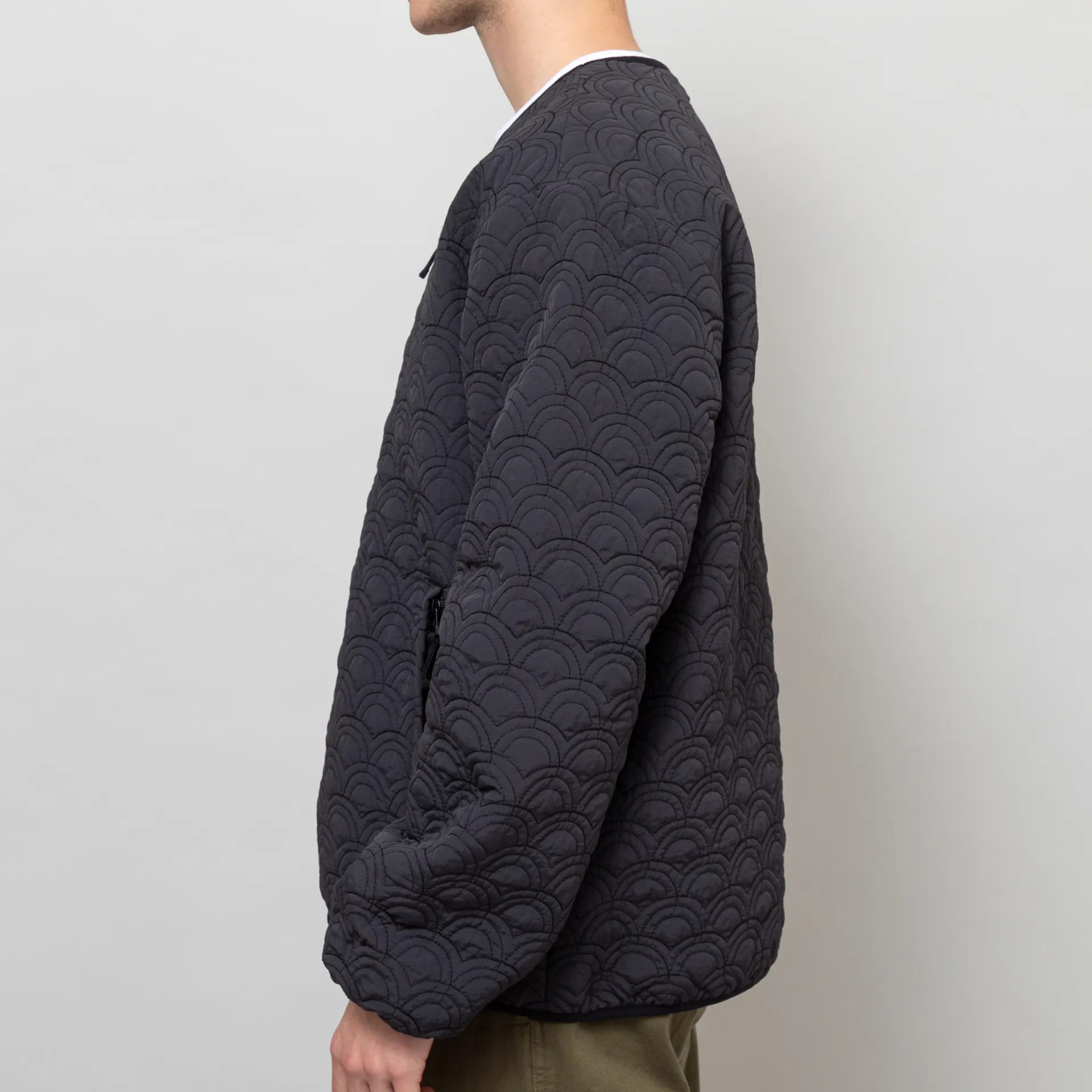 A reversible liner jacket from Deus, cut in a relaxed fit for a casual silhouette and made with an outer of 100% polyamide, decorated in a Segaiha pattern in topstitching. This jacket is filled with a lightweight polyester filling for added warmth. Both sides feature a zip-through front, leading to a collarless neckline, with two hand pockets and a Deus Customs logo patch.