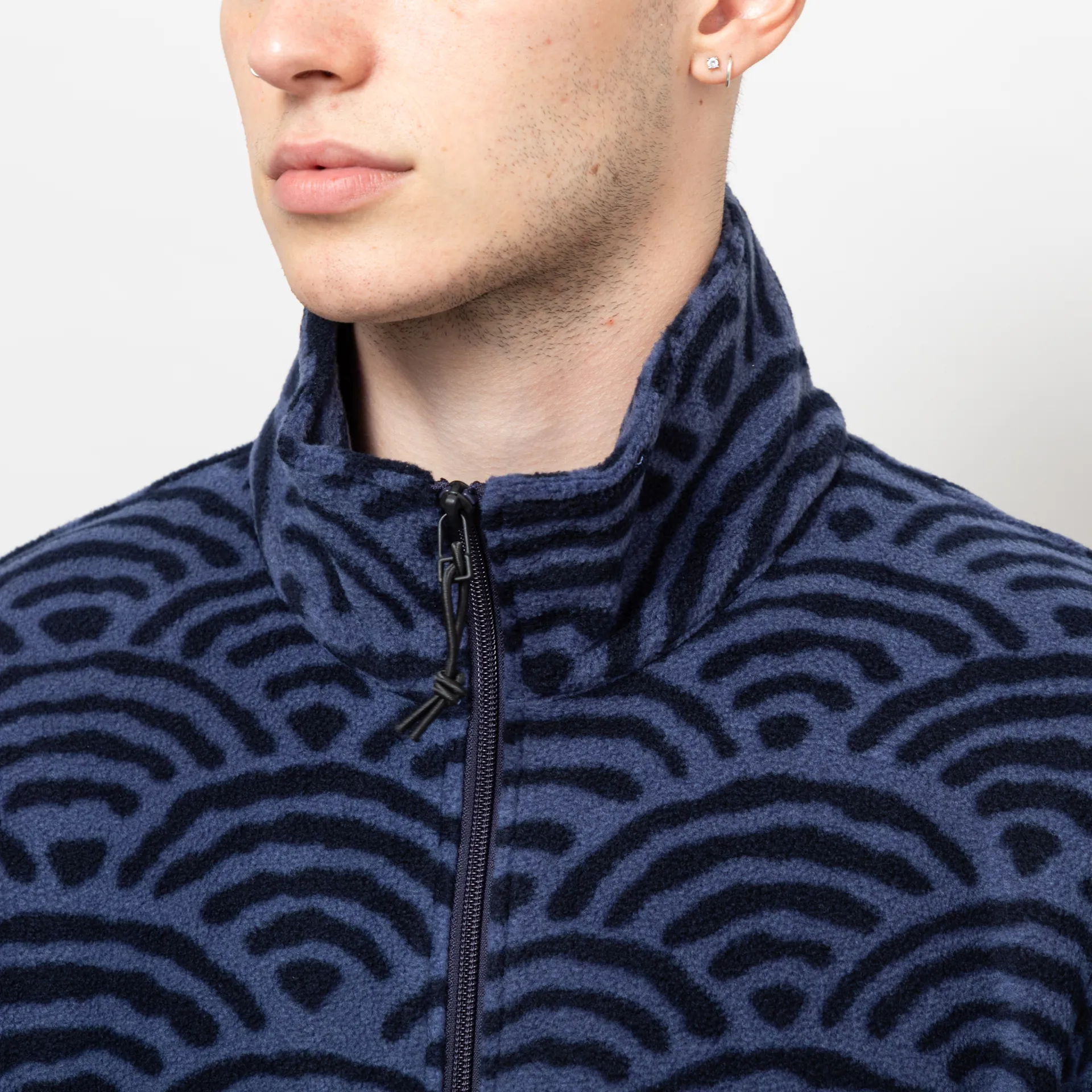 A fleece jacket from Deus, constructed from soft polyester fleece with an all-over pattern and tonal nylon trims. It features a zip-through front, leading to a classic stand collar, with elbow panelling, elasticated cuffs and drawcords at the hem to adjust. Finished off with two hand-warmer pockets, an internal drop in pockets and a Deus Customs logo patch.