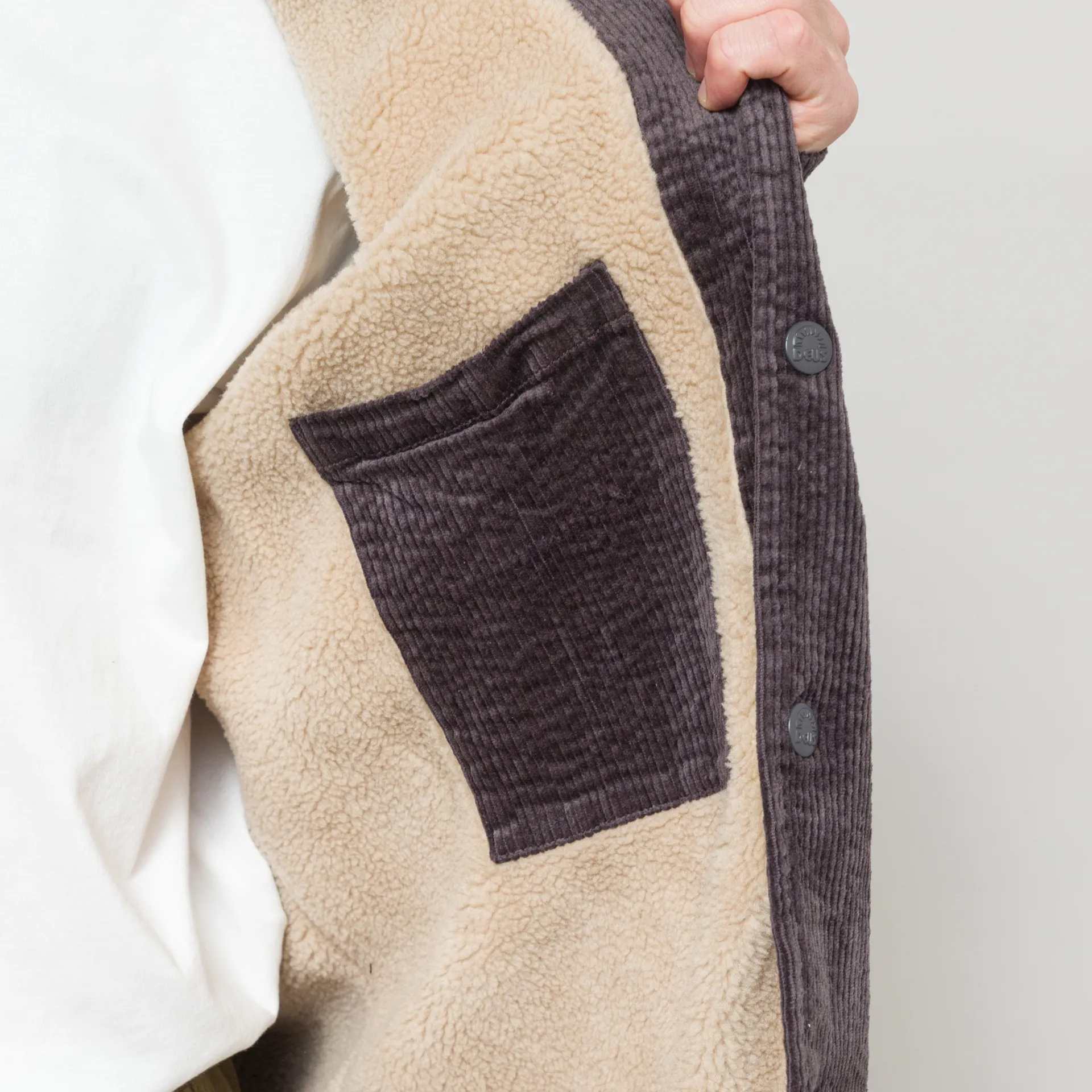 The Stokes Coach Jacket from Deus Ex Machina has been cut in a relaxed fit for a more casual look, constructed from a robust cotton-elastane blend, with a sherpa fleece lining for warmth and a heavy enzyme wash for a worn-in look. Featuring a snap button through front, leading up to a classic collar, with a drawstring hem, two welt pockets to the front and a single internal pocket. Finished off with an awesome embroidered patch to the chest and a larger version to the back.