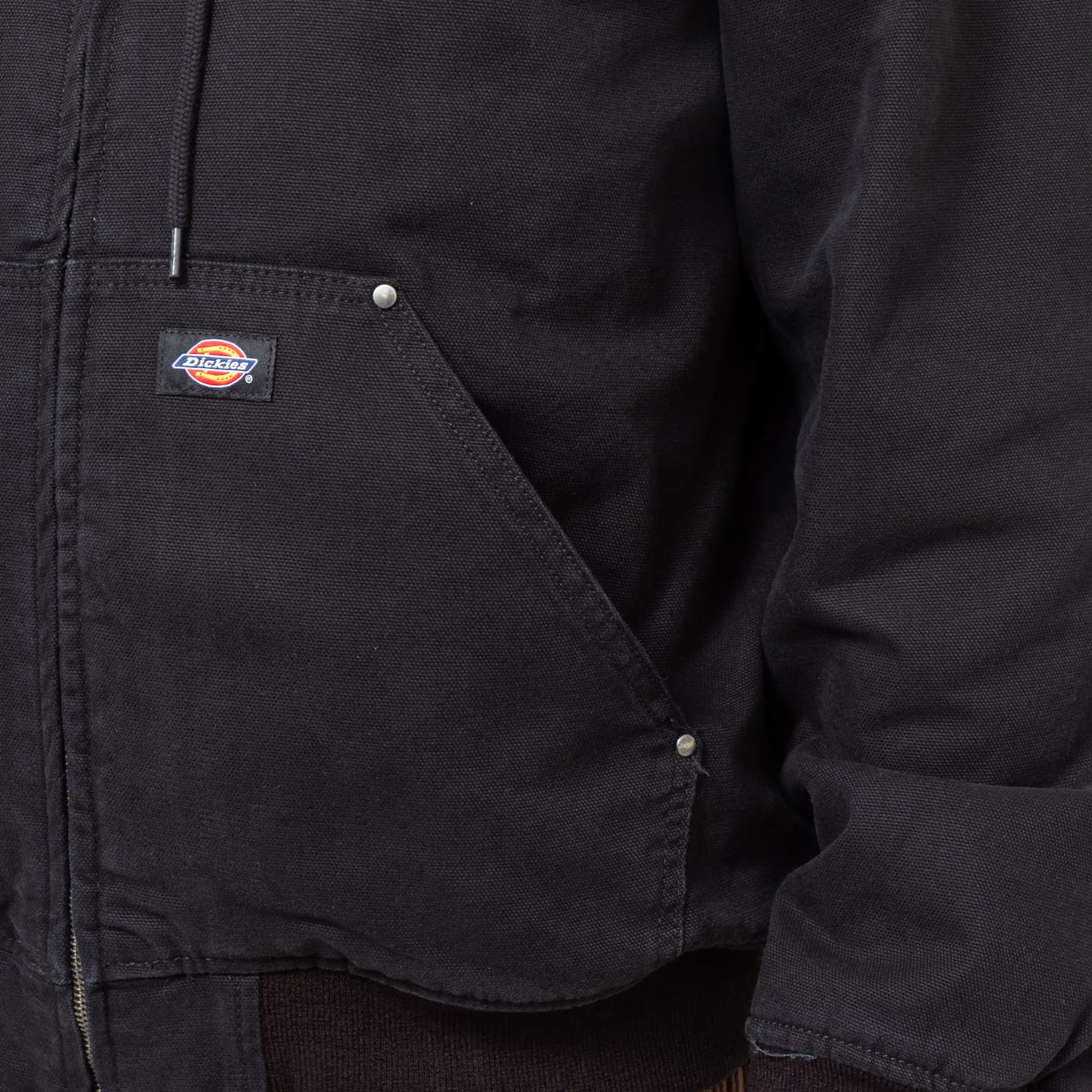 A workwear-inspired canvas hooded jacket from Dickies, which is made from 100% cotton canvas and features faux down padding for insulation.