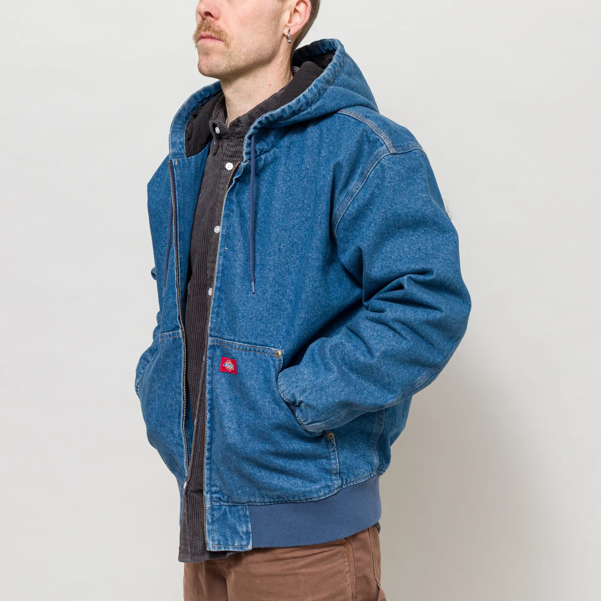 Dickies Lined Denim Hooded Bomber Jacket Classic Blue