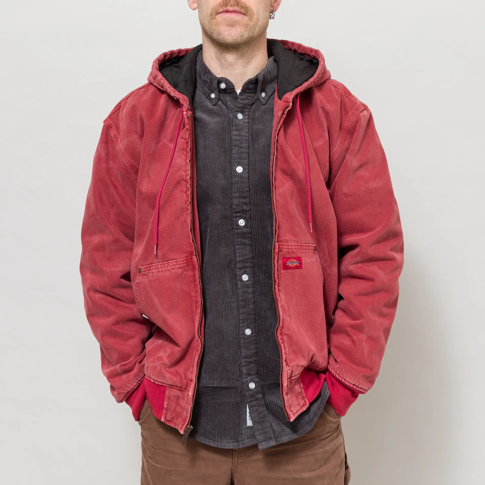 Dickies Lined Denim Hooded Bomber Jacket Garnet