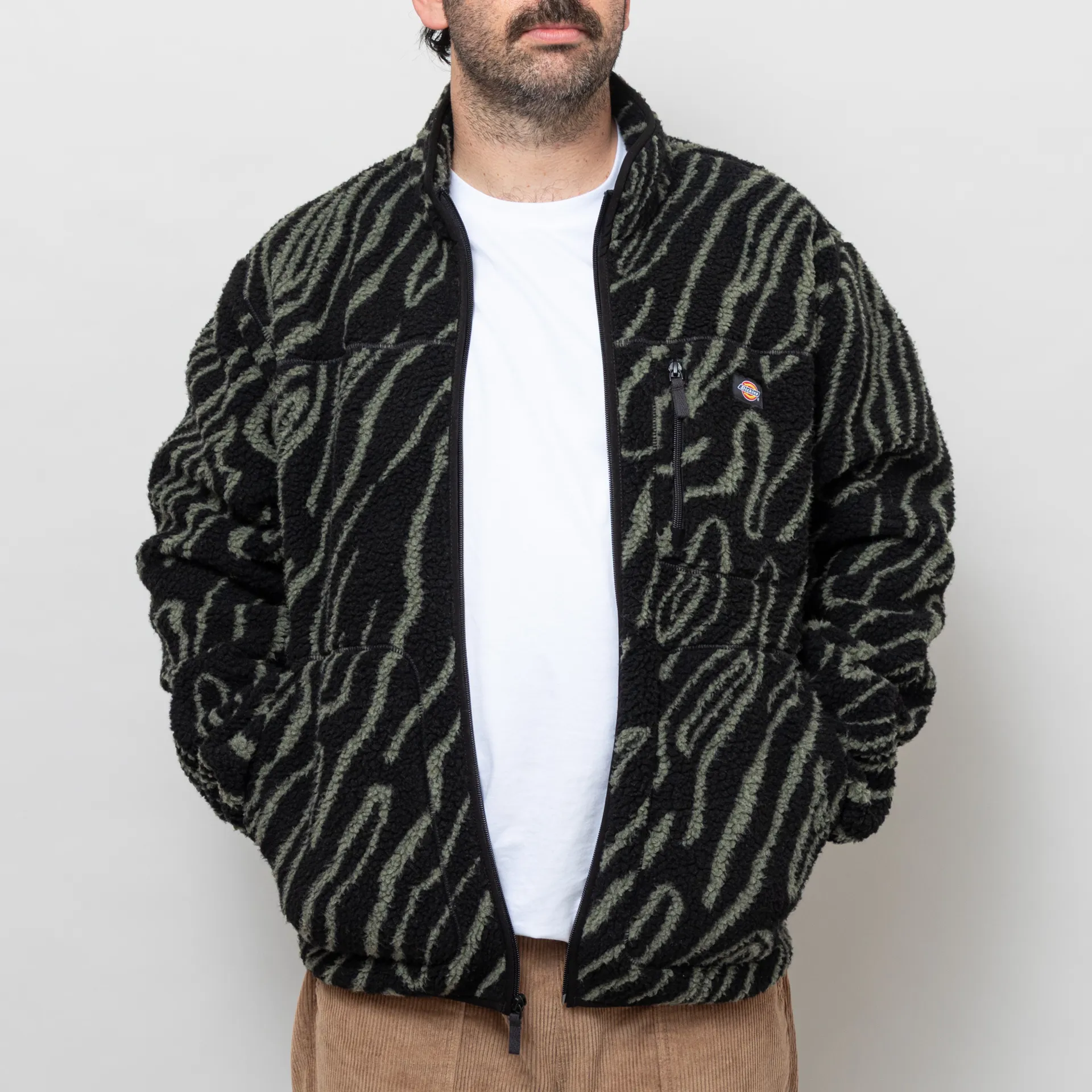 The Mount Hope printed fleece from Dickies is made from 100% polyester and features an elasticated hem and cuffs.