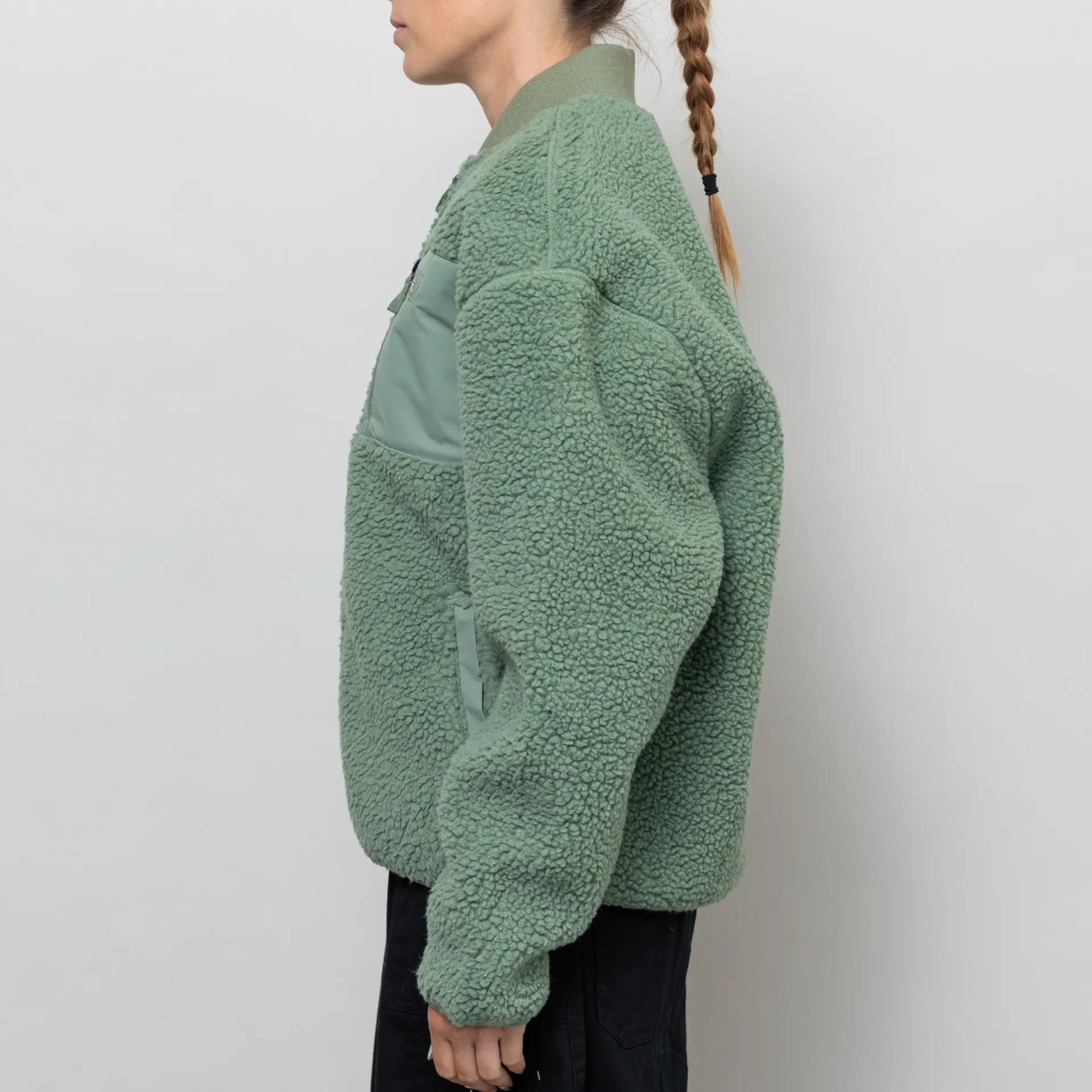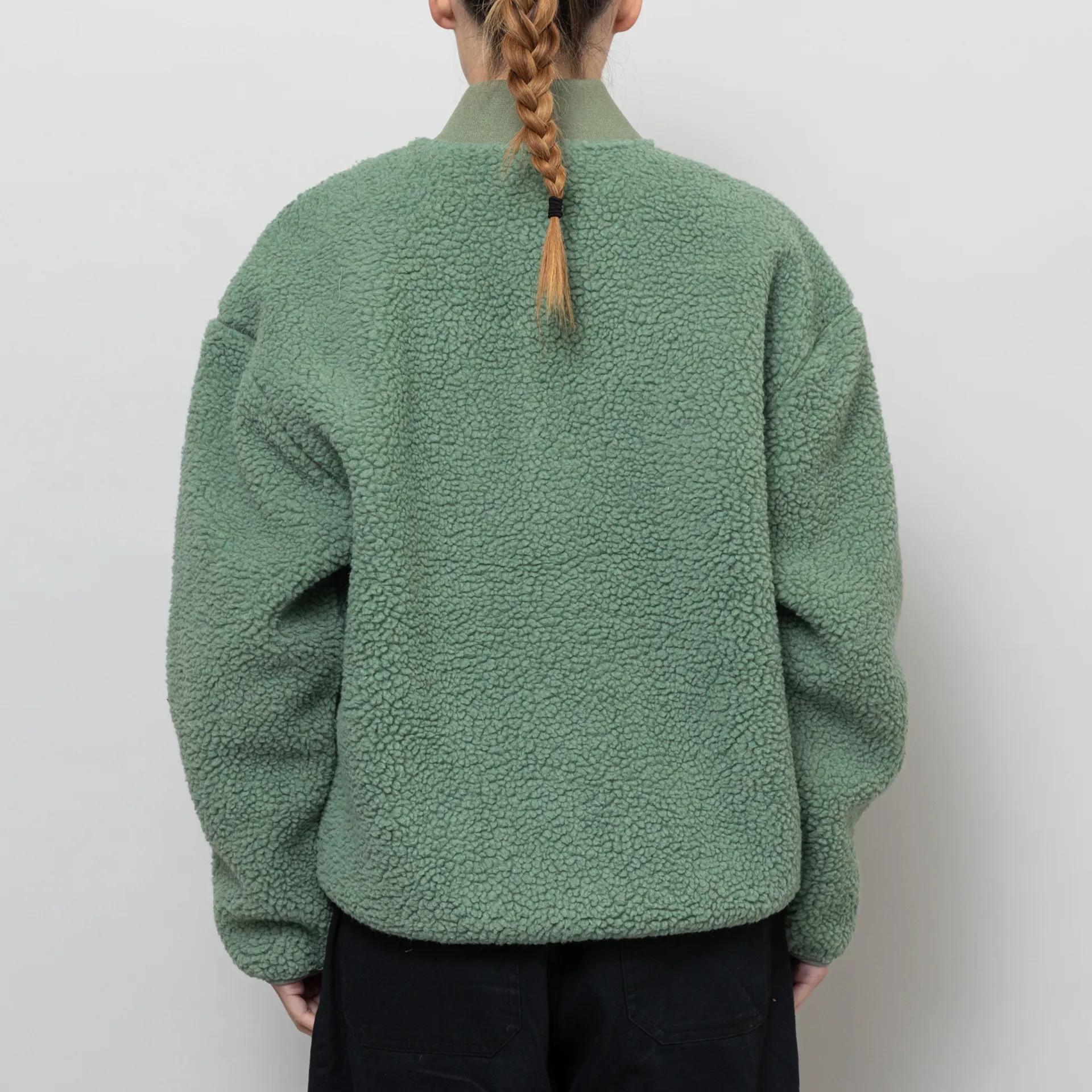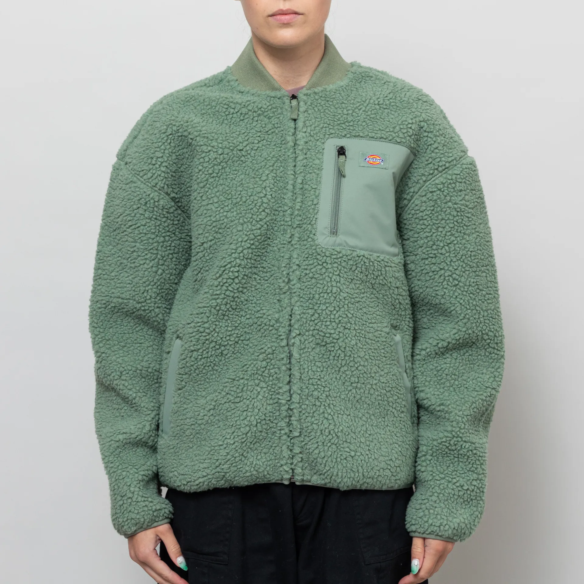 A fleece jacket from Dickies womenswear collection, constructed from soft and warm high-pile polyster, with a supersoft brushed fleece lining through the body and sleeves. Cut in a boxy fit for a laidback look, it has a zip-through front, a classic ribbed collar, tonal binding at the cuffs and hem. Finished off with a single nylon chest pocket, angled hand pockets and the signature woven Dickies logo.
