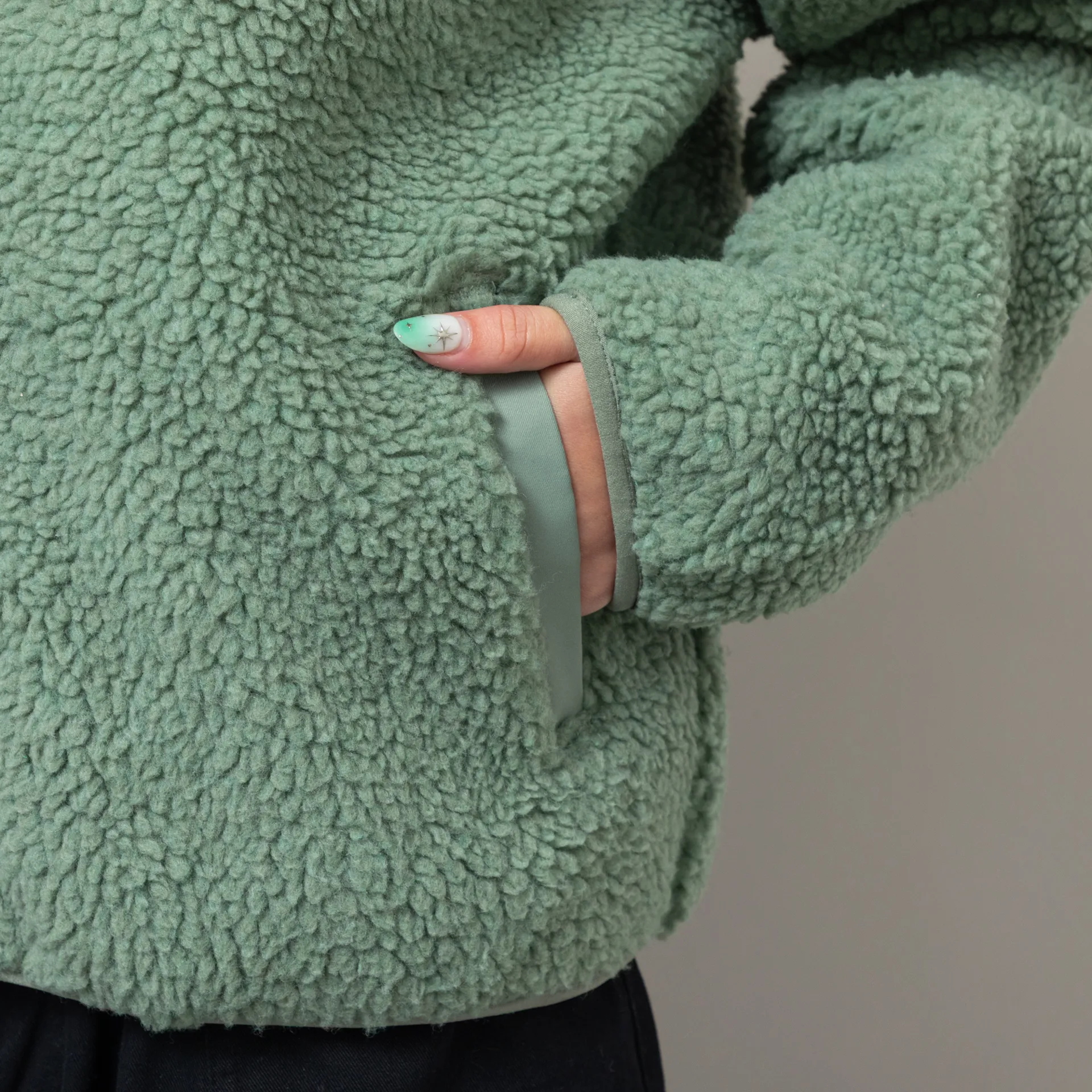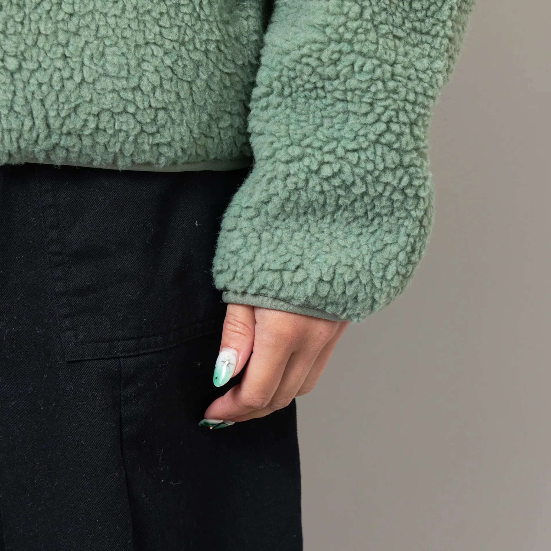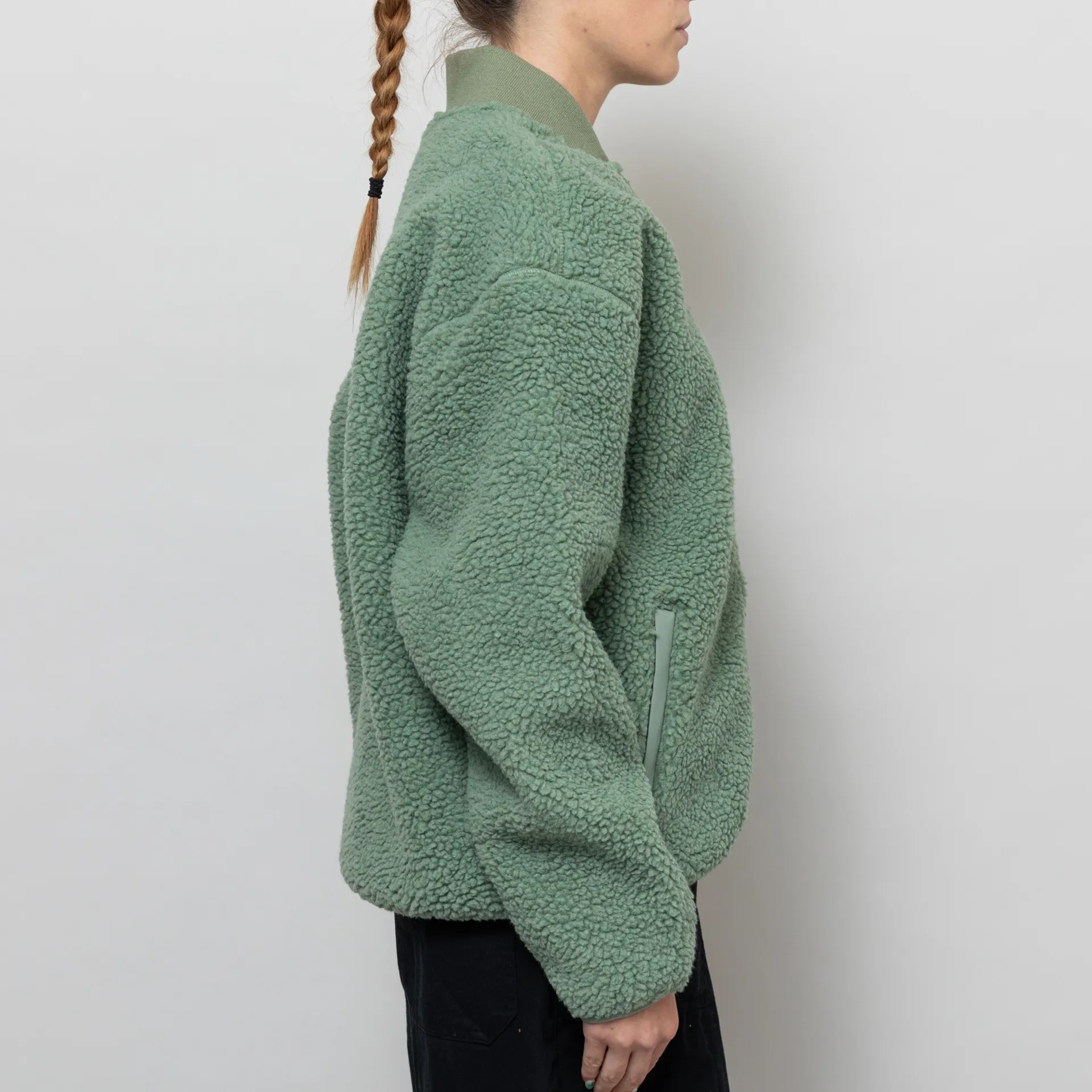 A fleece jacket from Dickies womenswear collection, constructed from soft and warm high-pile polyster, with a supersoft brushed fleece lining through the body and sleeves. Cut in a boxy fit for a laidback look, it has a zip-through front, a classic ribbed collar, tonal binding at the cuffs and hem. Finished off with a single nylon chest pocket, angled hand pockets and the signature woven Dickies logo.