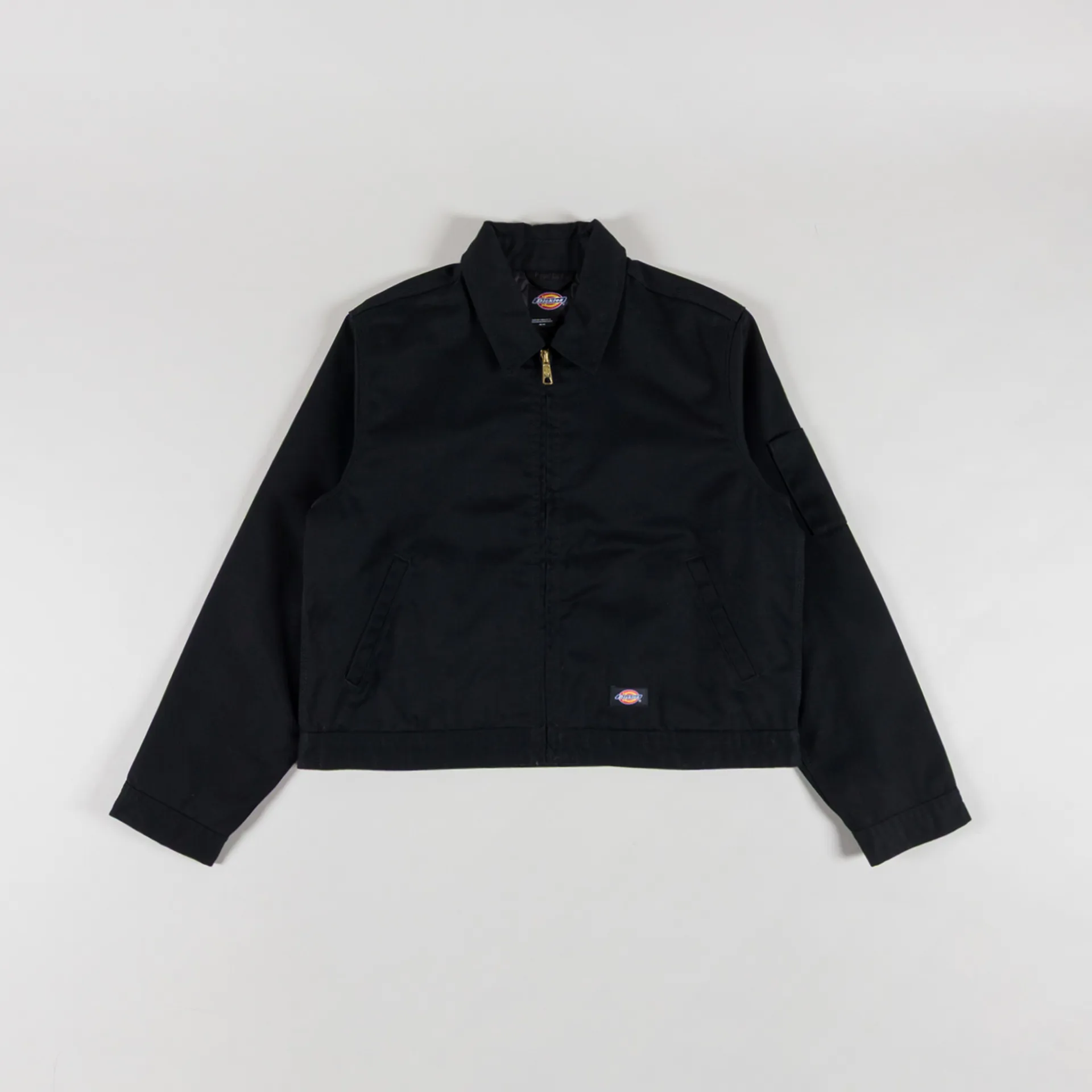A classic from Dickies womenswear collection, constructed from authentic 66 cloth with a water-repellent coating for protection against light rainfall. It's cut in a cropped fit for a casual silhouette and features a zip-through front, leading to a classic collar, with a quilted taffeta lining for added warmth and comfort. It has buttons at the back of the hem and cuffs to adjust the fit, with two standard hand pockets and a single internal, drop-in pocket. Finished with the signature Dickies woven logo to the front.