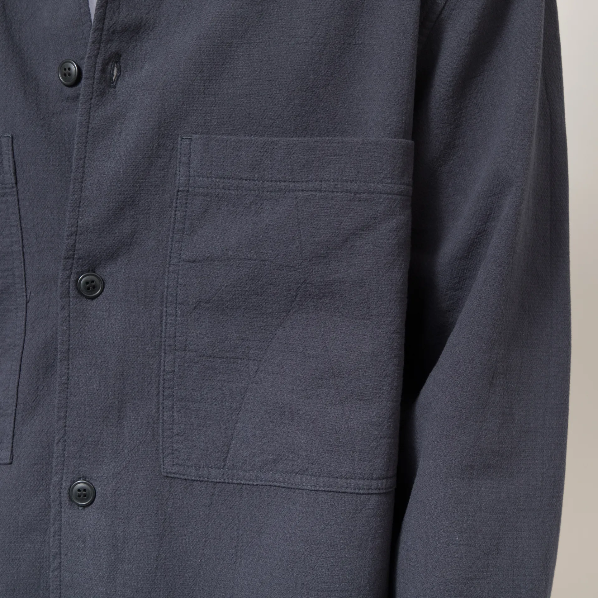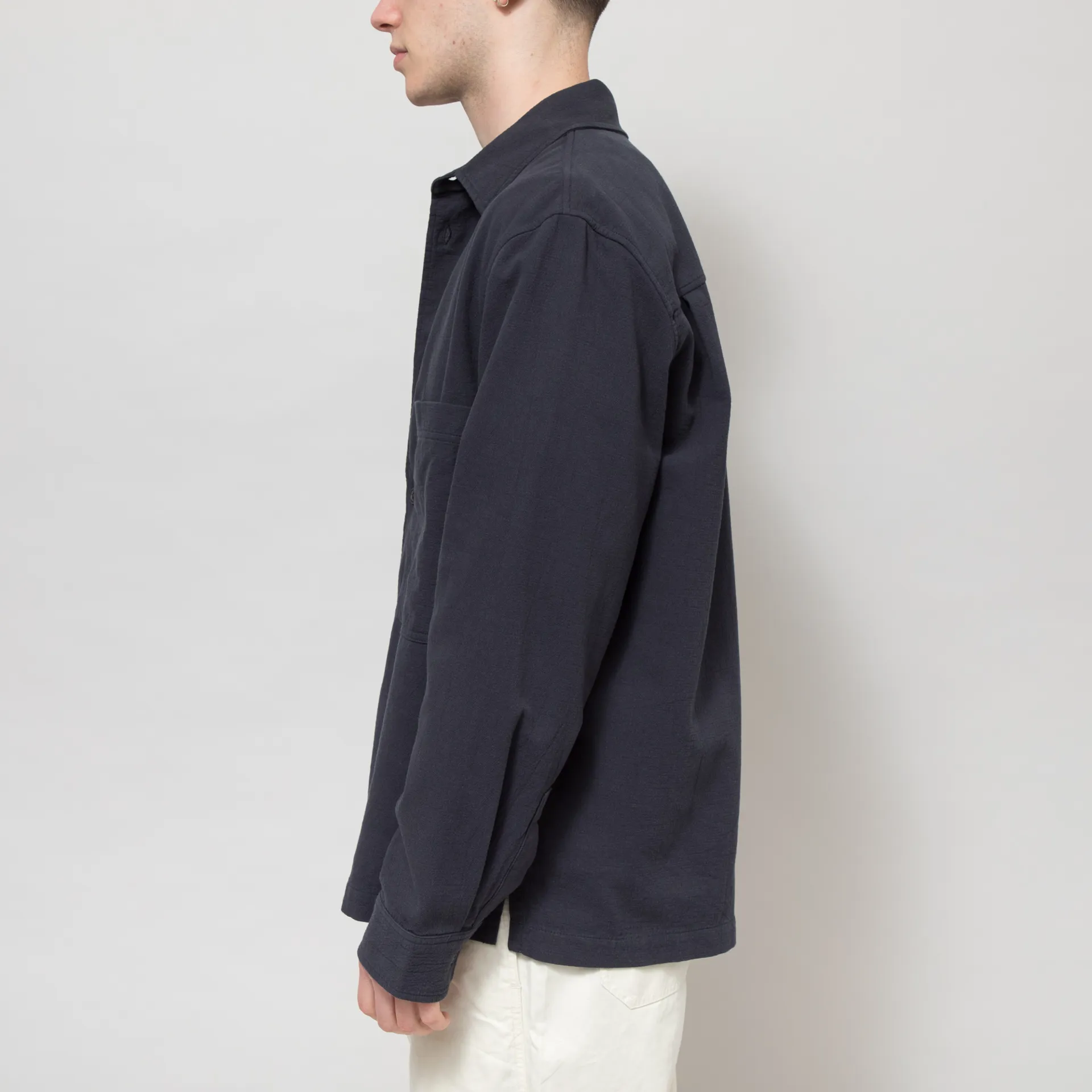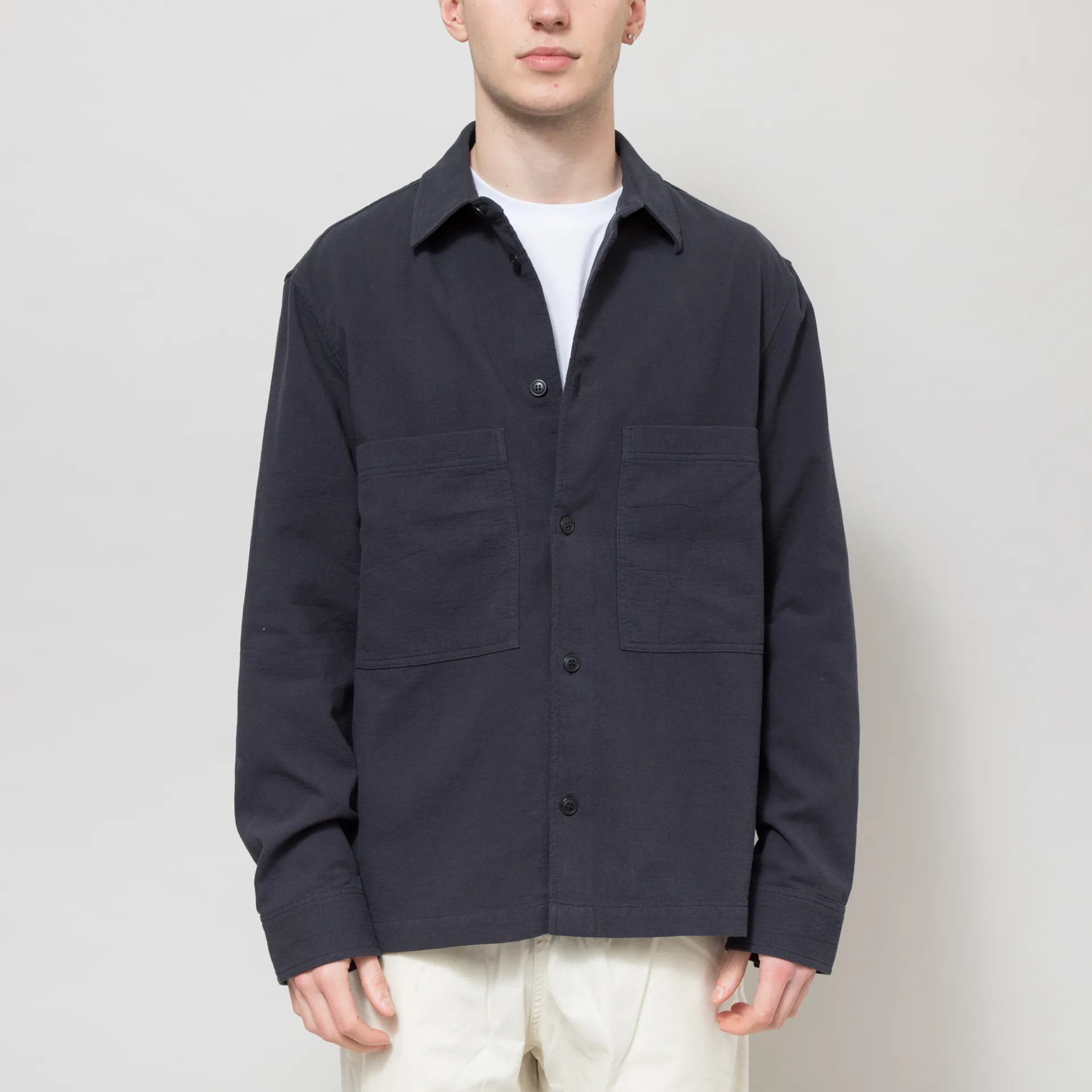 An overshirt from Double A, cut in a loose fit for a laidback look and constructed from matte textured cotton. It features a button-through front, leading up to a classic collar, with a straight hem, buttoned cuffs and two oversized patch pockets. The design is complete with a small Double A flag label.