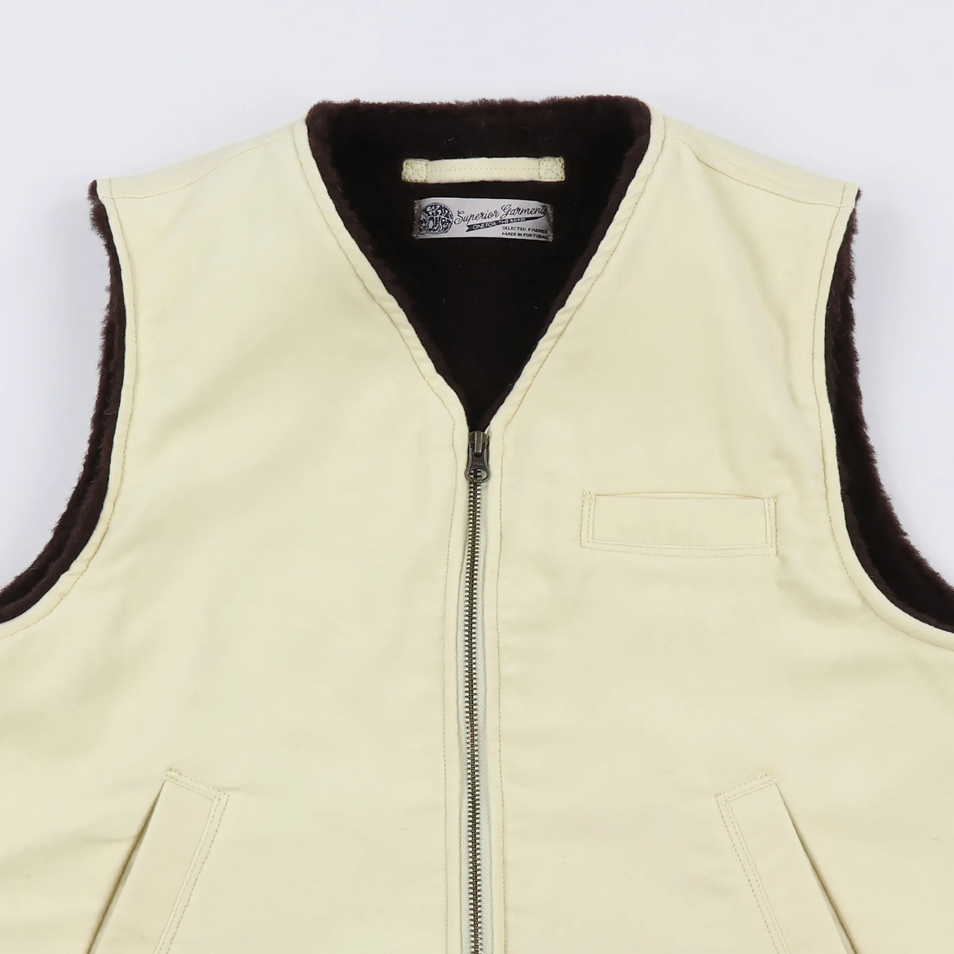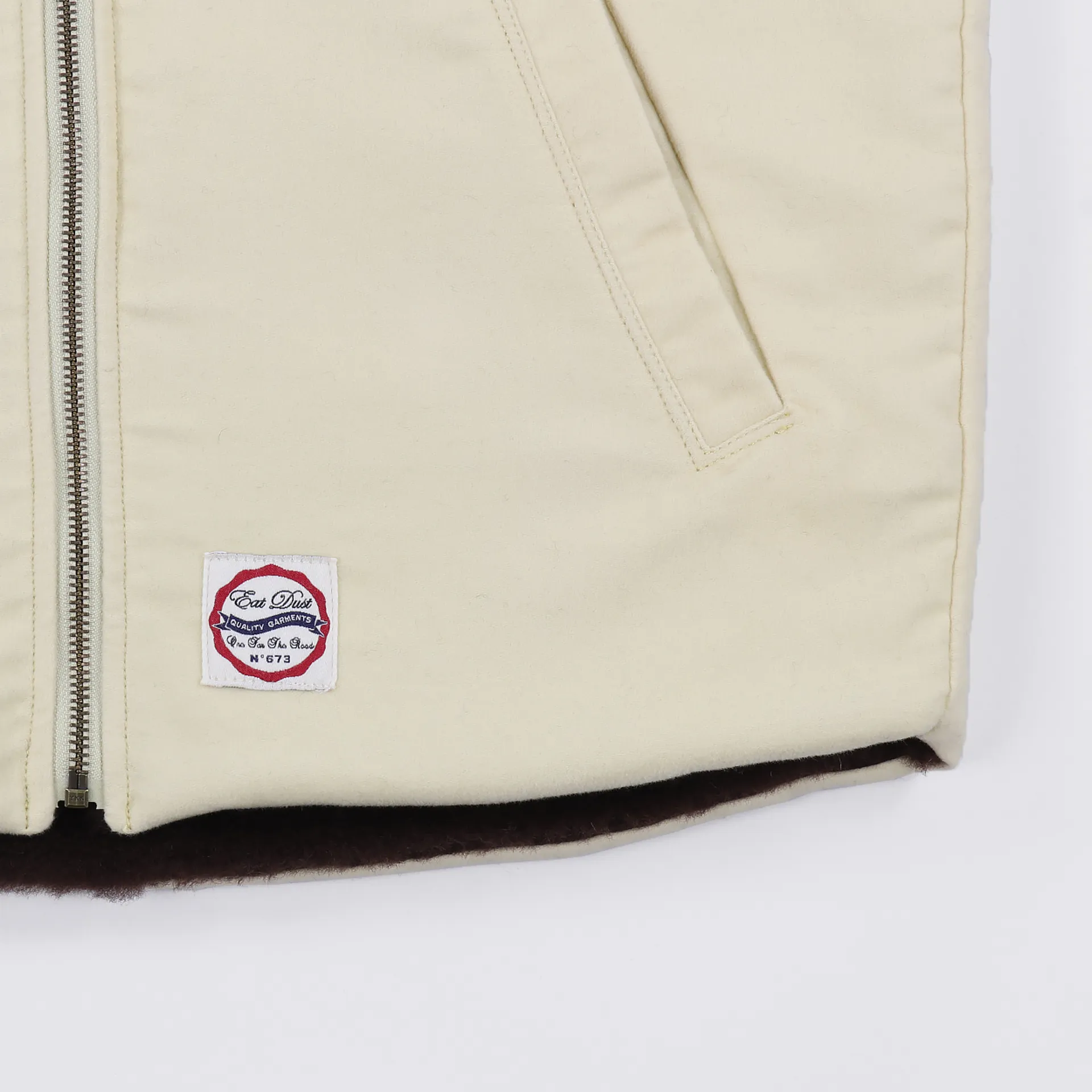 The Deck Vest from Eat Dust is made from 100% cotton moleskin and features a singular chest pocket, along with two further hand pockets to the side.