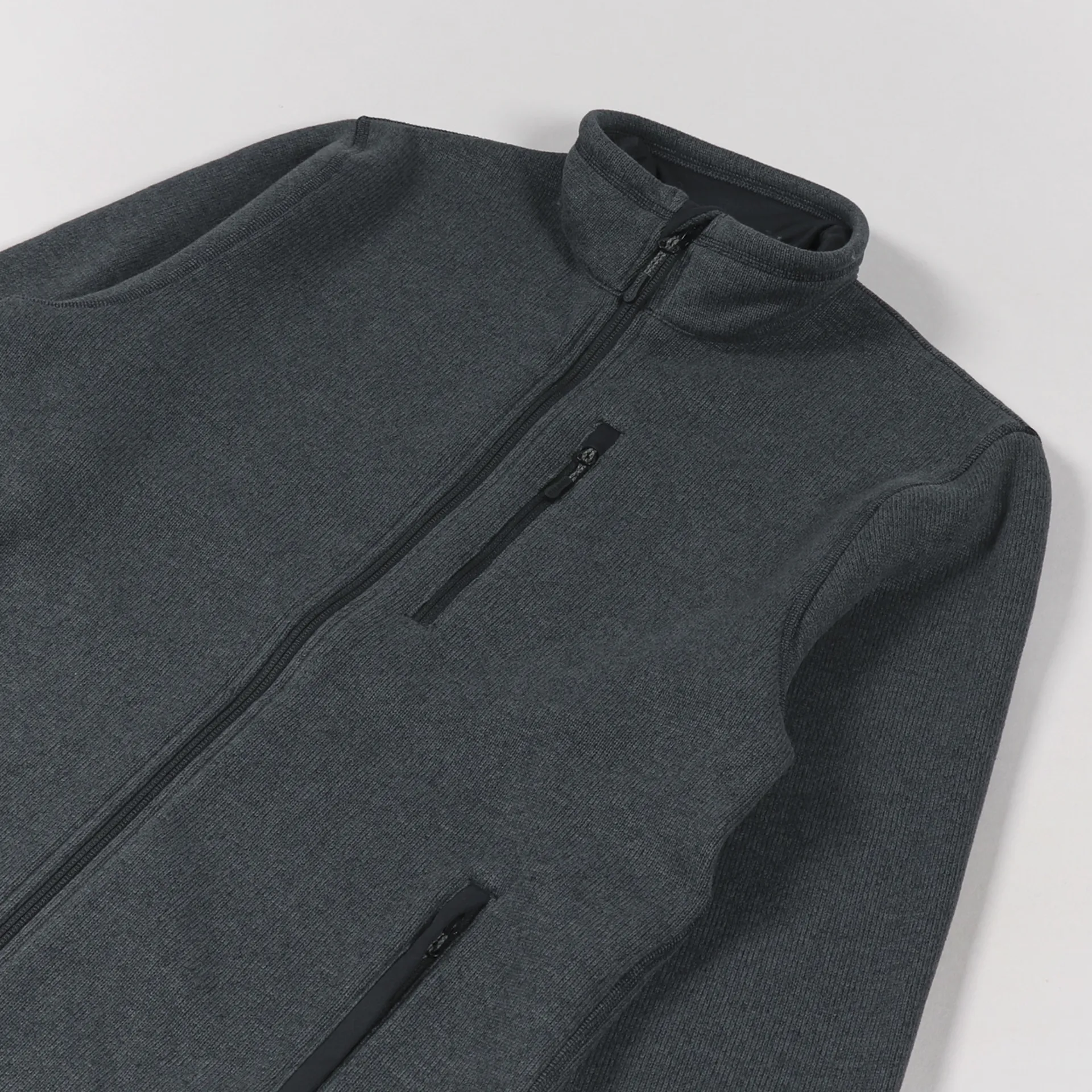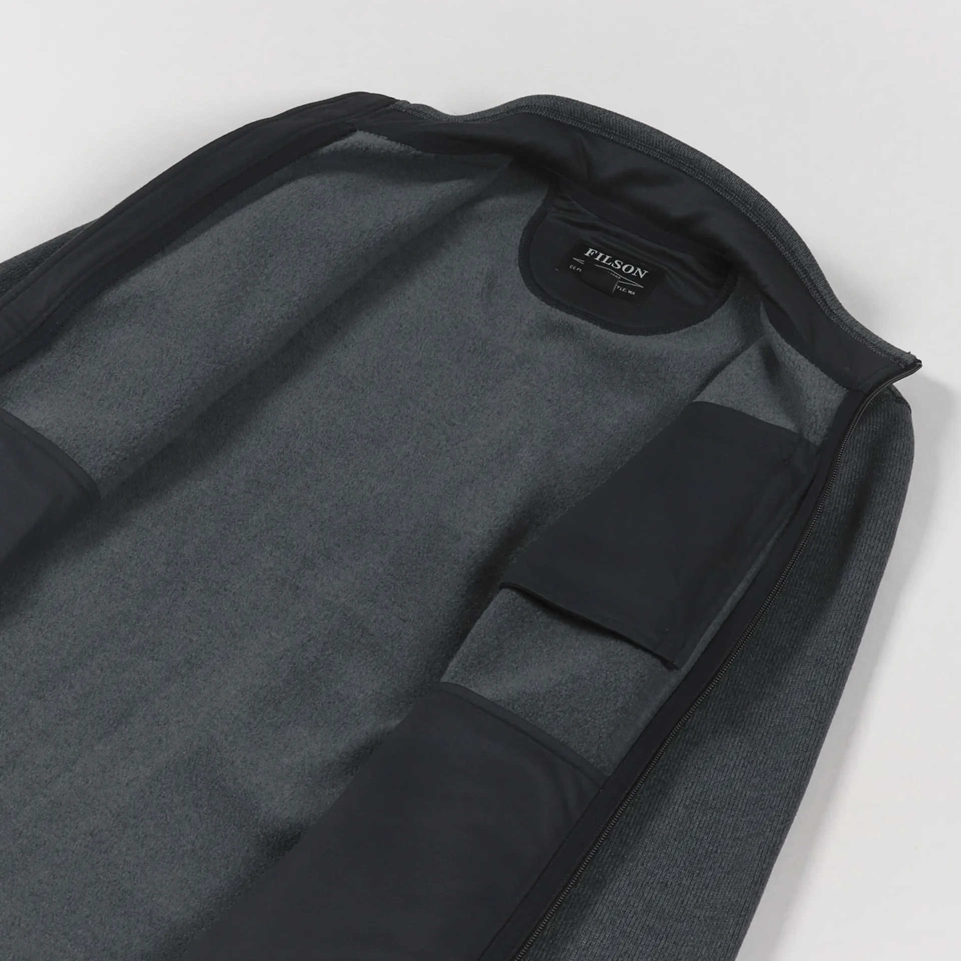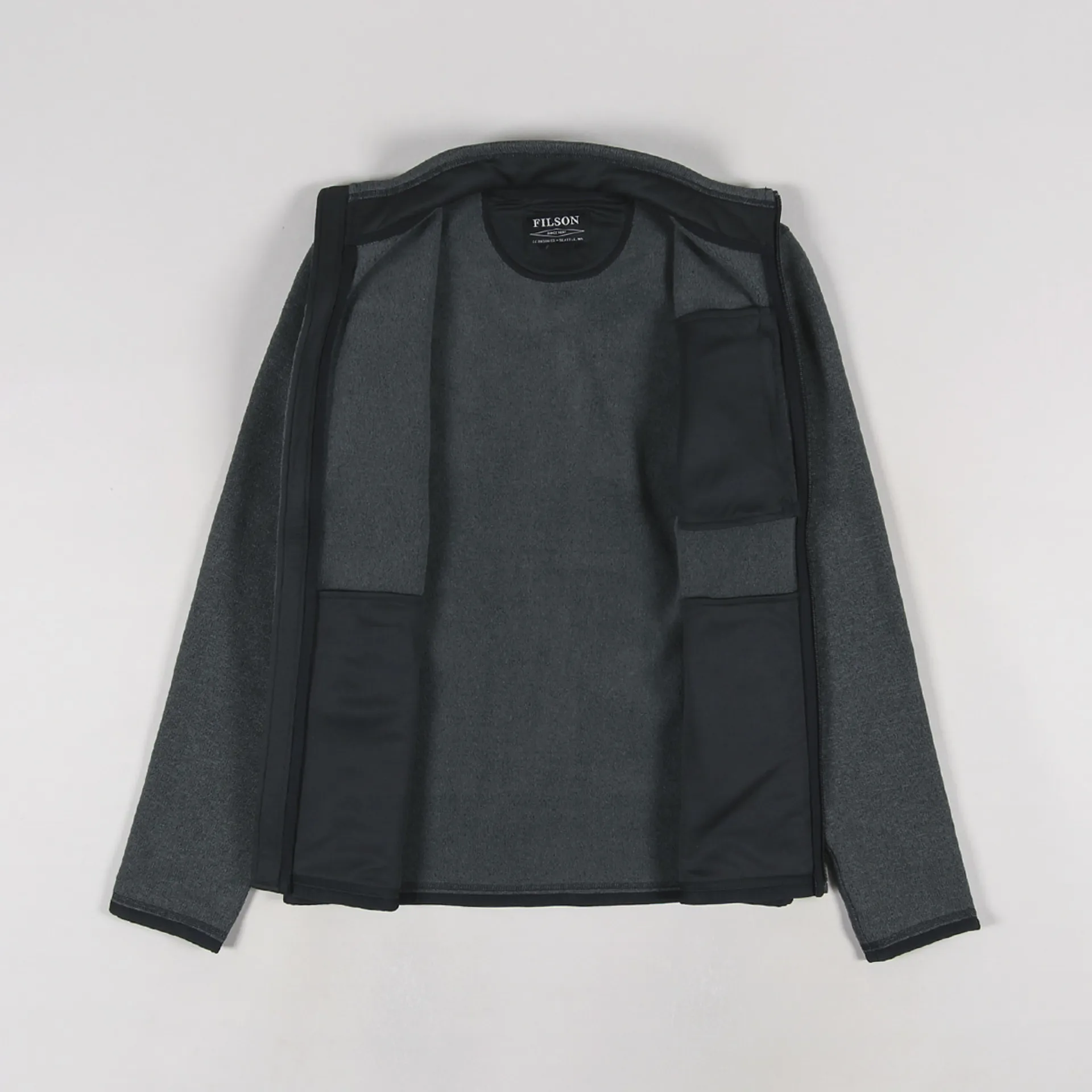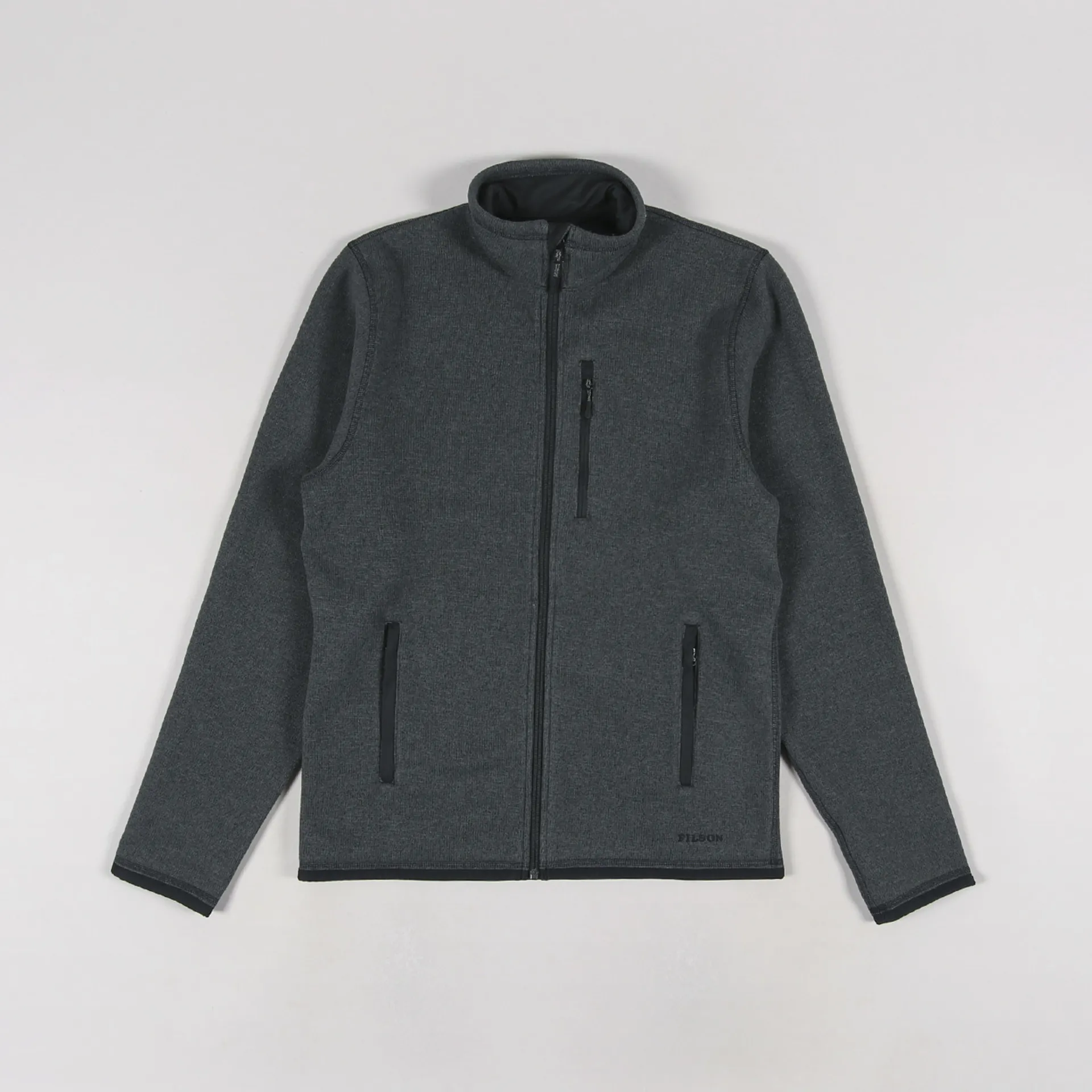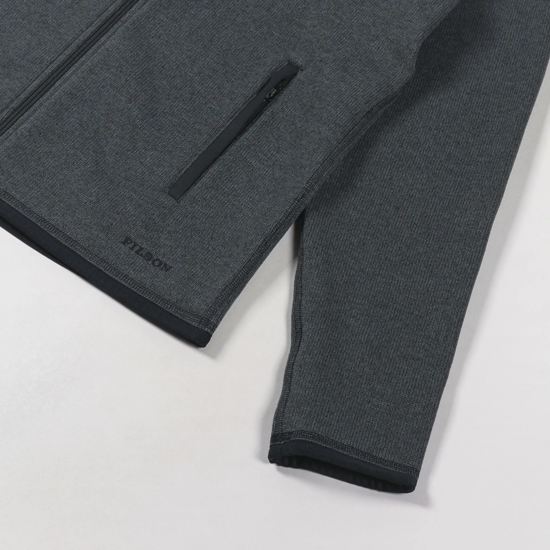 A fleece from American outdoor company Filson, made from a super warm Polartec Thermal Pro rib-knit polyester with an elasticated trim to the hem and cuffs, a full-zip front and three zippered pockets.