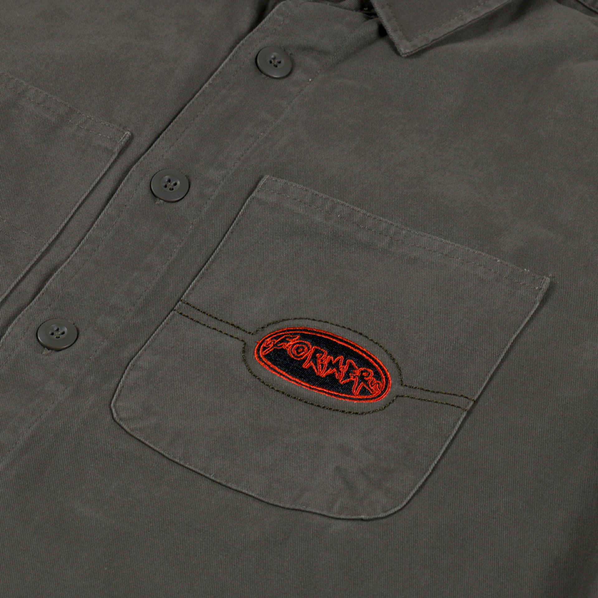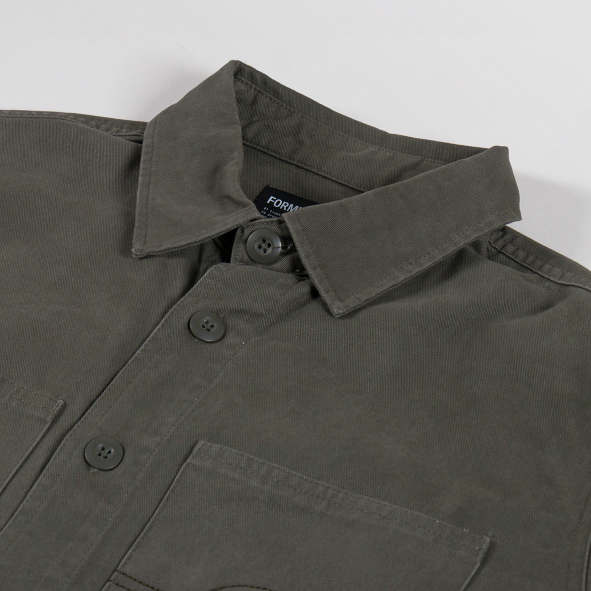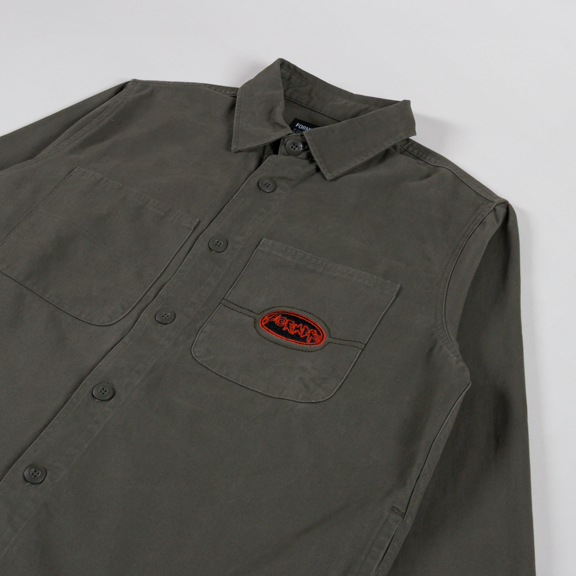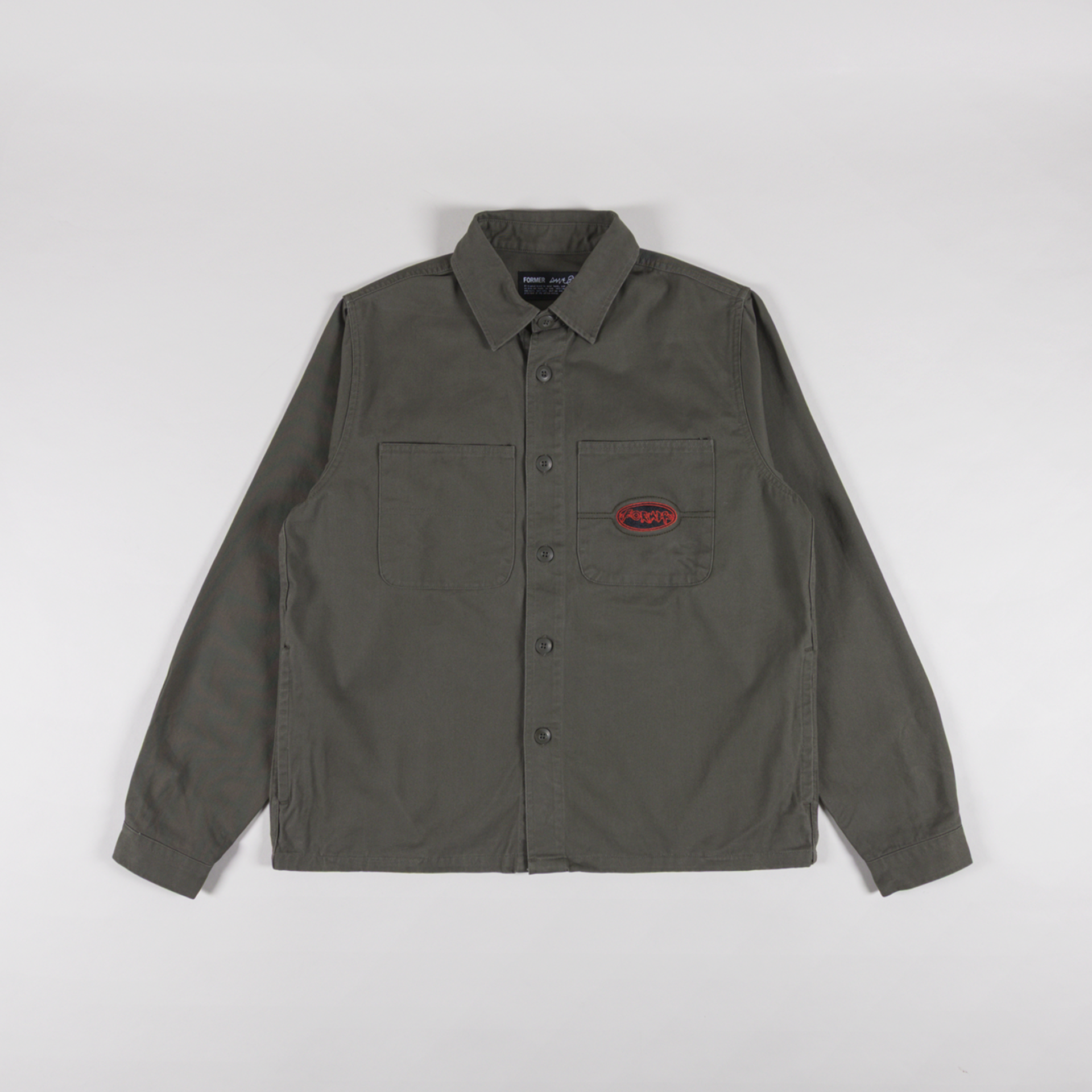 An overshirt from FORMER, cut in a relaxed fit for a casual silhouette and constructed from durable cotton twill, pre-washed to prevent shrinkage.