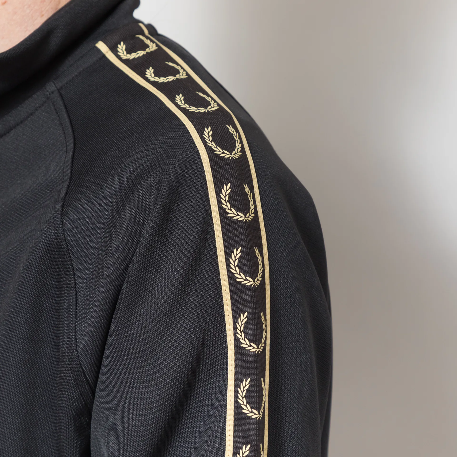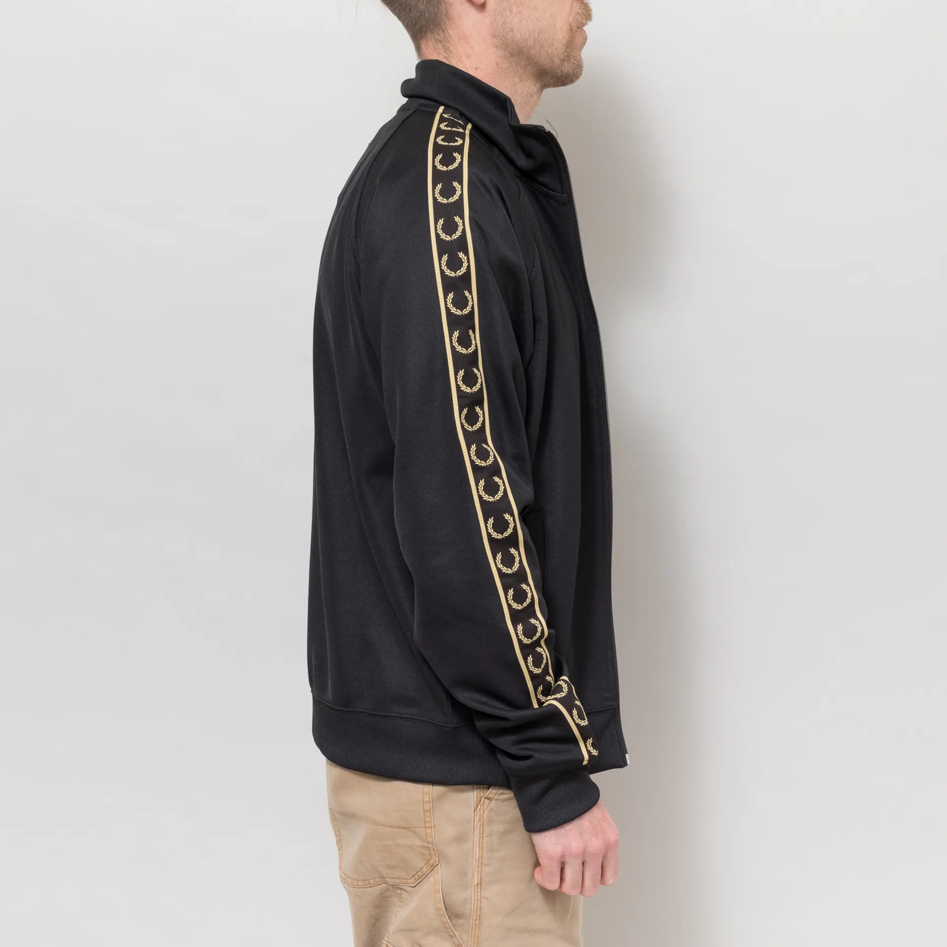Fred Perry Contrast Tape Track Jacket Black Champagne