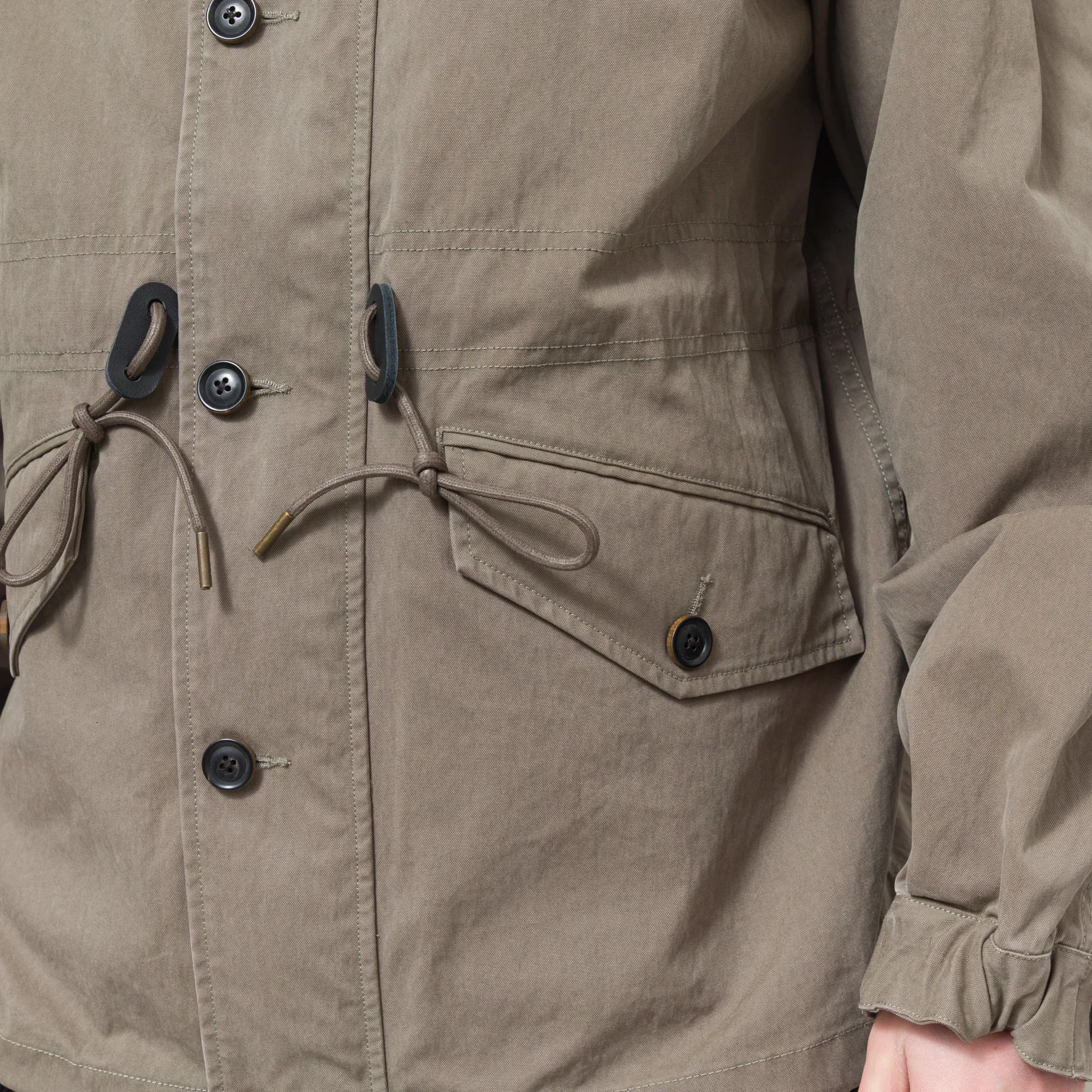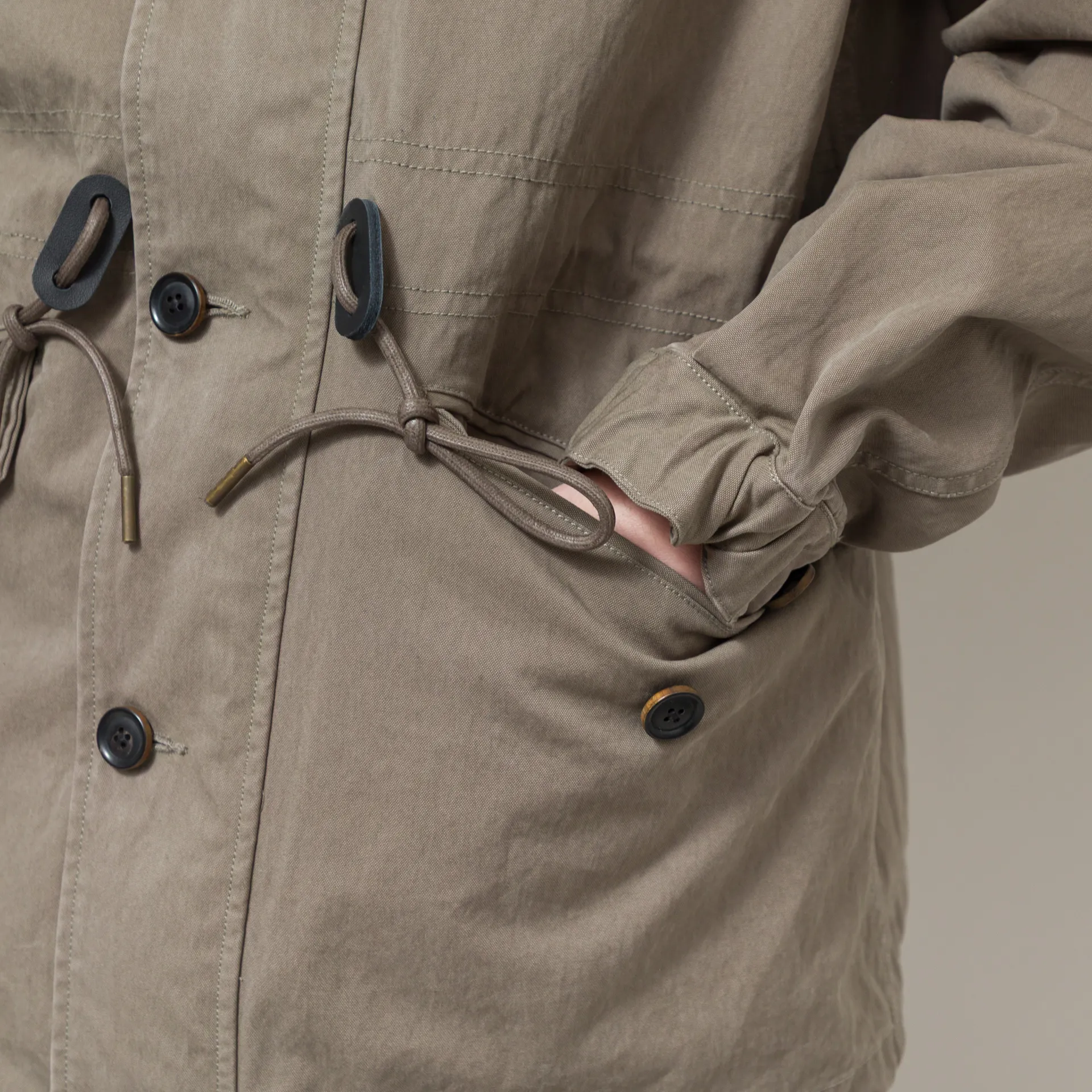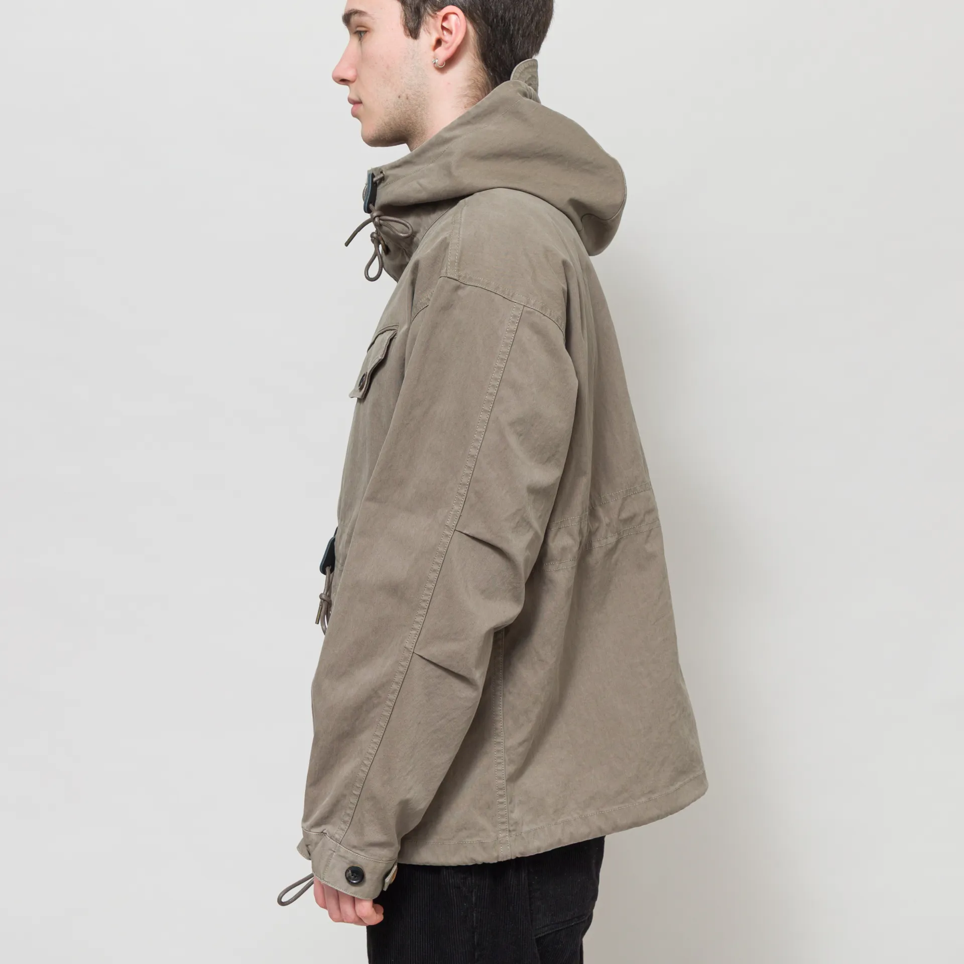 A parka jacket fromFrizmworks, modelled on the classic M47 field jackets worn by the French army in the 1940s.It'sconstructed from a durable, midweight blend of cotton and nylon, then cut in a slightly relaxed fit for everyday wear. It has a zip-through front, covered by the buttoned placket and leading up to a large four-piece hood with dual toggles to adjust.You'llalso find dual toggles at the waist and hem, with buttons at the cuffs, making this piece super adaptable when it comes to your personal style. The design is complete with a six-pocket design, made up of four flap pockets across the front of the jacket and two internal slip pockets.