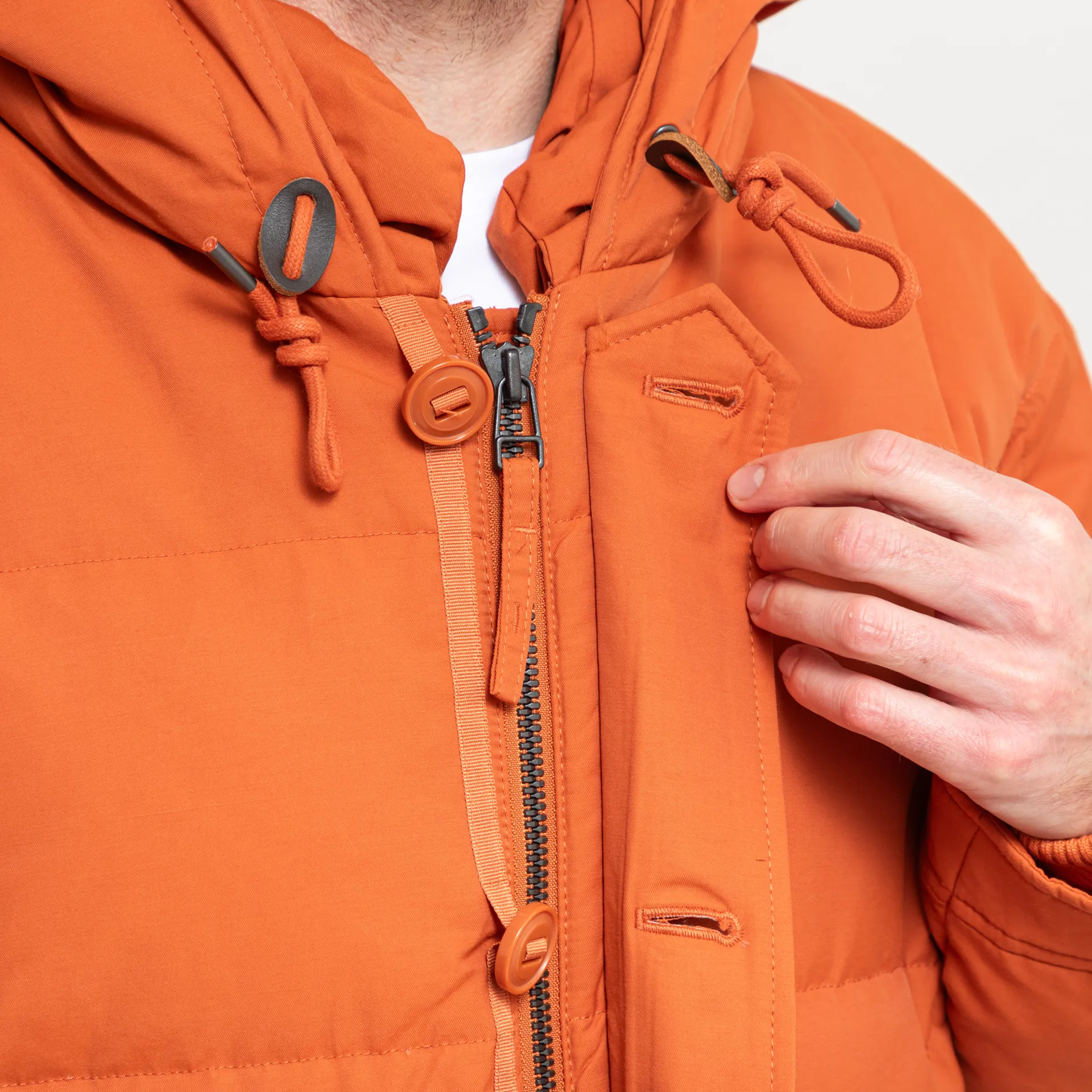 Karakoram is filled with around 400g of goose down and it has a square quilting method, giving it a soft feel and a helping hand in maintaining your body heat when the temperature drops. The quality of the main zipper has been improved by using YKK 2Way Slider Zipper made from a heavy metal. Wax coated strings are put on the hood, waist and hem with a whole leather adjuster to make it easily adjustable. This striking piece has been finished off with a five button-up front, two large buttoned pockets to the front and two smaller buttoned pockets to the back.