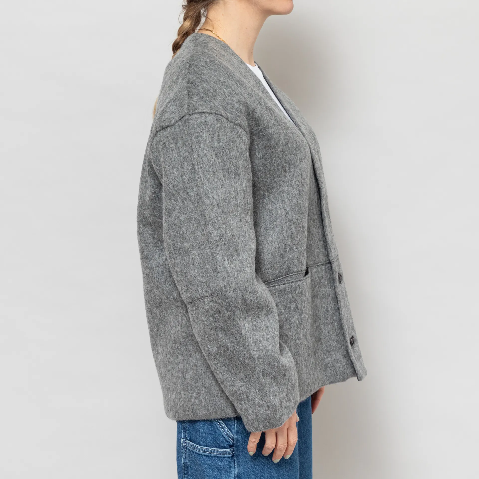 Girls of Dust Womens Basic Cardigan Mohair Fleece Asphalt