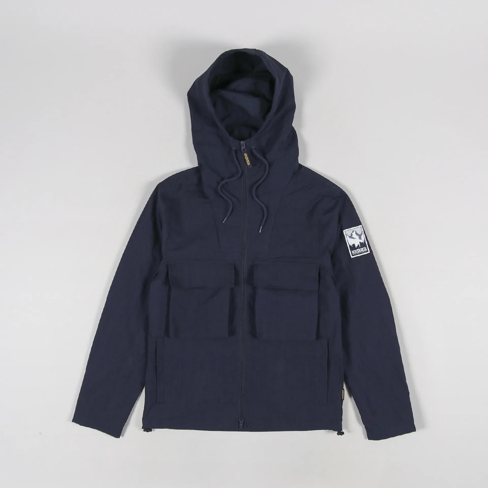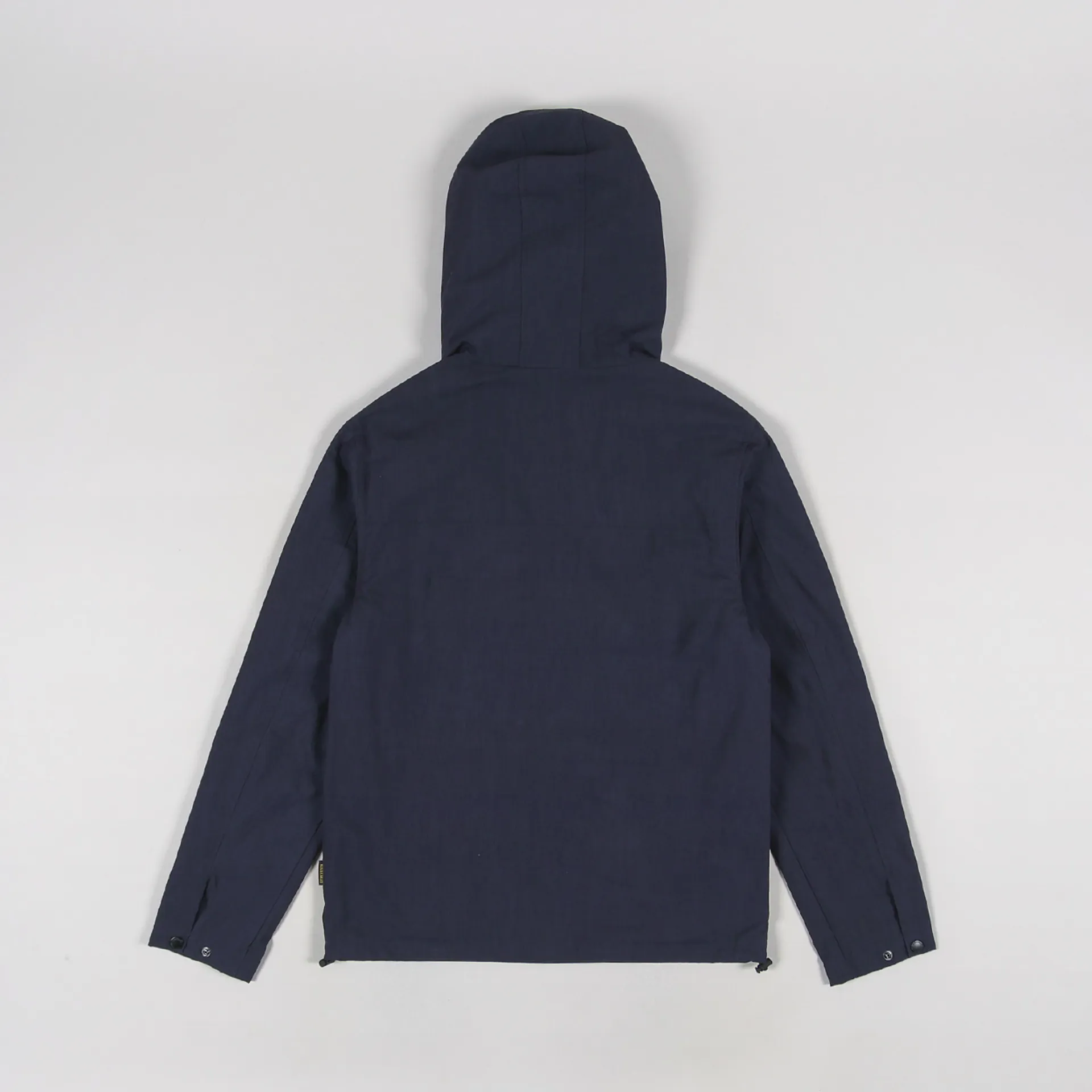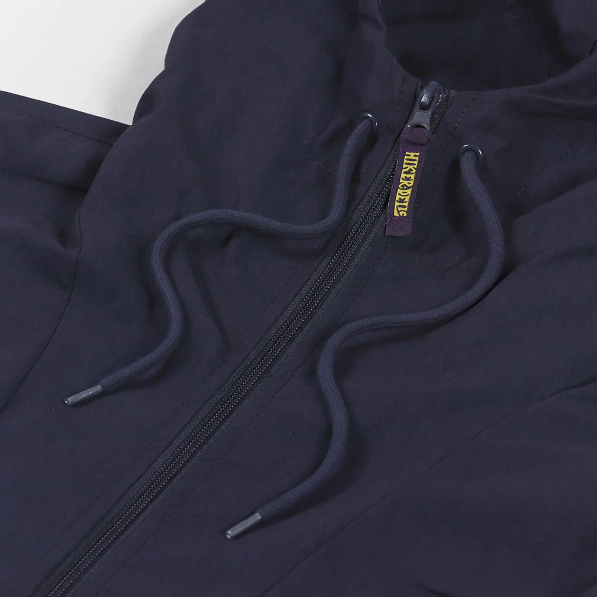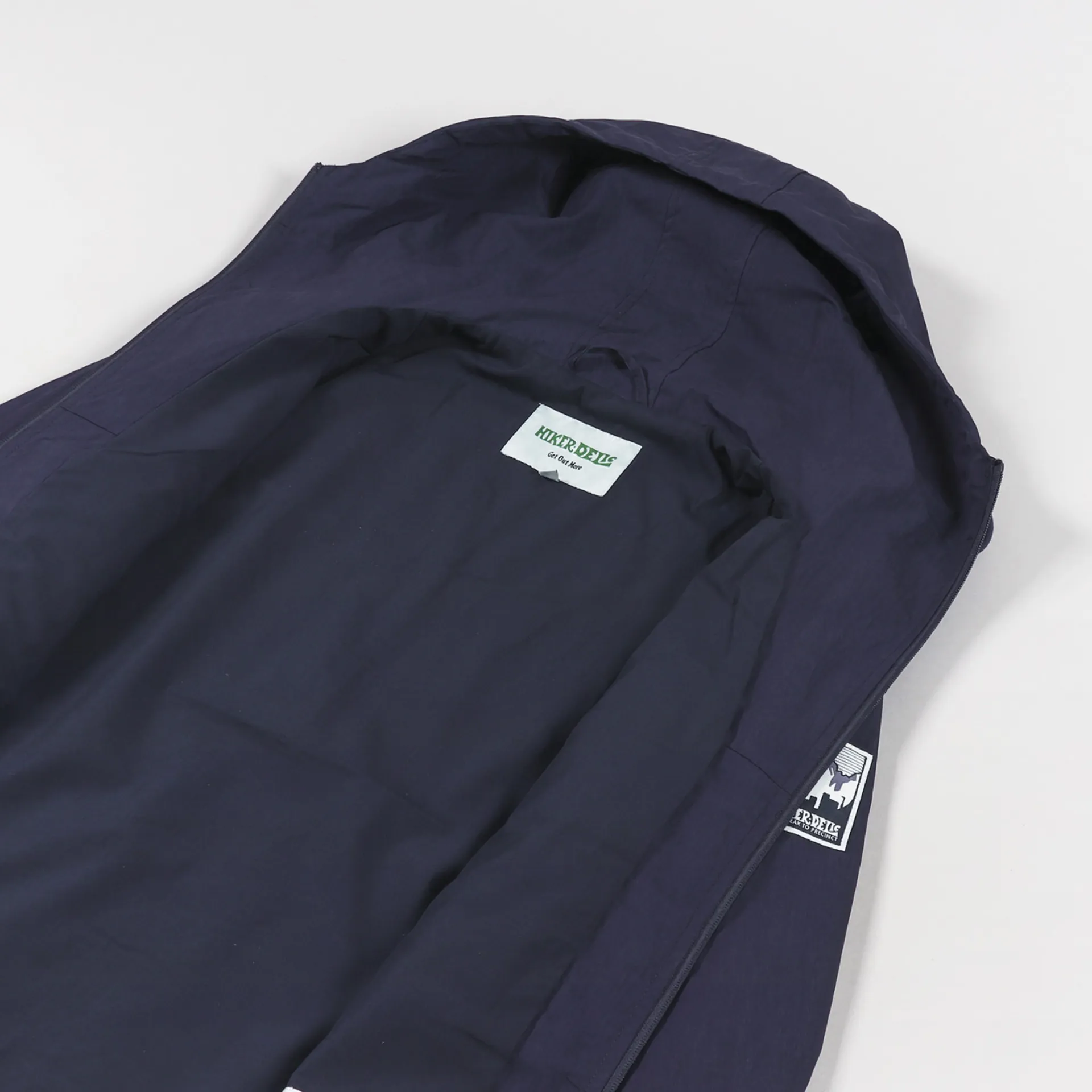 A full-zip jacket from Manchester's Hikerdelic made from a taffeta-shell of 60% cotton and 40% nylon, with a cotton/poly cloth lining. It has a drawcord to the hem, snap-up cuffs and a drawstring hood. It has a four pocket design.