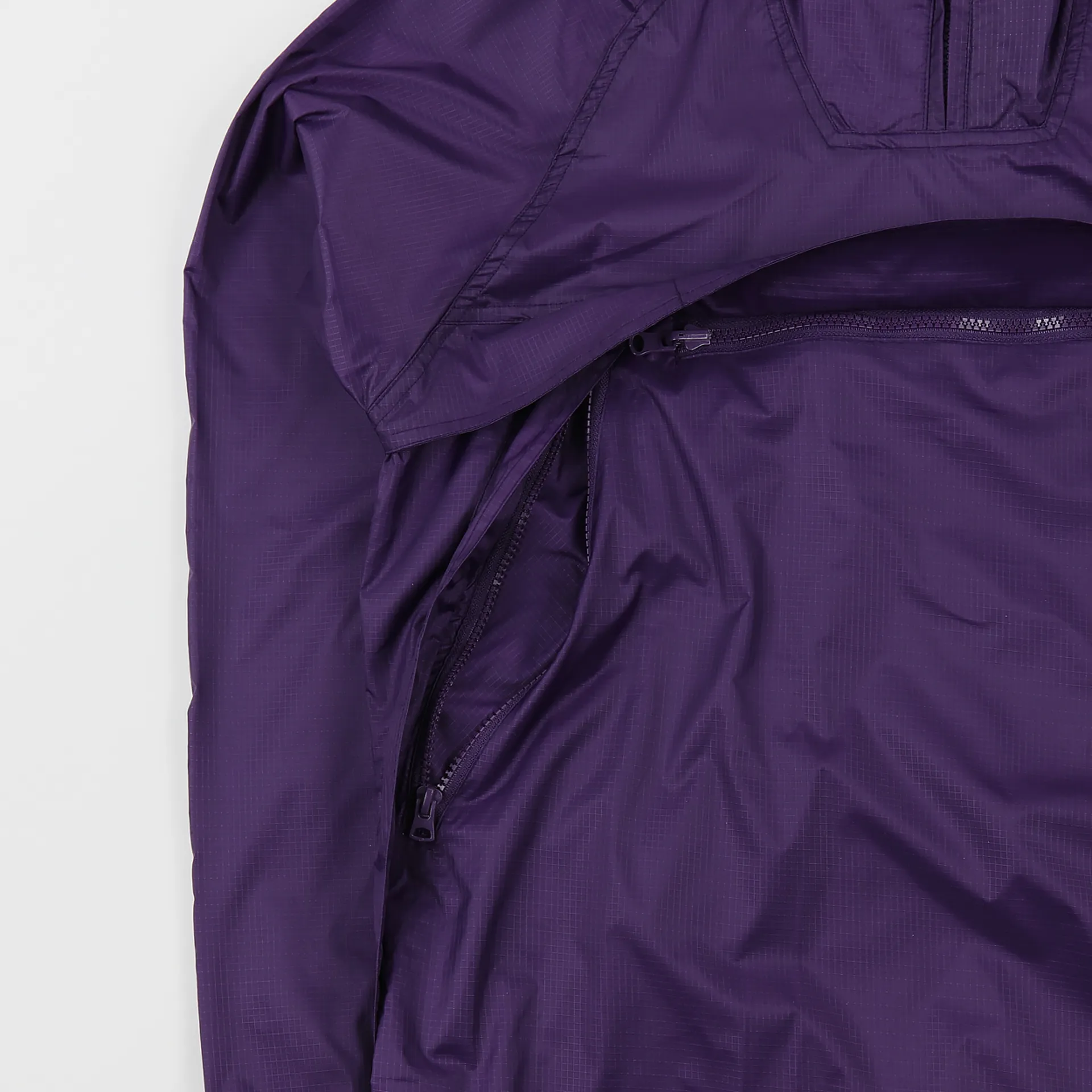 This jacket is made from a fabric of 100% nylon which is constructed with a ripstop weave. Weather-resistant and extremely lightweight, the single shell is perfect for throwing on and off when you're up a mountain or in the football stands when the showers come down. The jacket has a drawcord hem and hood and it has elasticated cuffs to seal you in. It comes with two zippered handwarmer pockets and one large zippered pouch to the front. Super-simple branding, it has a woven logo to the cuff.