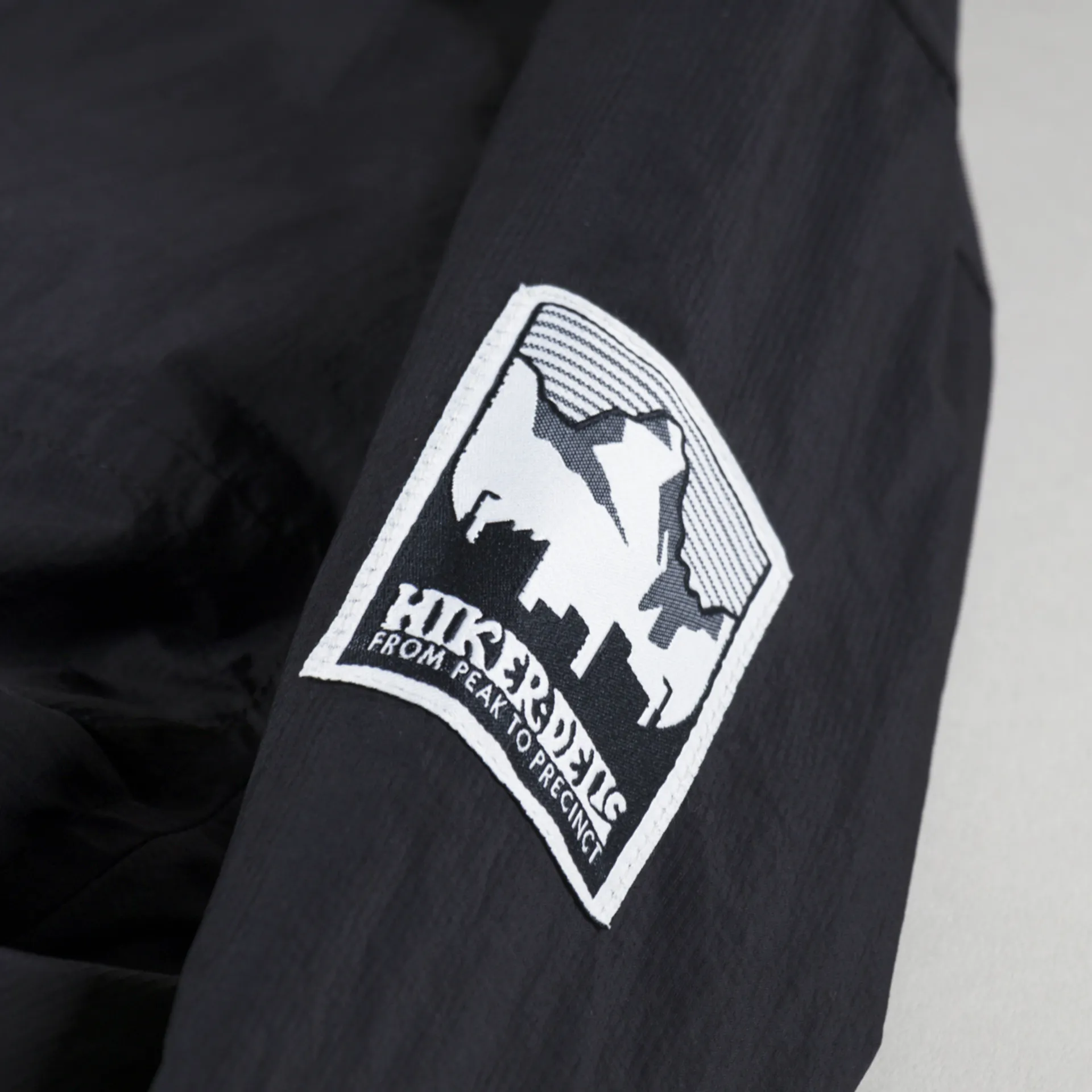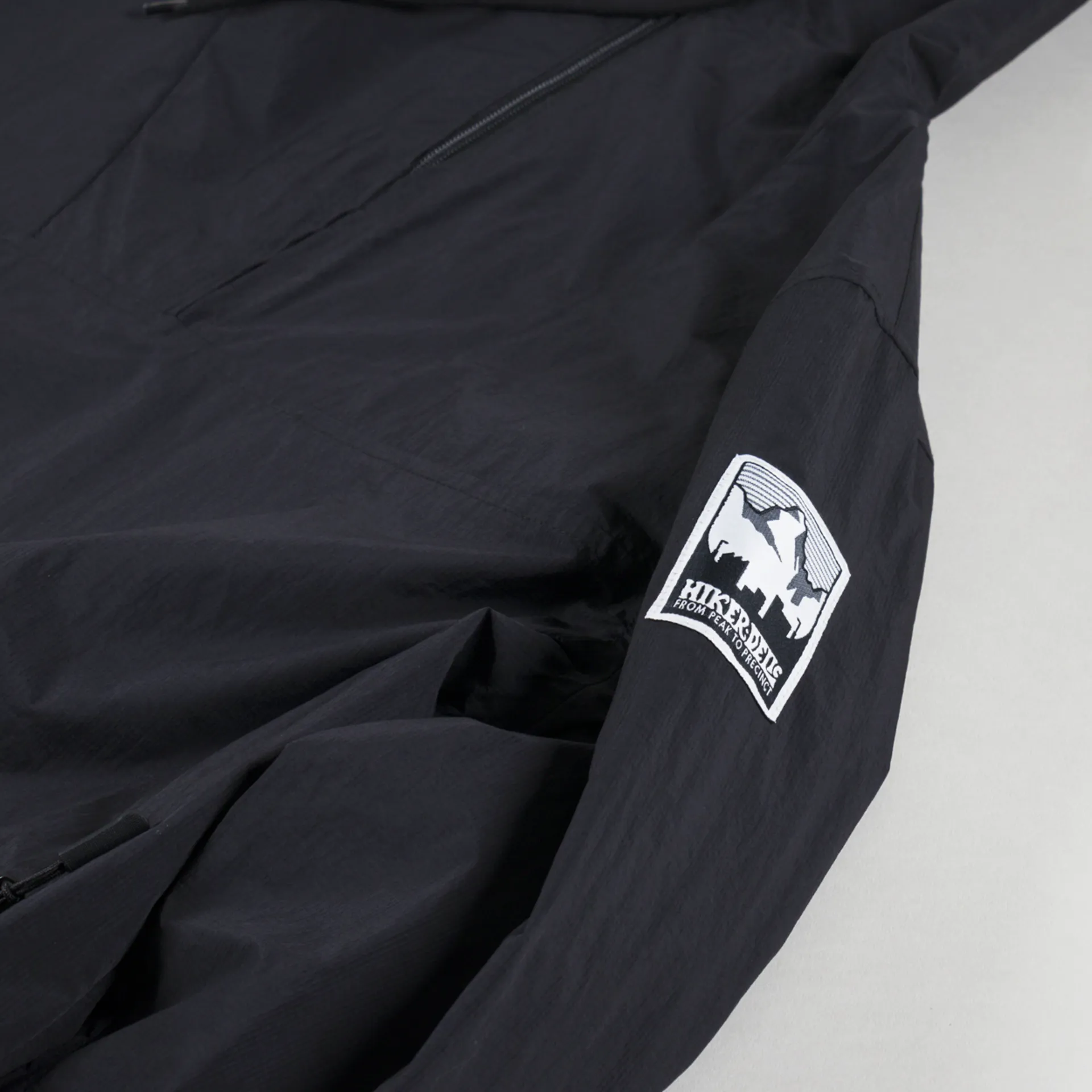 A pullover jacket from Hikerdelic, made from a comfortable shell of 100% nylon, with drawstrings through the hood and elasticated hem, along with elasticated cuffs and a zippered side and neck. It also has zippered handwarmer pockets and a tonal woven logo label on the arm.
