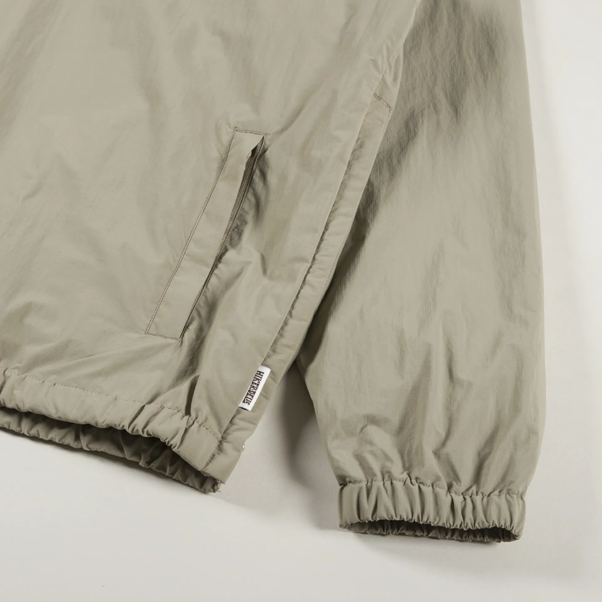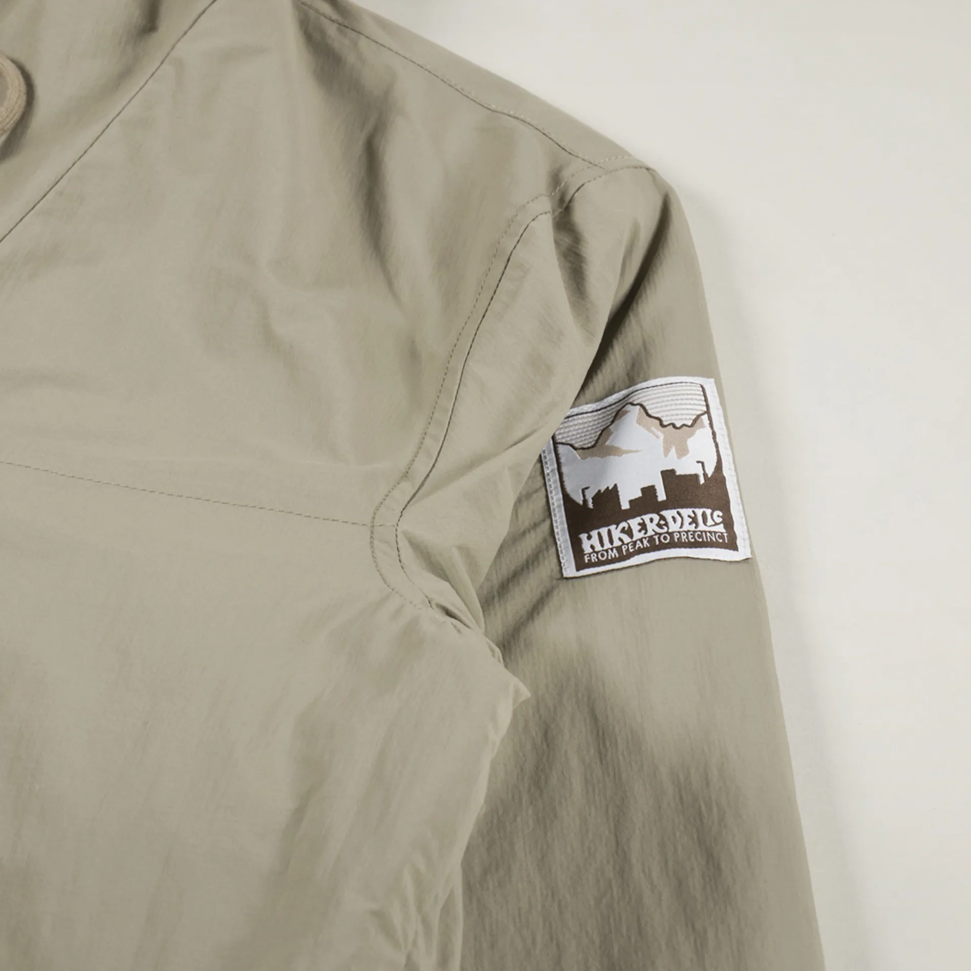 A pullover jacket from Hikerdelic, made from a comfortable shell of 100% nylon, with drawstrings through the hood and elasticated hem, along with elasticated cuffs and a zippered side and neck. It also has zippered handwarmer pockets and a tonal woven logo label on the arm.