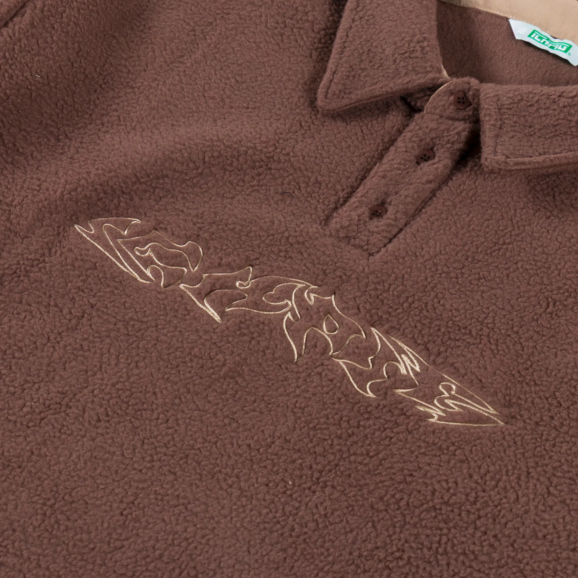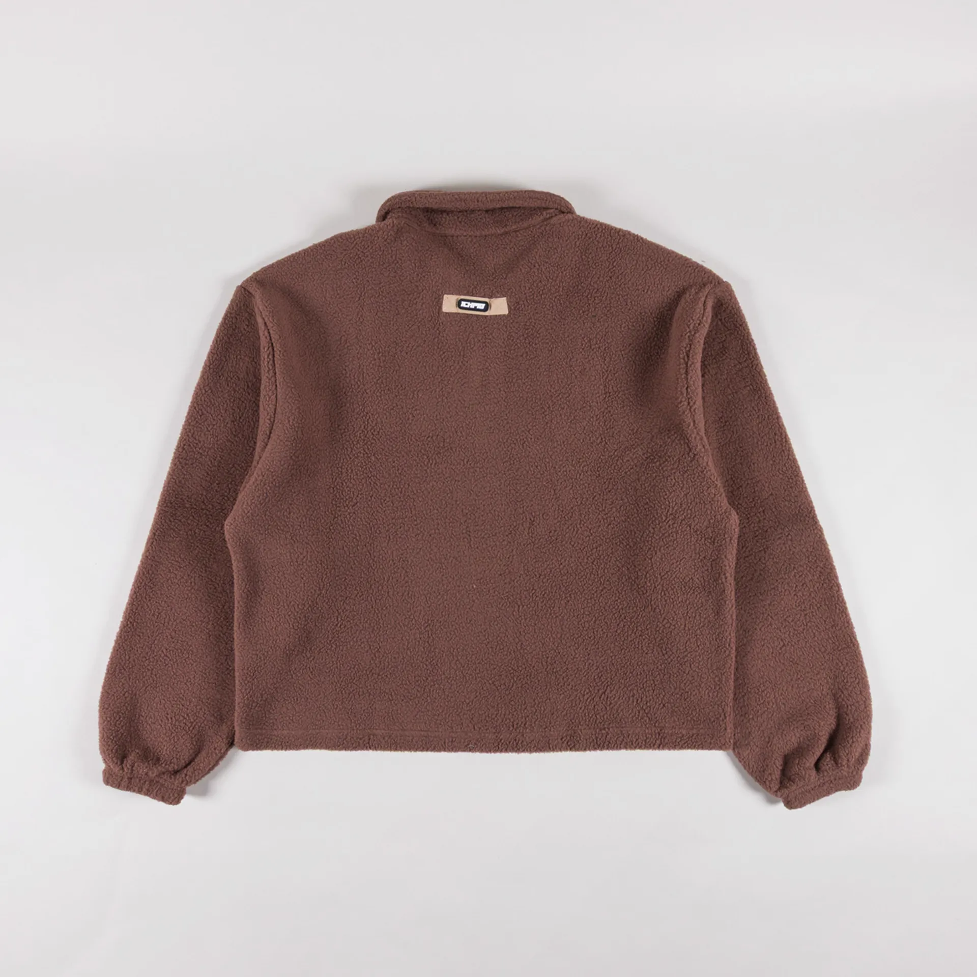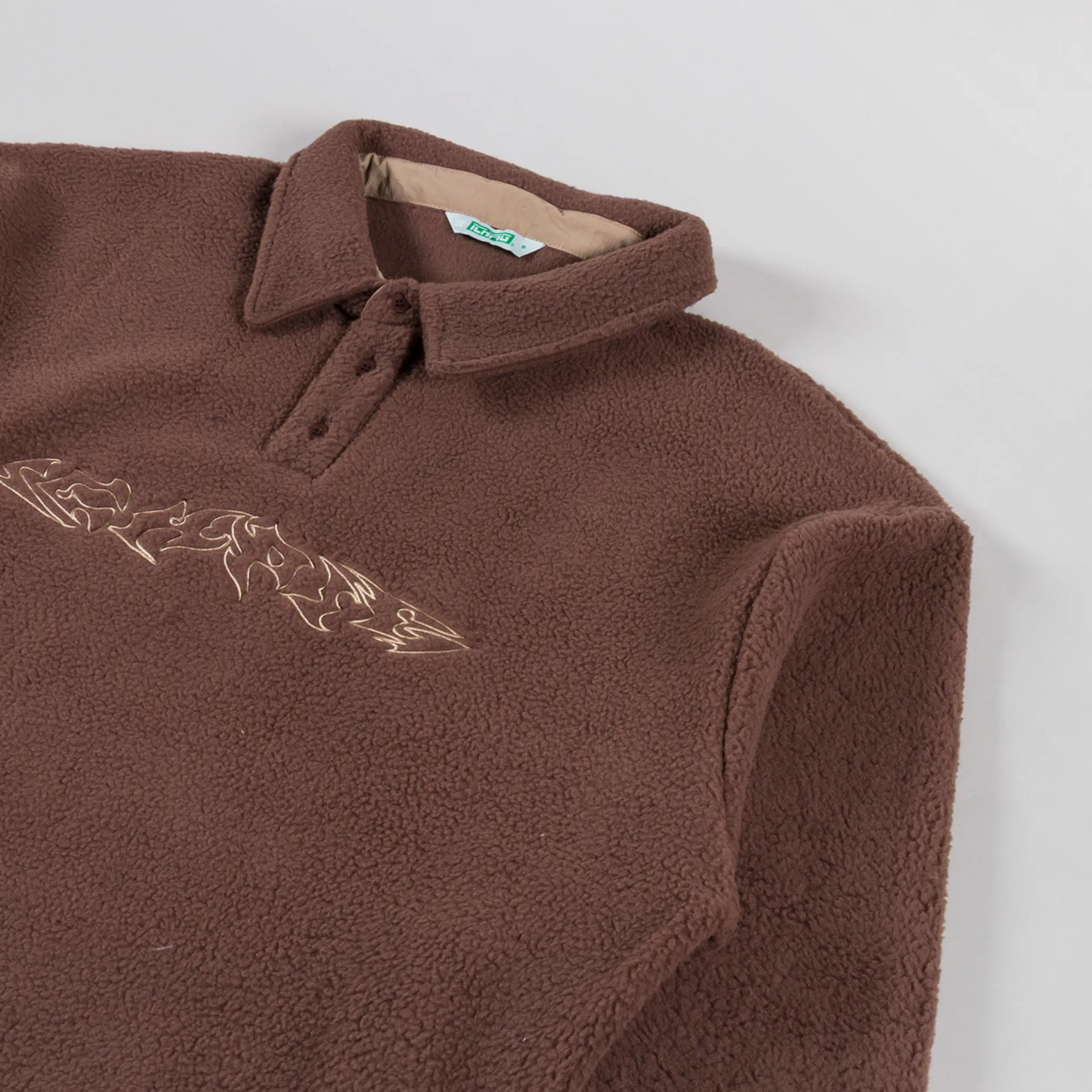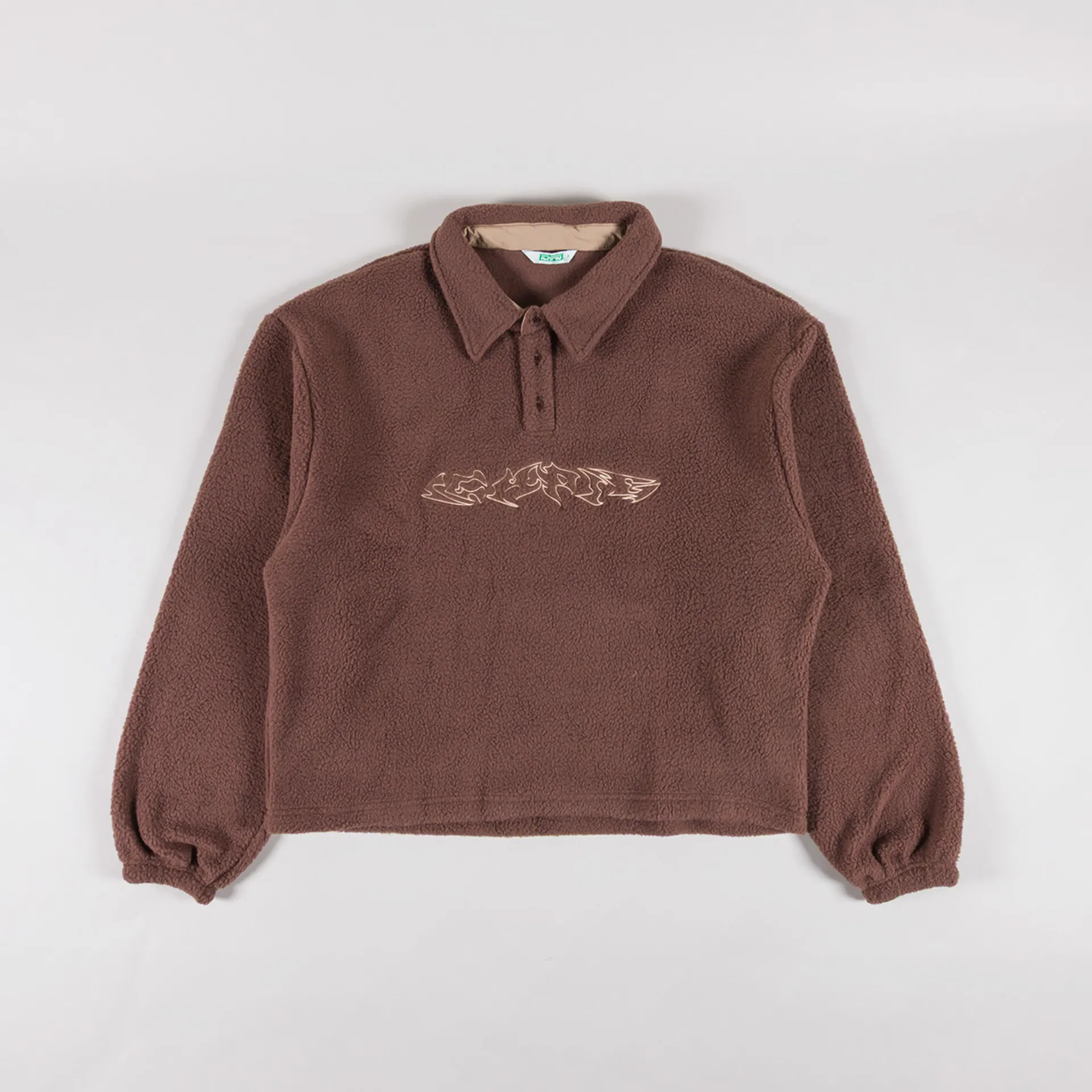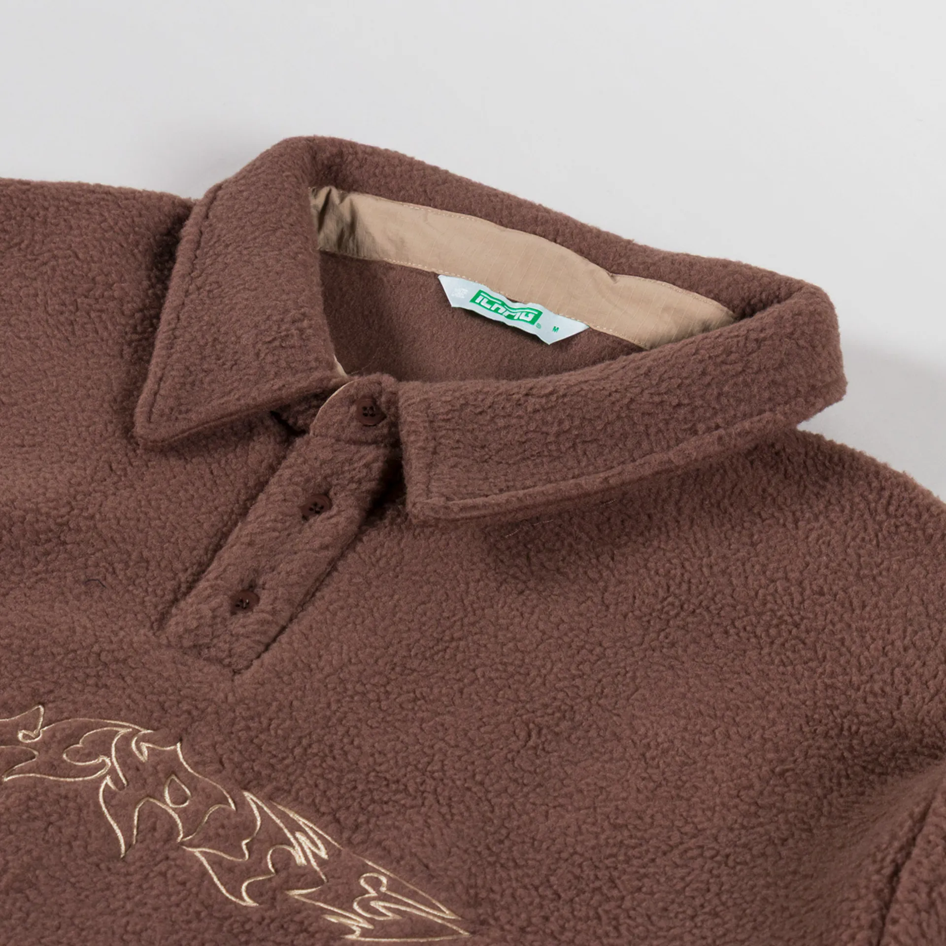 A fleece from ICHPIG, cut in an extra wide boxy fit and constructed from super soft and warm sherpa fabric. It features a three-button placket, leading to a classic collar, with a straight hem and elasticated cuffs to keep the draught out. Finished with an embroidered logo across the chest and a rubber ICHPIG logo at the back of the neck.