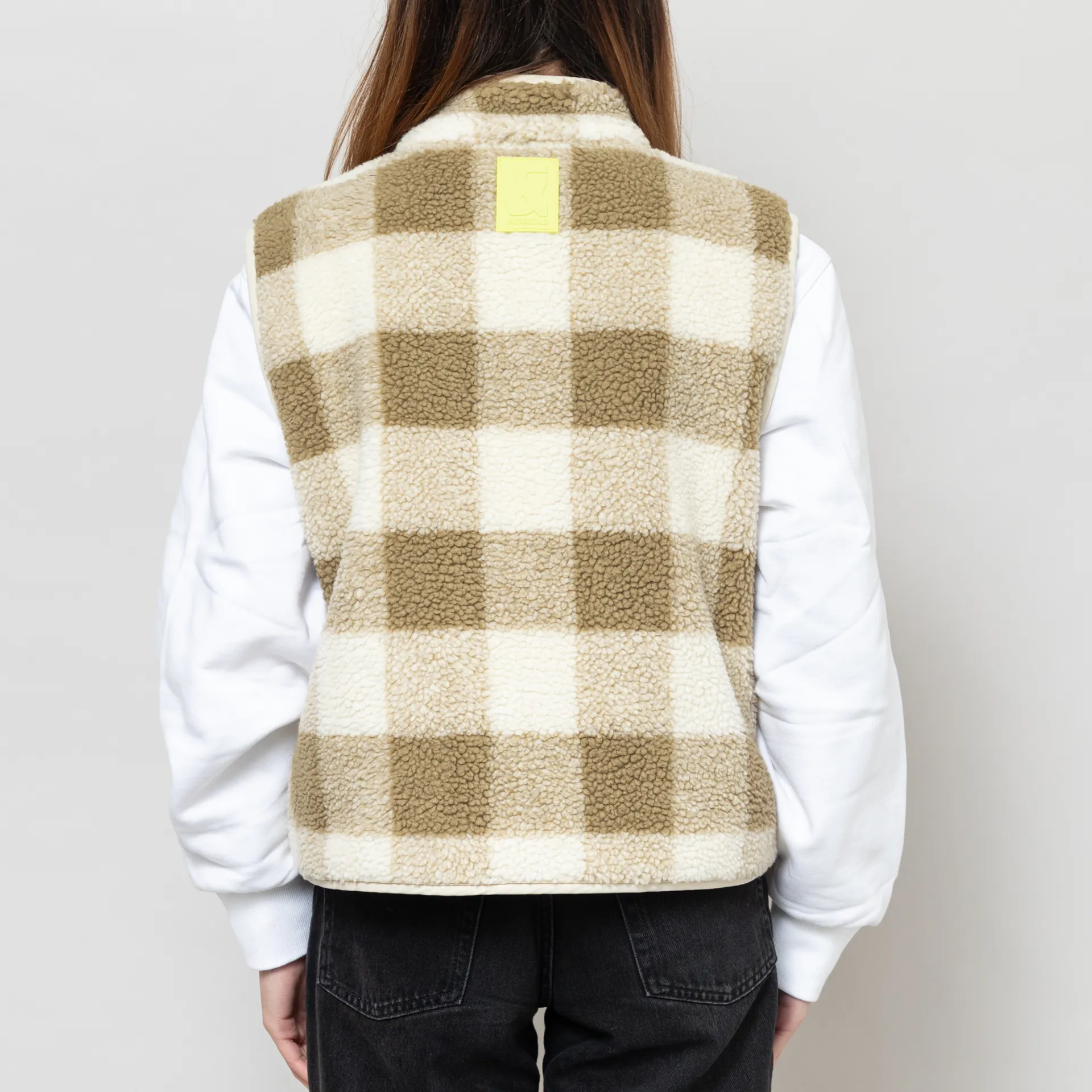 Indi And Cold Womens Teddy Plaid Vest Olive
