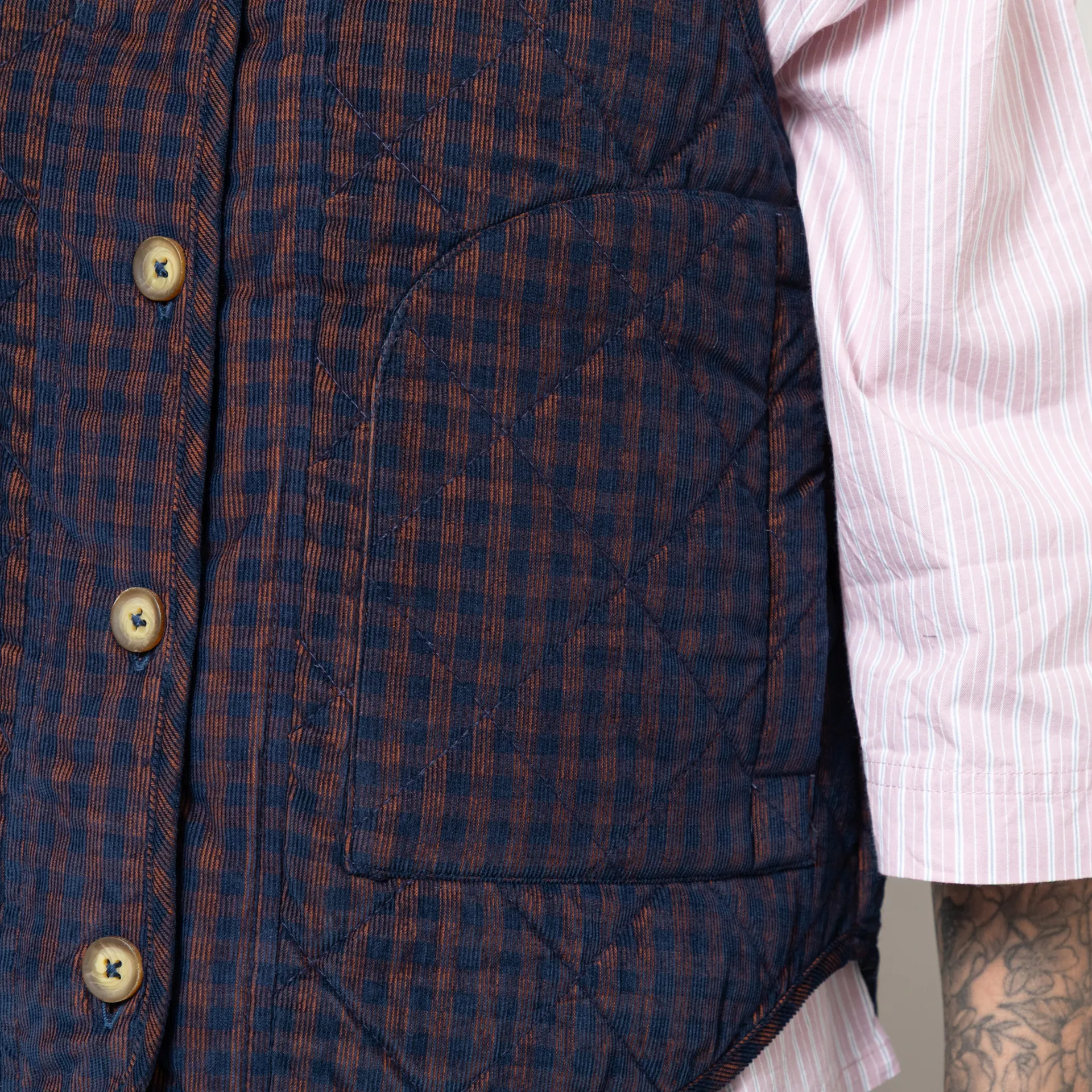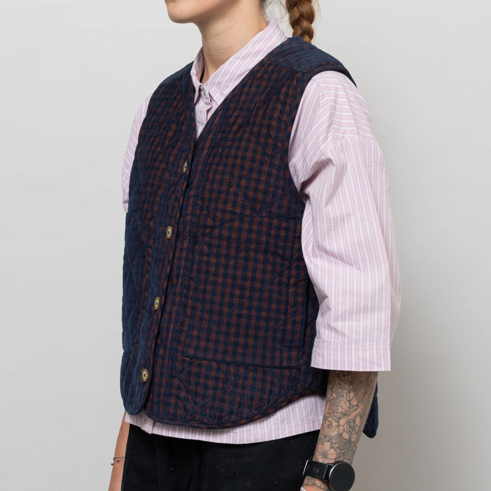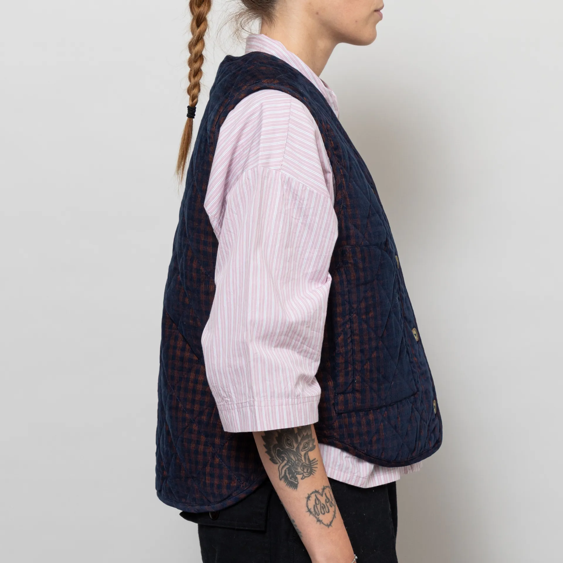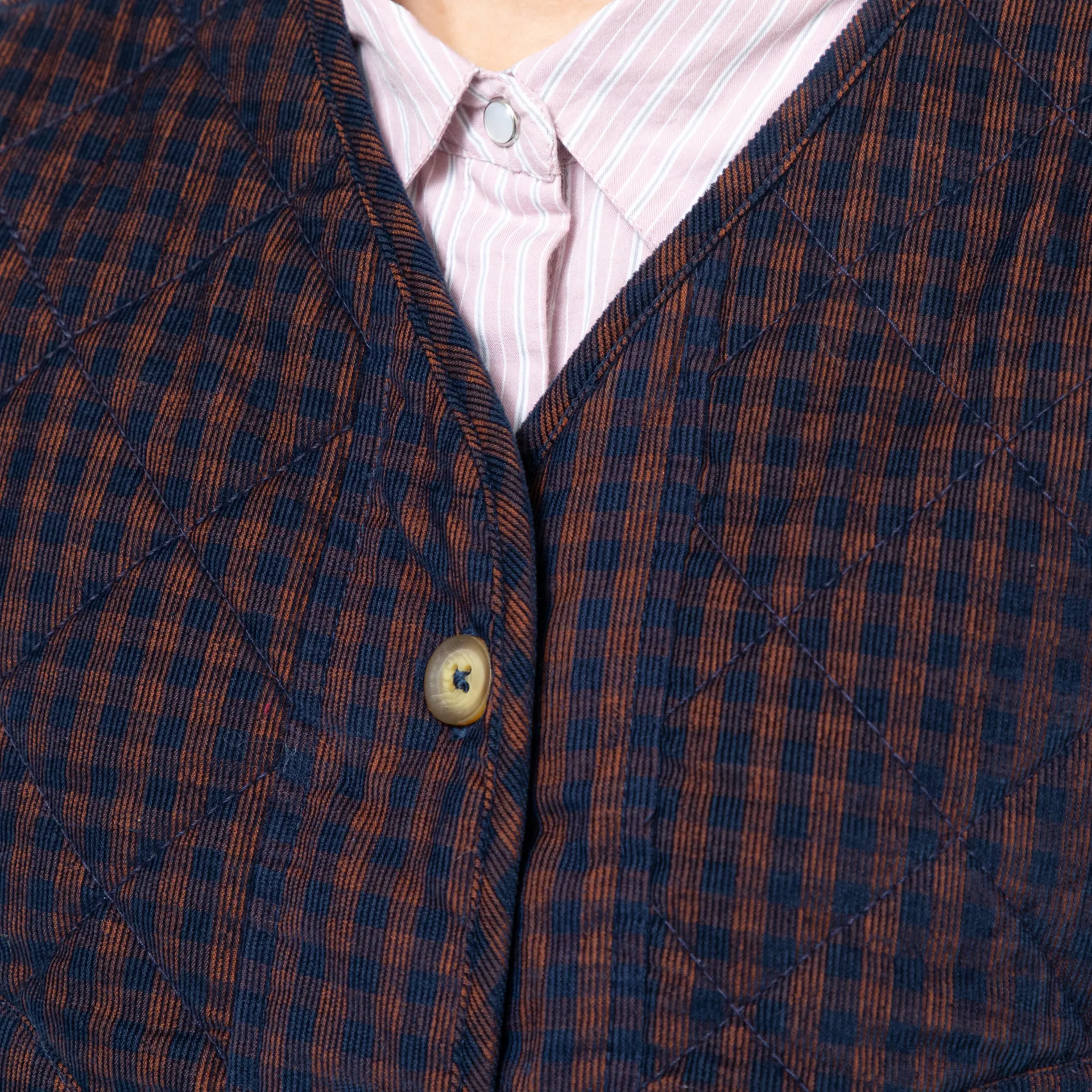 Indi And Cold Womens Vichy Quilted Micro-Corduroy Vest Navy