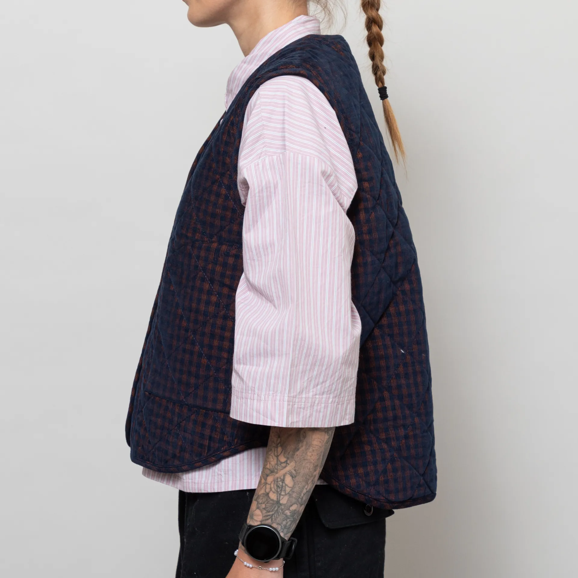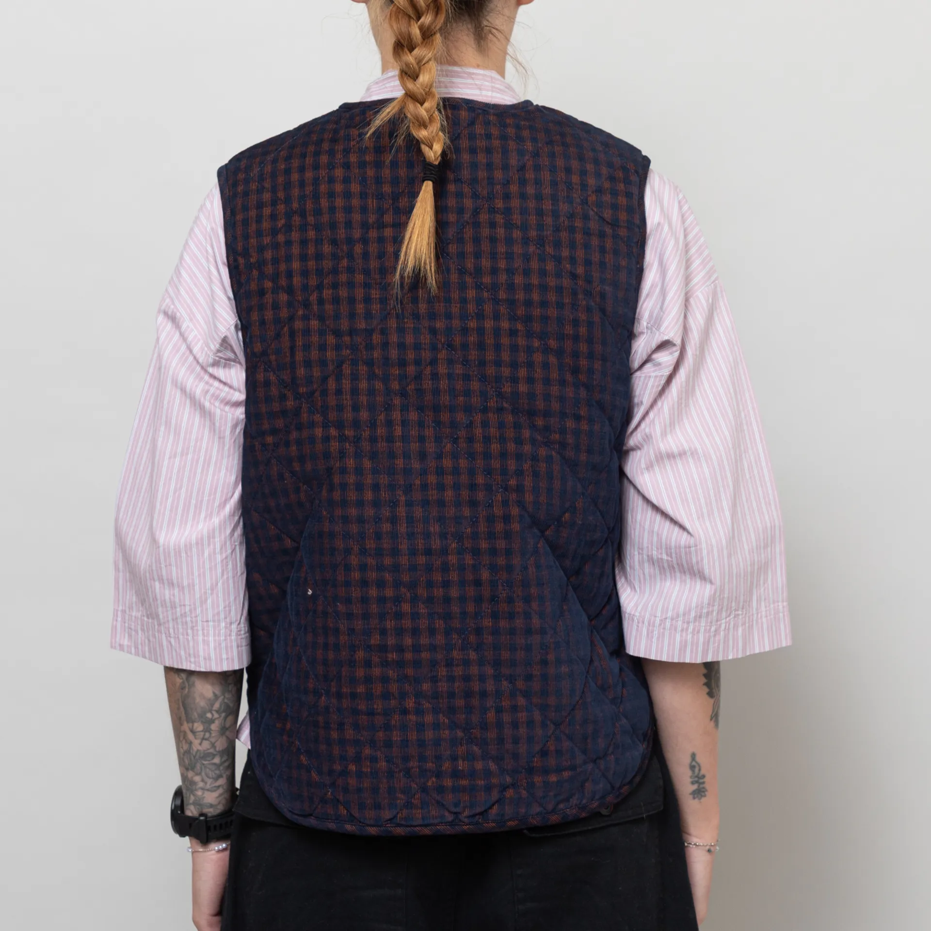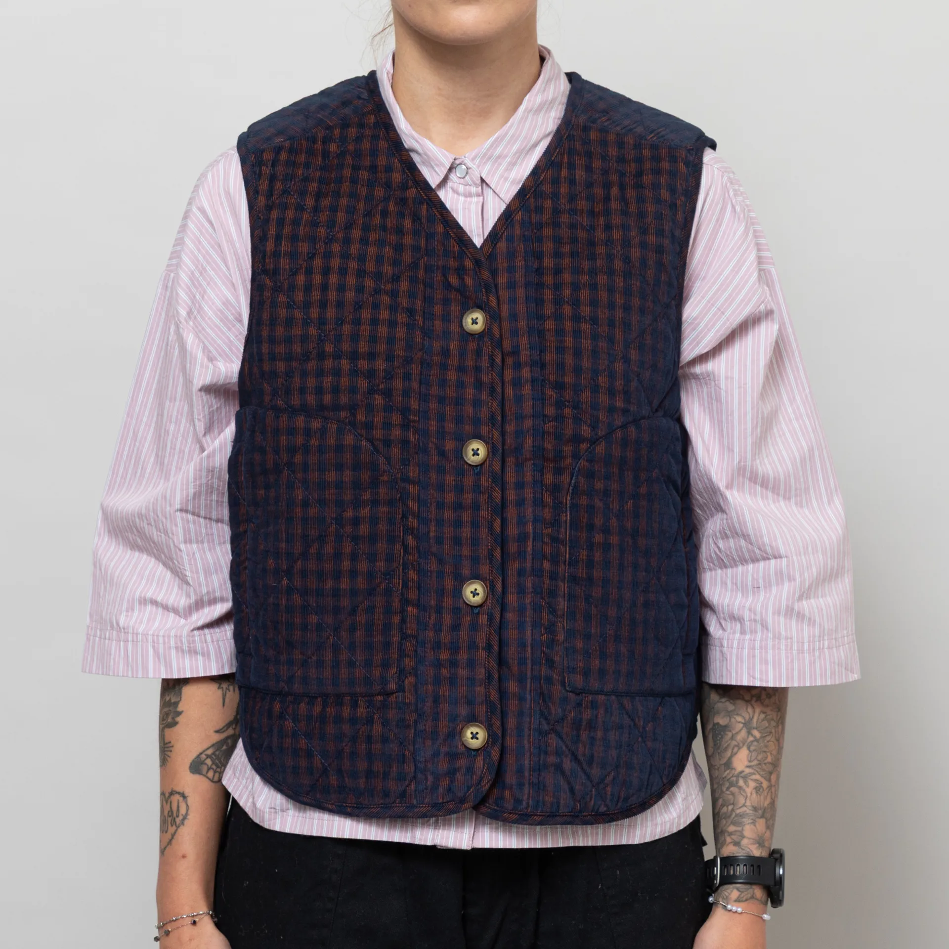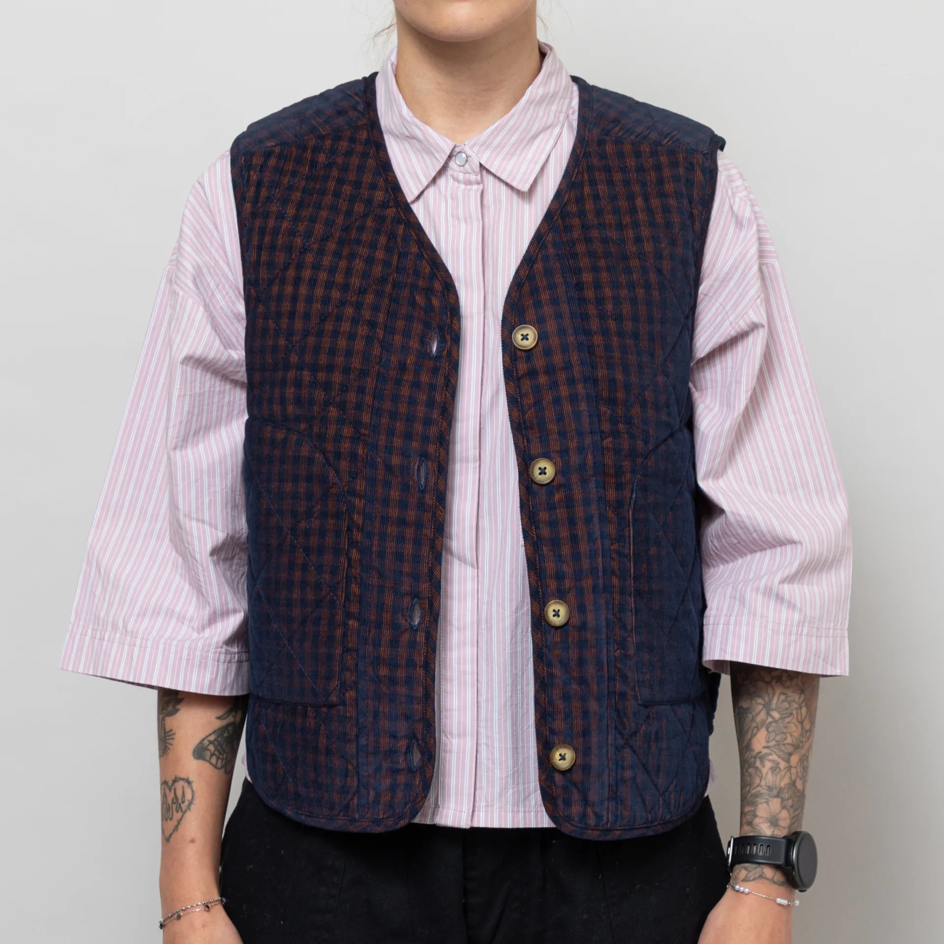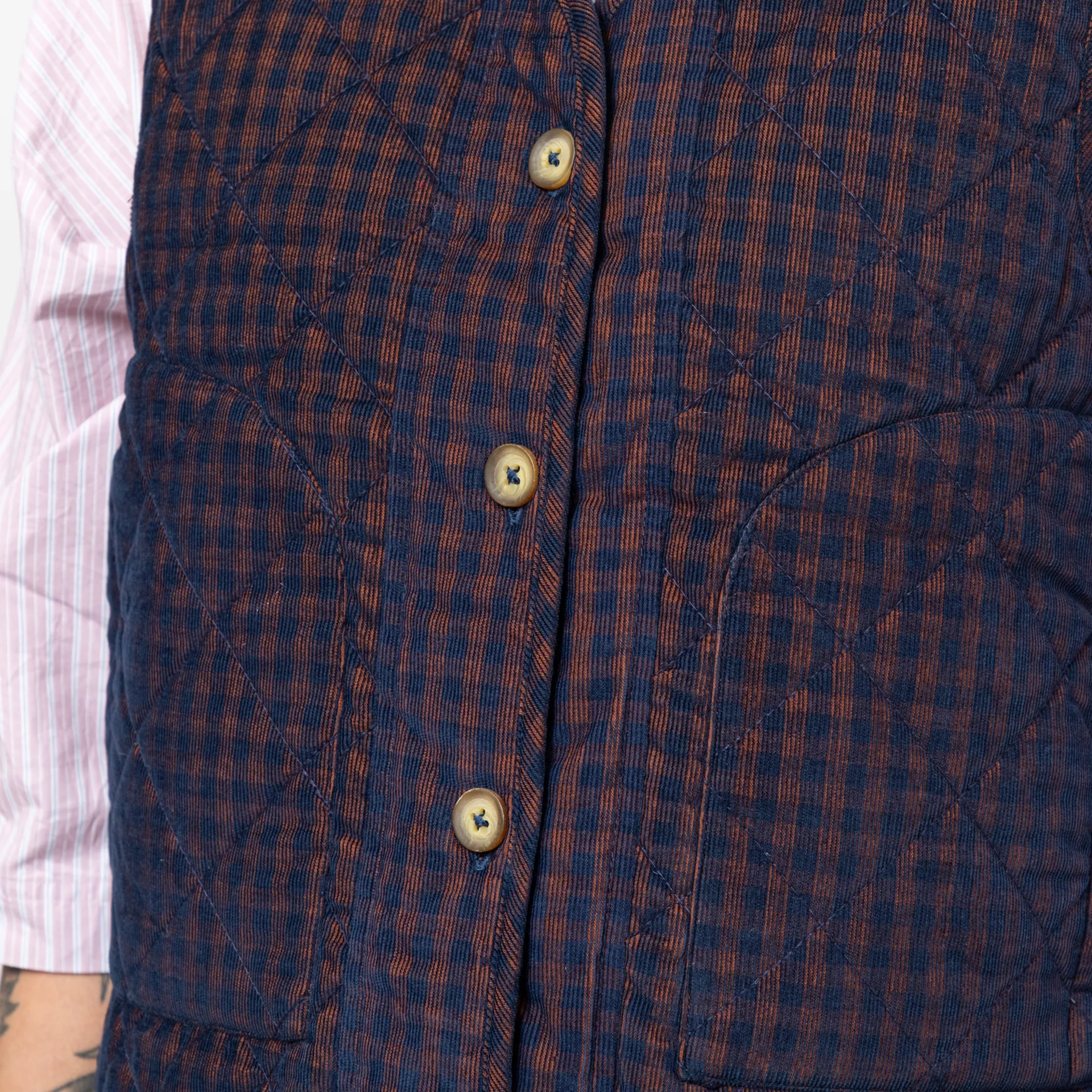 Indi And Cold Womens Vichy Quilted Micro-Corduroy Vest Navy