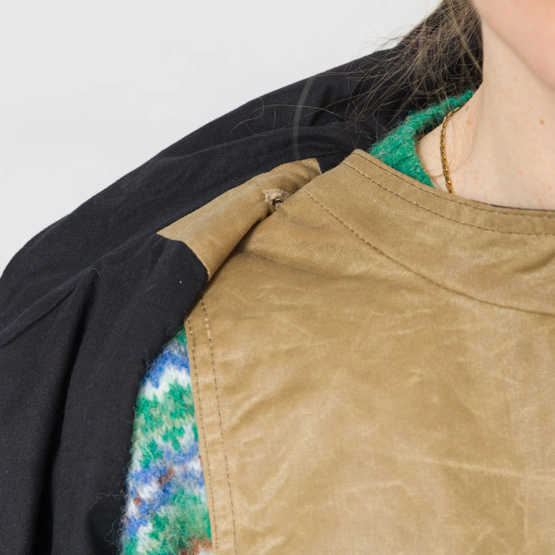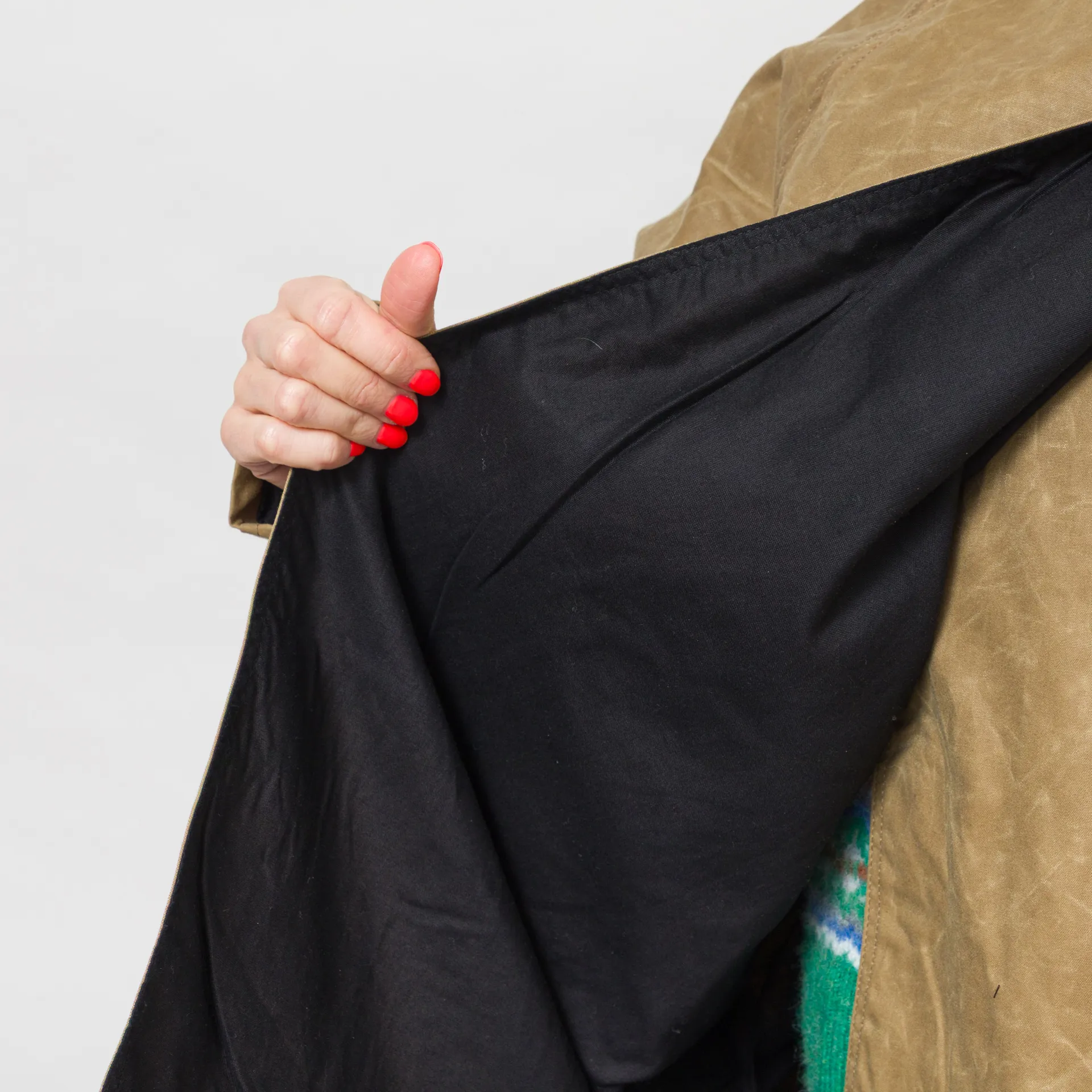 A batwing coat from Kate Sheridan,constructed with Halley Stevenson antique style water resistant waxed cotton.