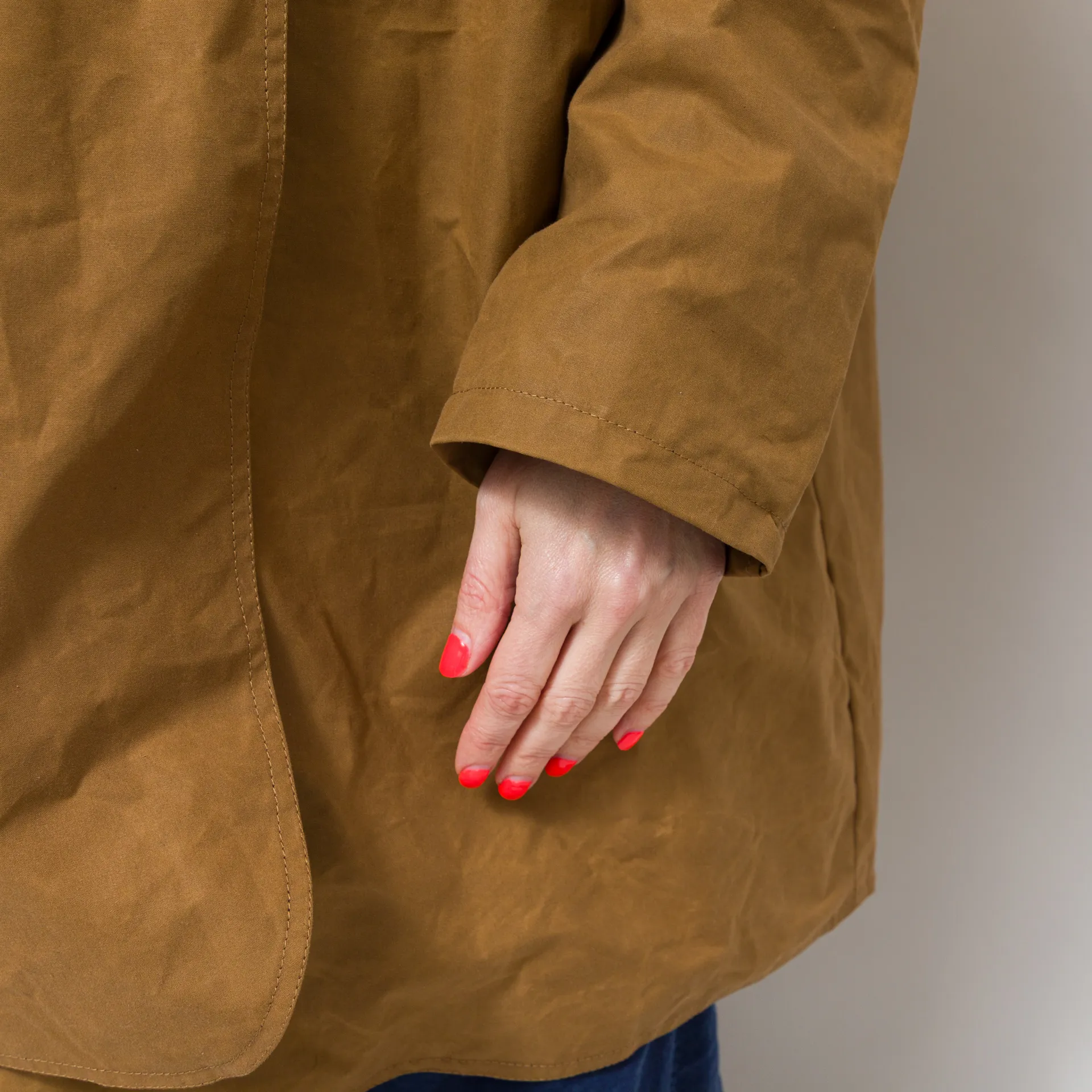 A batwing coat from Kate Sheridan,constructed with Halley Stevenson antique style water resistant waxed cotton.