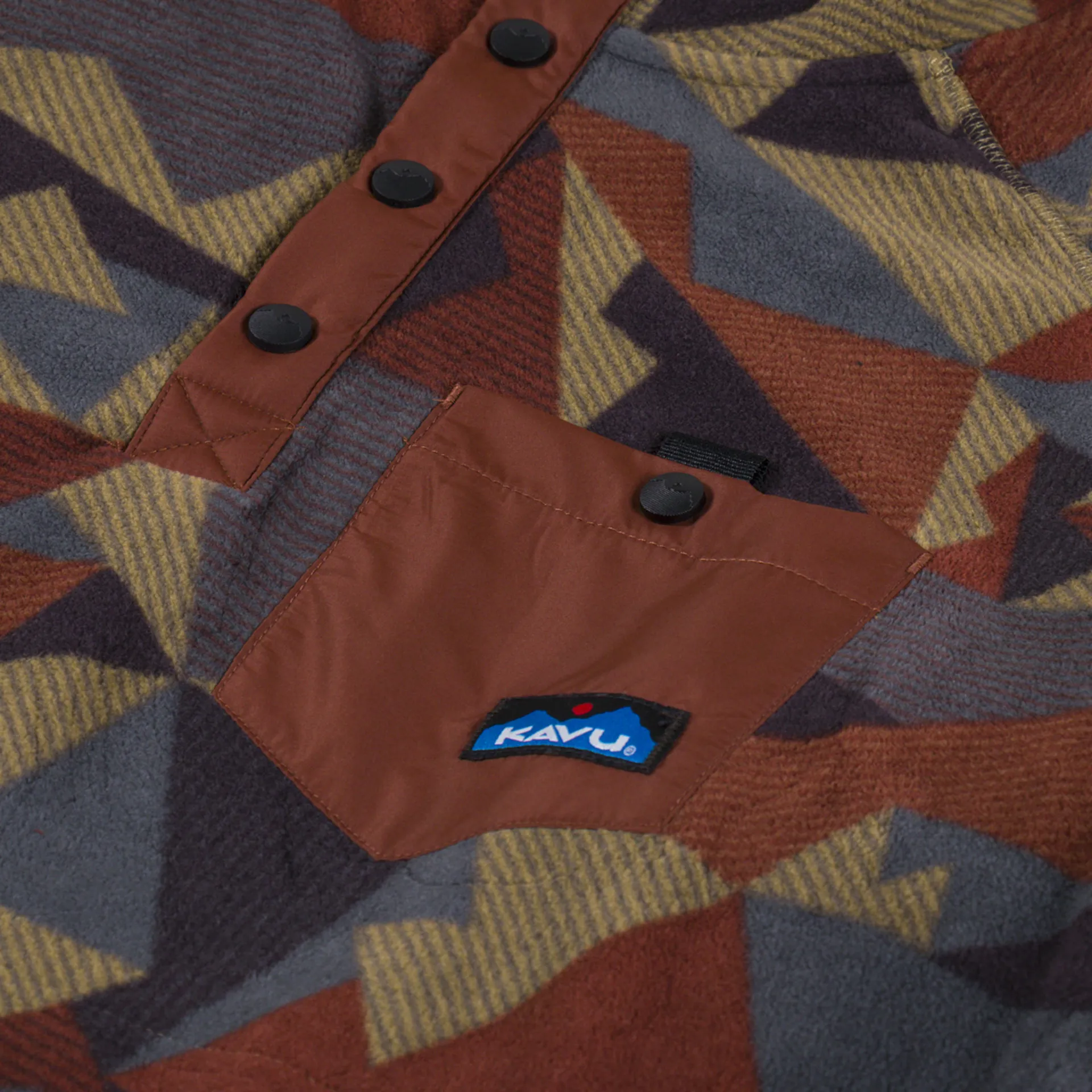 A lightweight fleece from Seattle's Kavu, made from a lightweight, warm and comfortable 100% polyester microfleece with overlays to the forearms and snap-up chest pocket, along with a zippered kangaroo pocket and a woven chest logo.