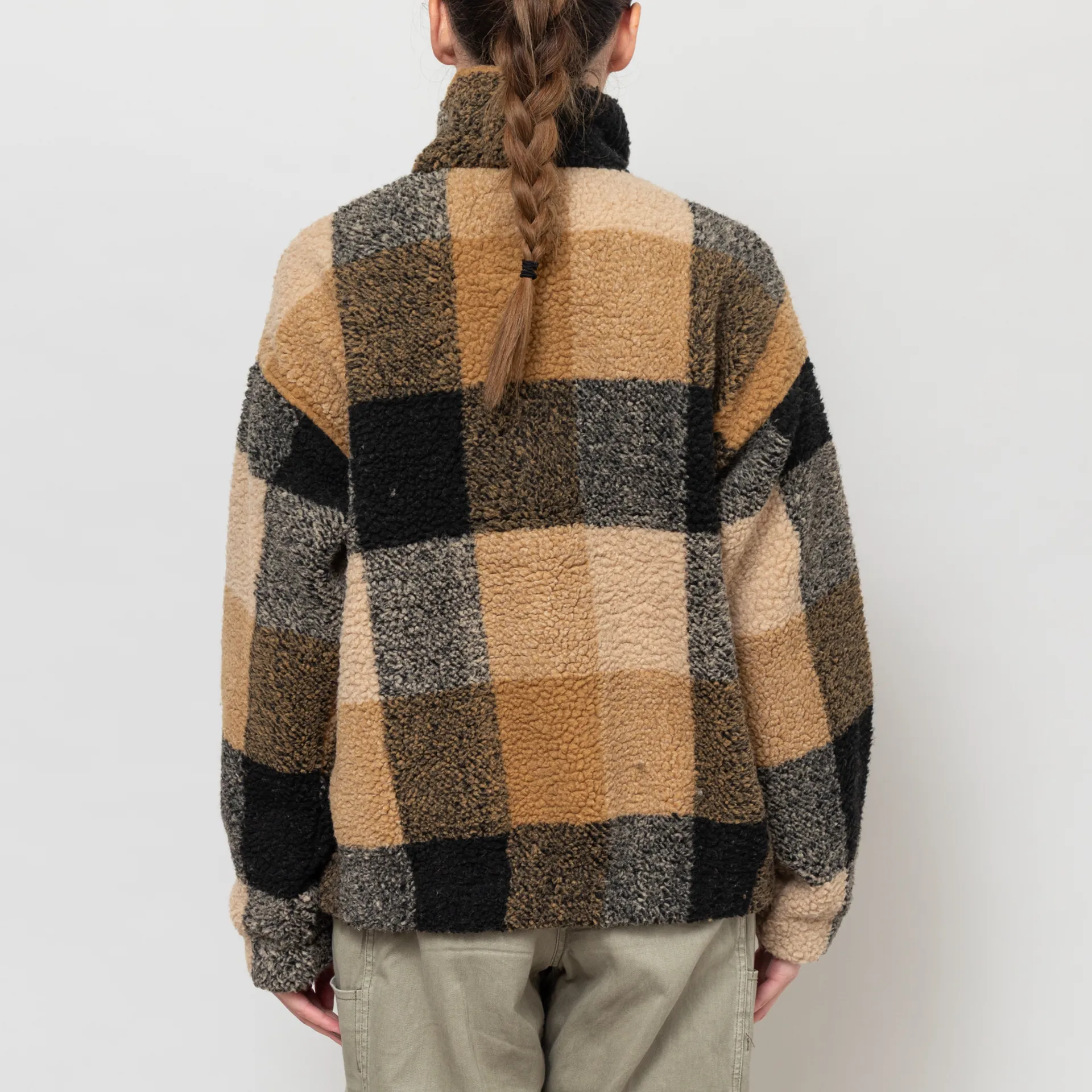 The Loven Jacket from Kavu's womenswear collection has been cut in a slightly relaxed, boxy fit for a more casual look, constructed from soft and warm 100% recycled polyester with a yarn-dyed checkered jacquard throughout