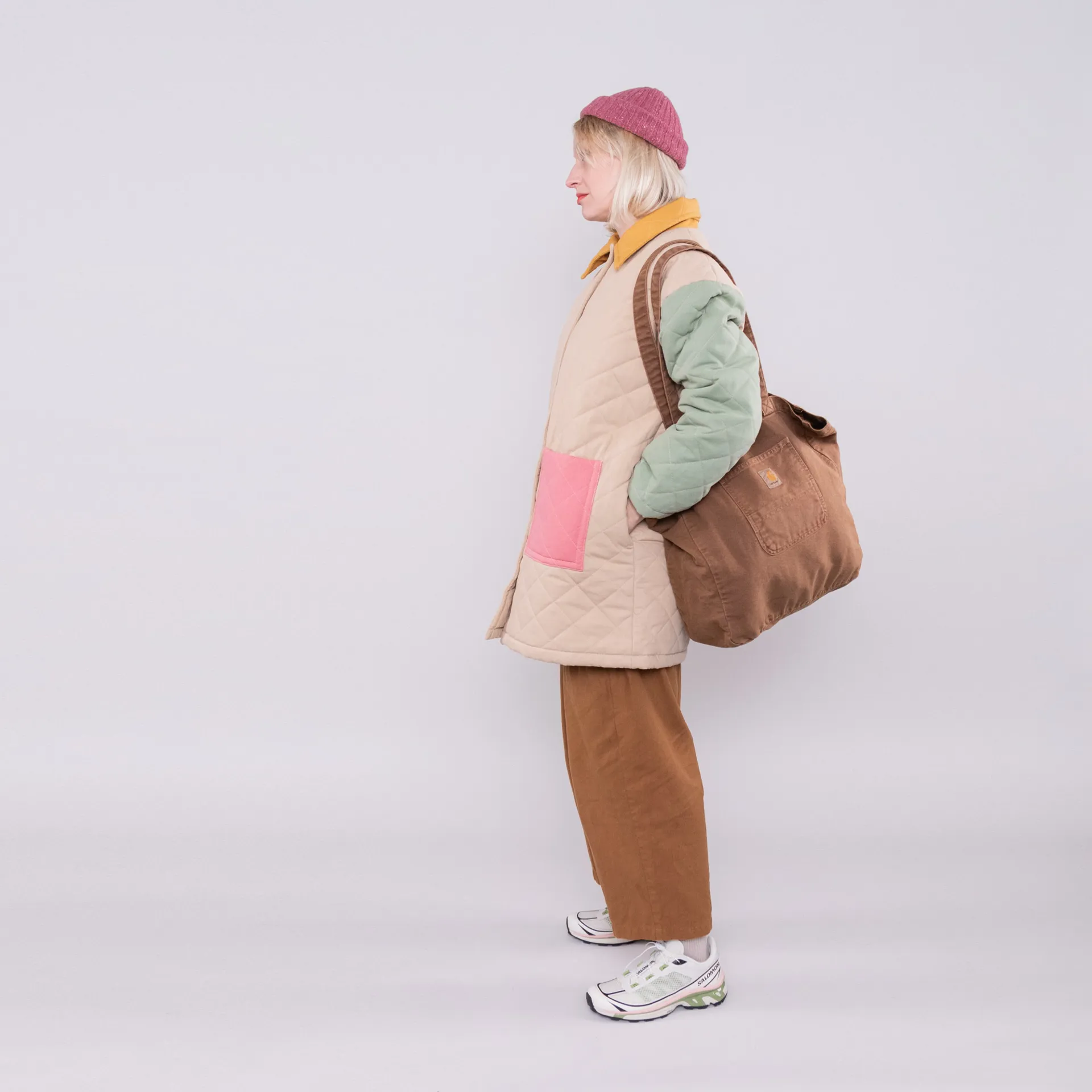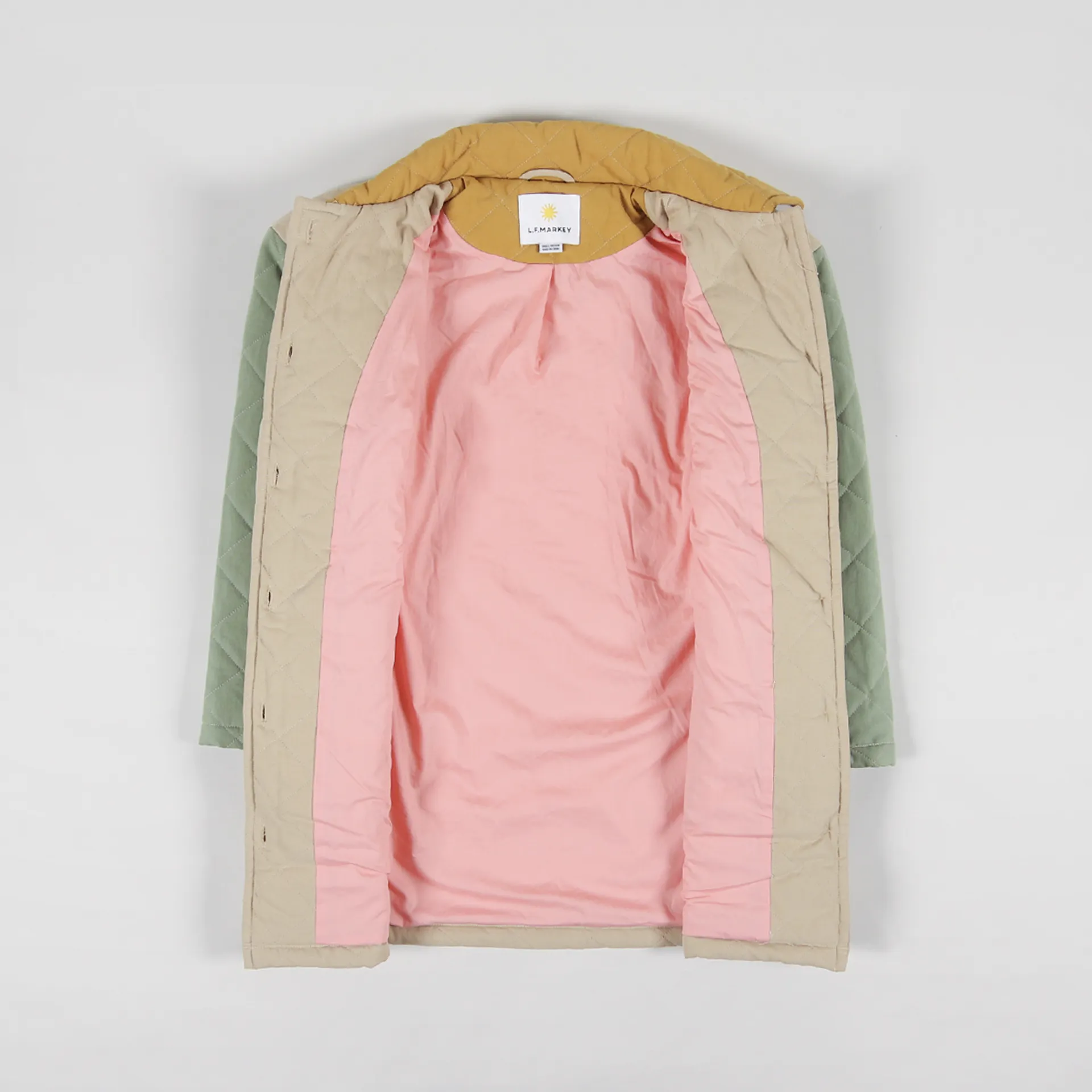 A warm winter jacket from L.F.Markey's Womenswear collection, made from a shell of cotton canvas with a smooth polyester lining and a synthetic insulation in a quilted design. It has a snap-up front and two patch pockets.