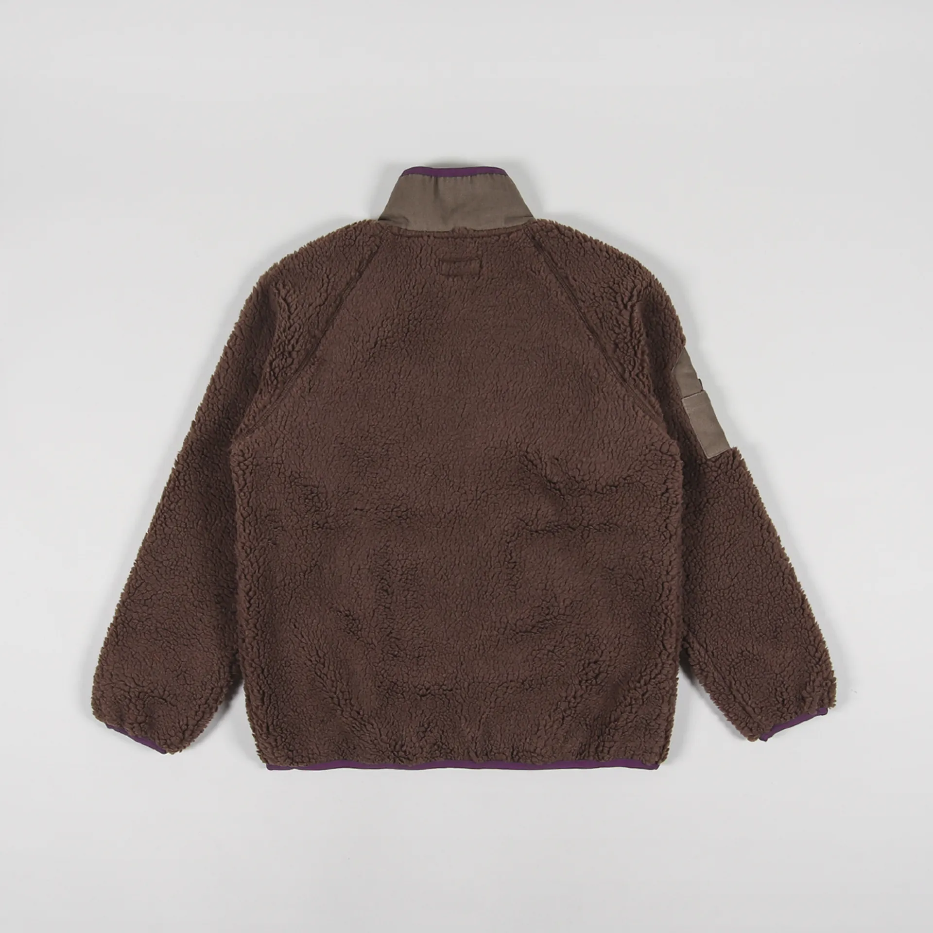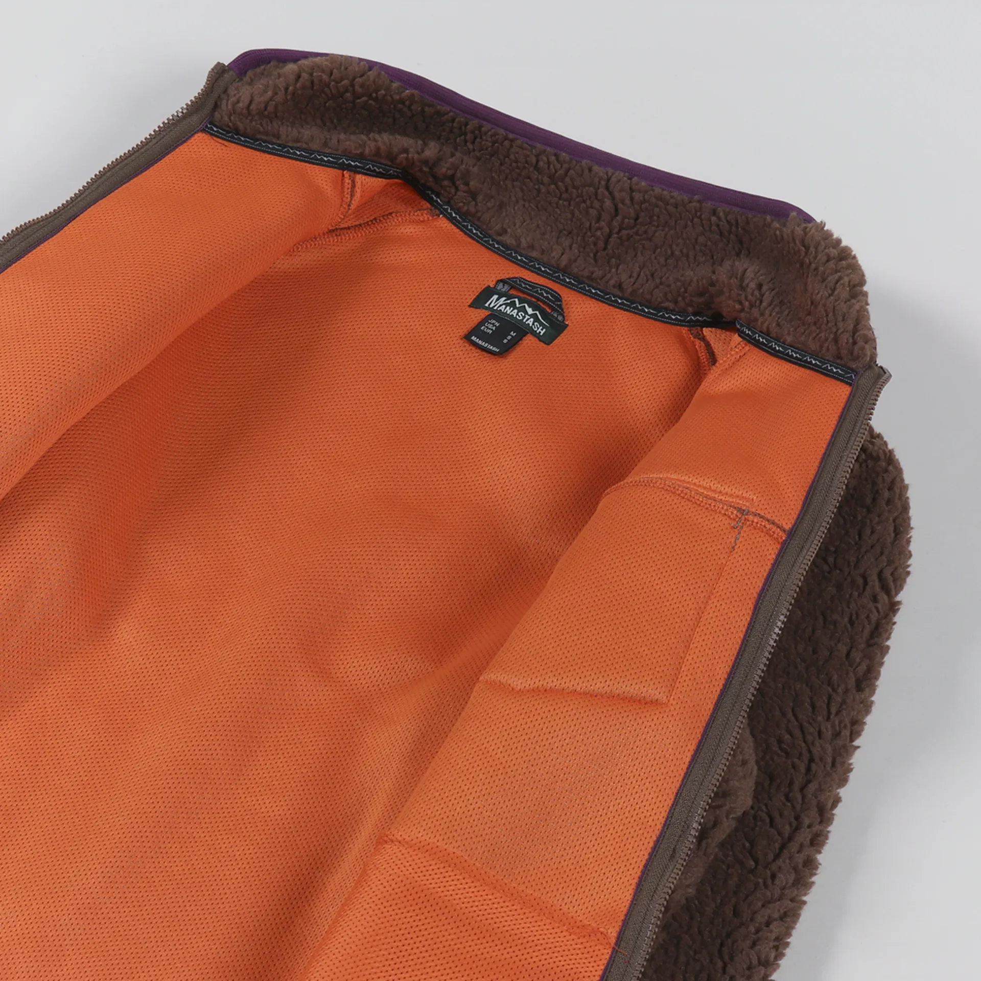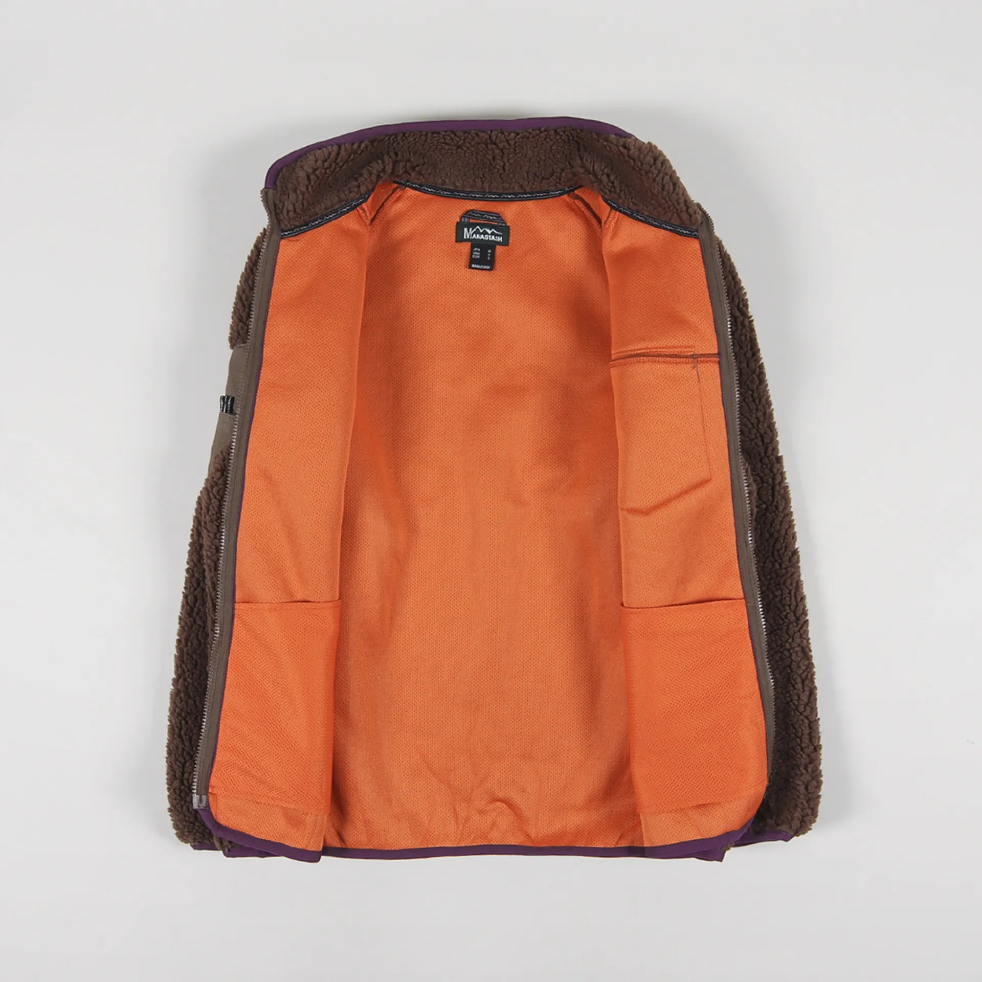 The Mt. Gorilla is one of their flagship silhouettes, made from a bonded windproof sherpa outer with a mesh lining and hemp/cotton blend twill panels to the collar, zippered chest pocket shoulder pocket. It also has zippered handwarmer pockets for added storage.