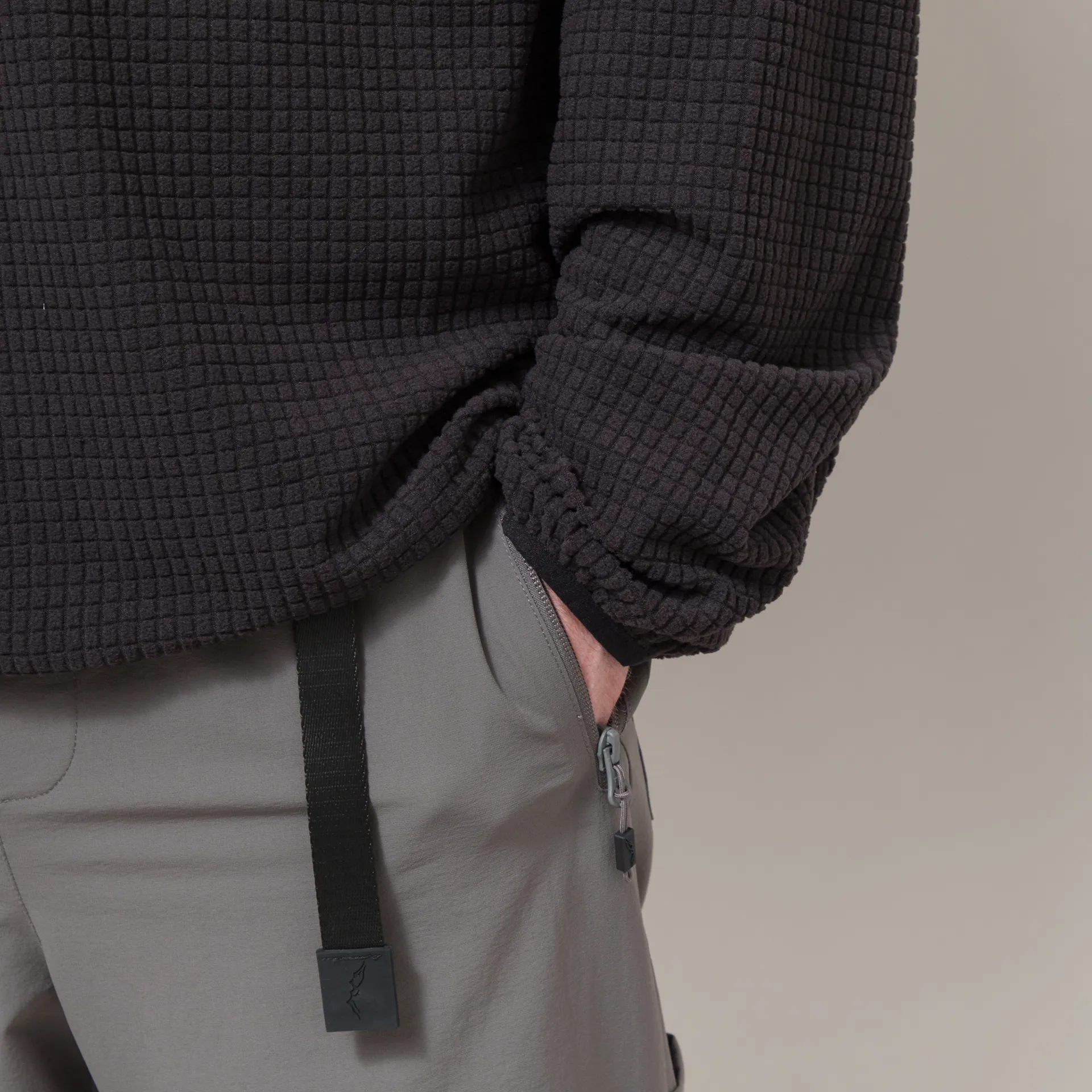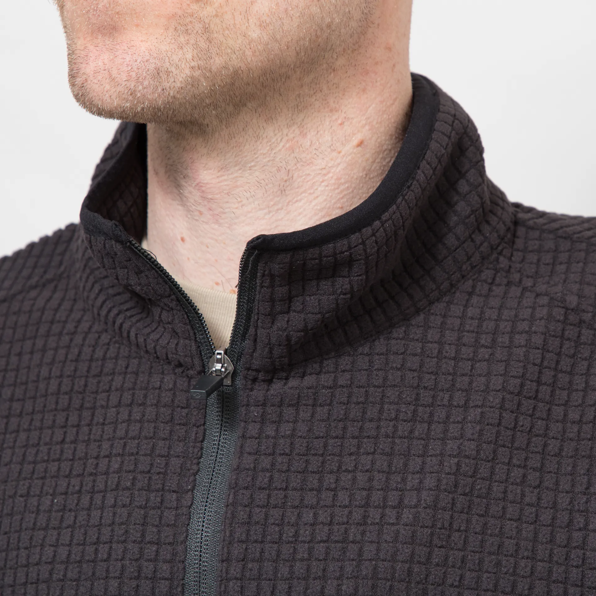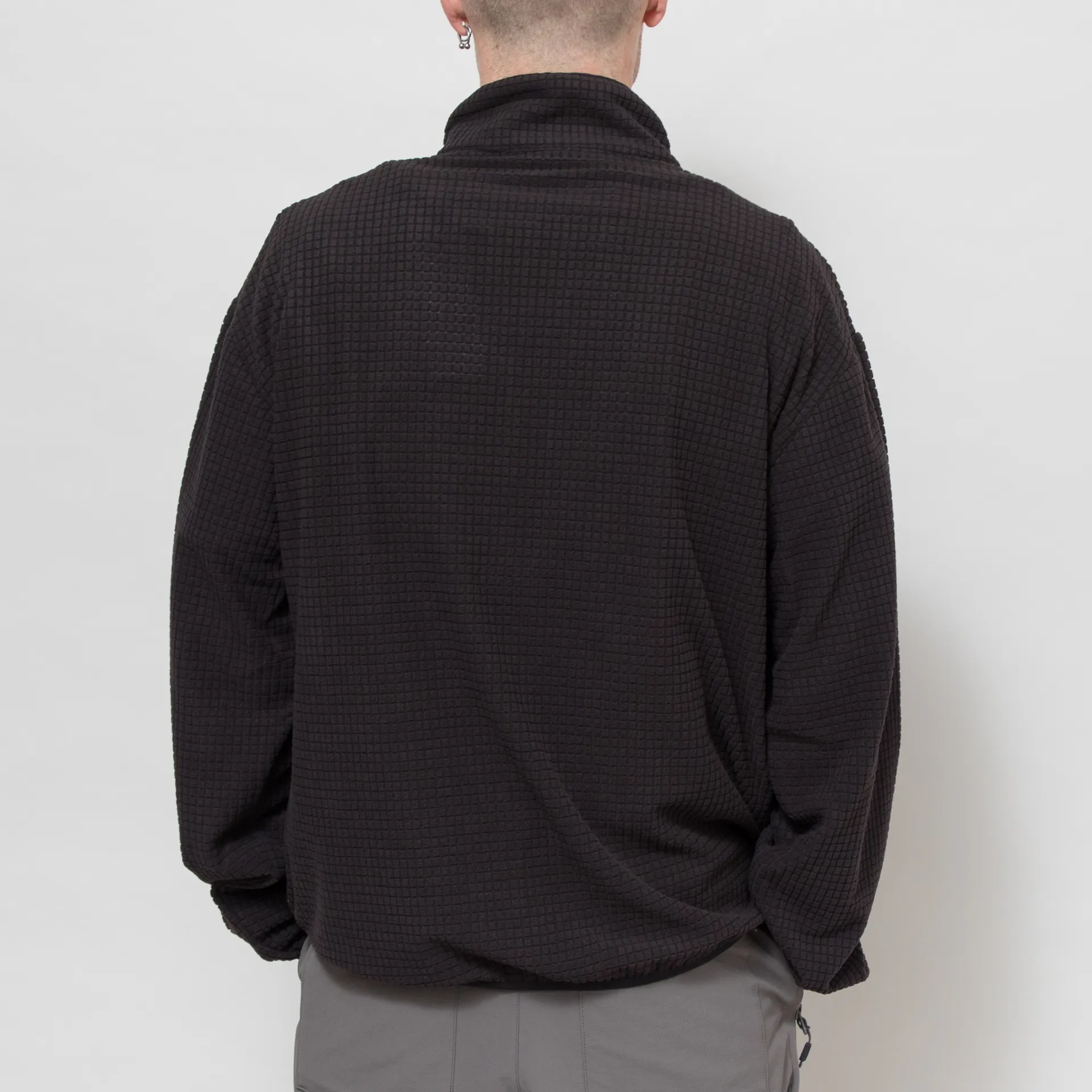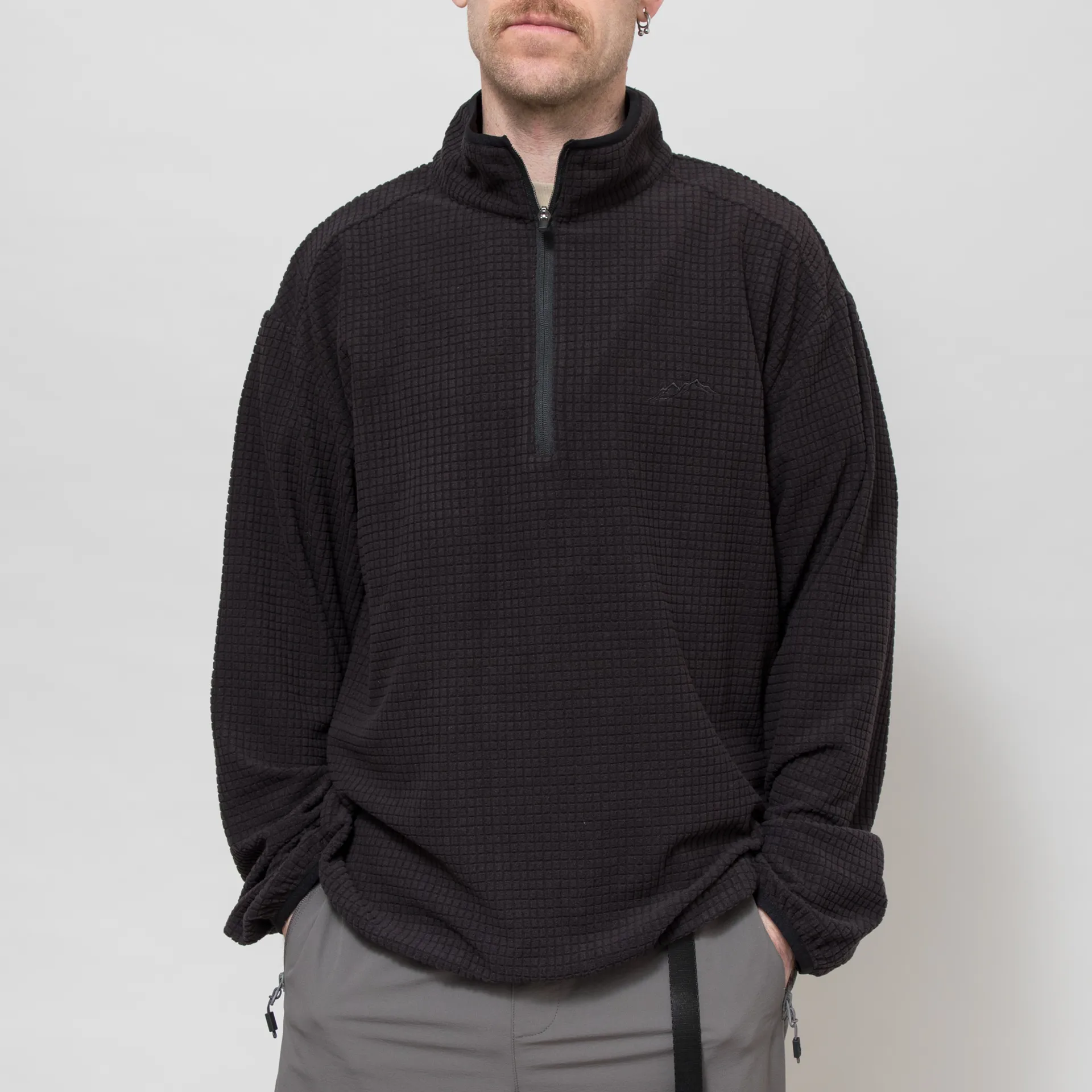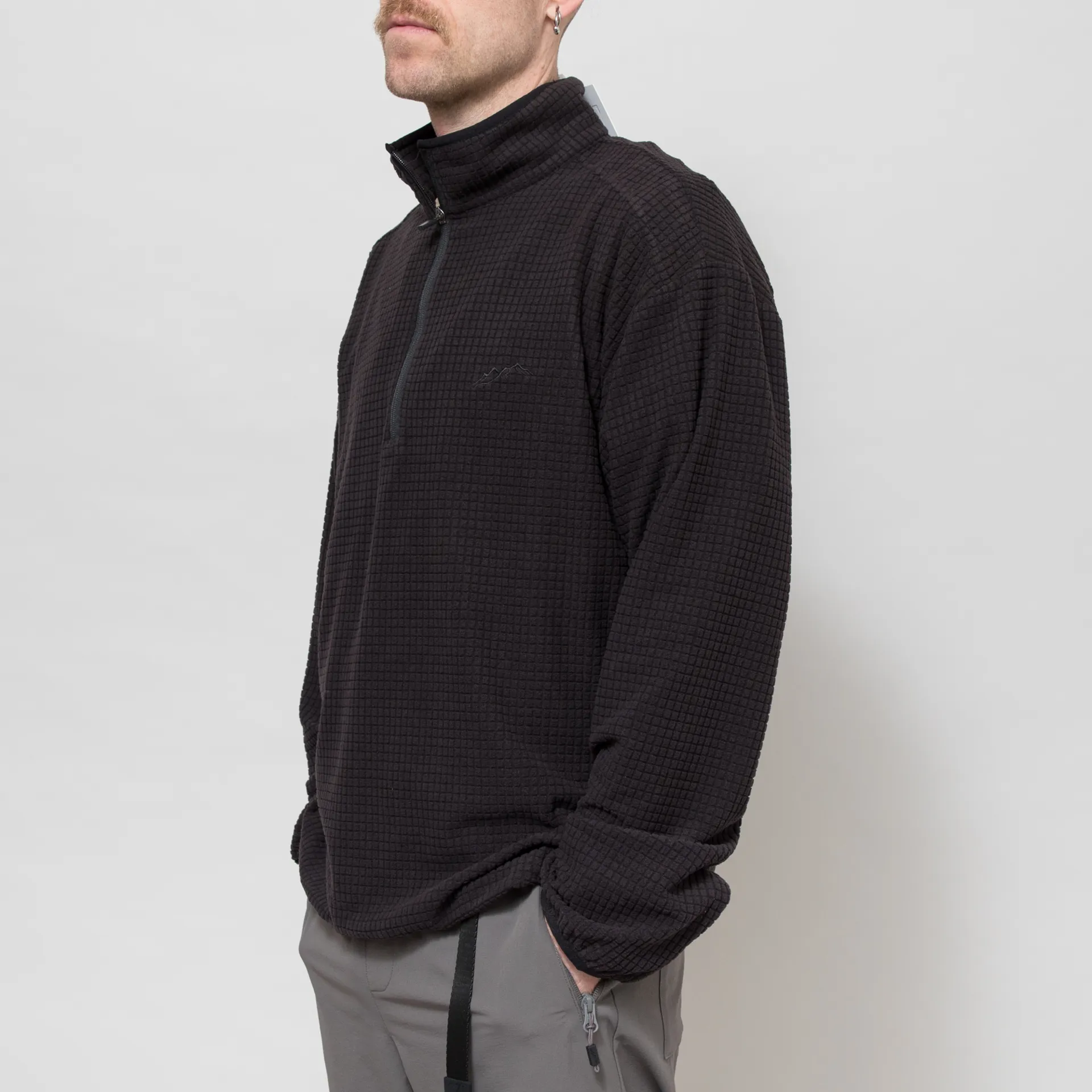 A half zip fleece from Mellow Clo, constructed from soft polyester with a distinct waffle texture
