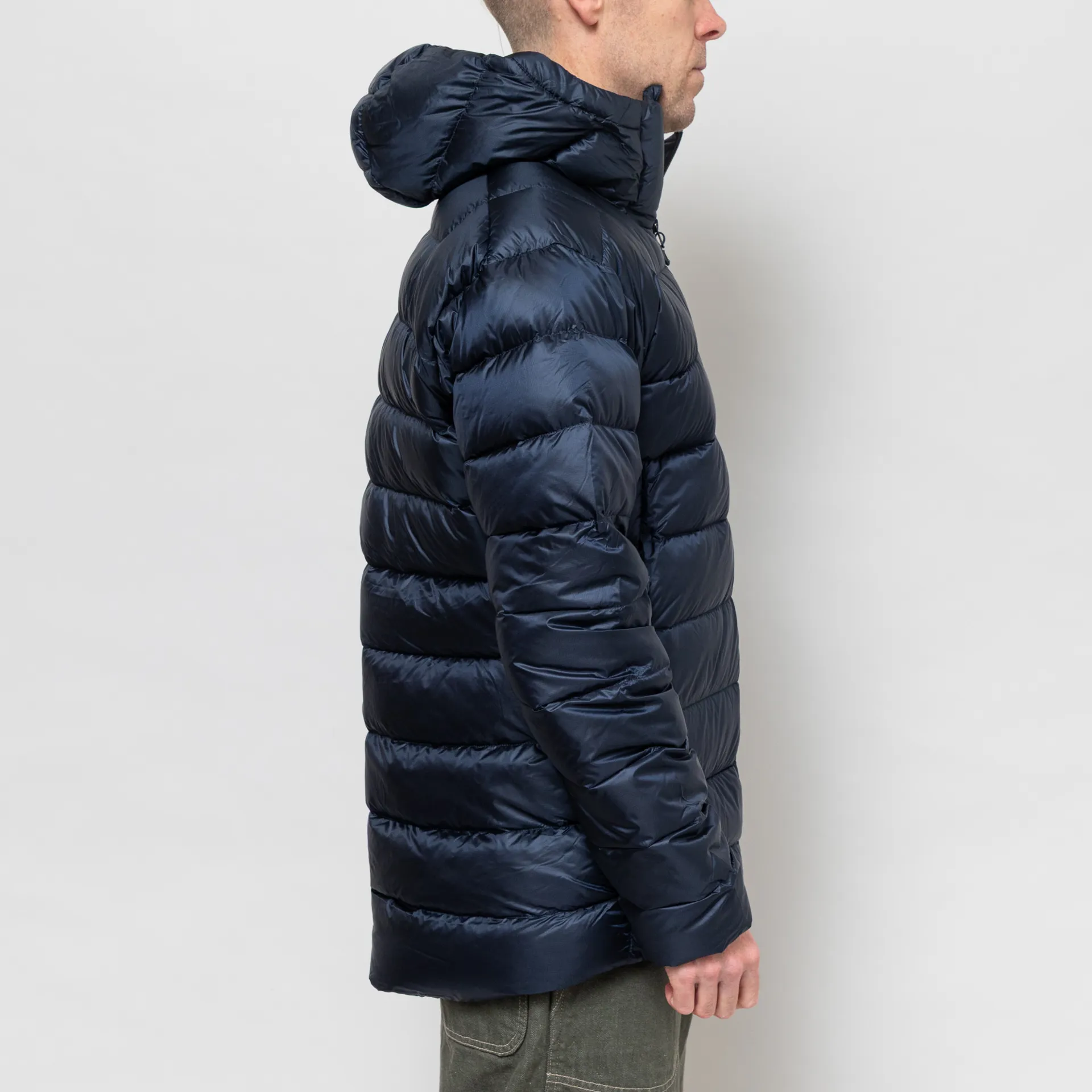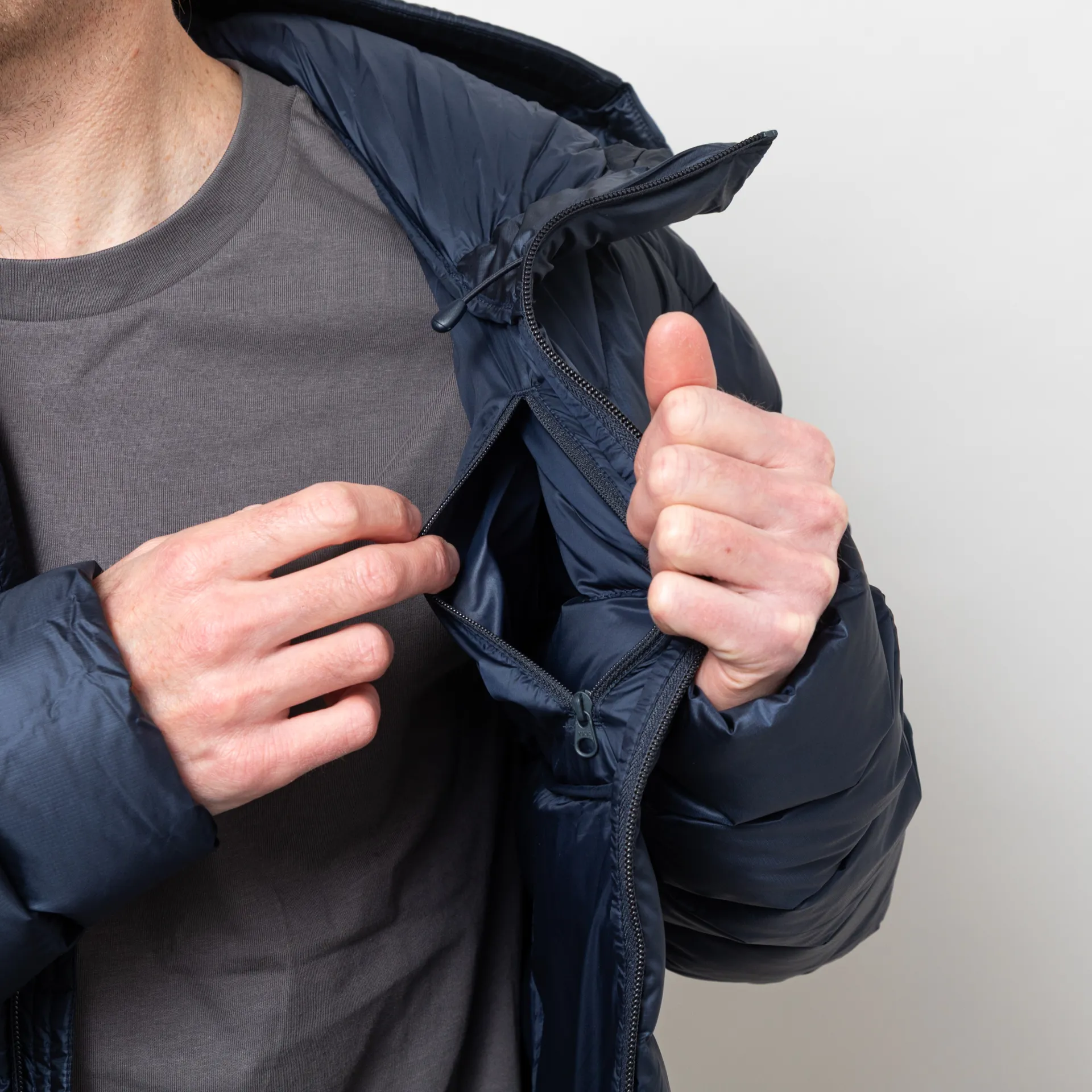 It has been engineered using Stitch-through baffle construction making it lightweight and packable into a cube stuff sack. It features a full zip-through front, leading up to a PIVOT 2 hood system which gives you separate aperture and crown adjustment for the perfect fit. With synthetic panels under the arms to reduce bulk and manage moisture build-up. The cuffs are elasticated to seal the draught out and there's plenty of room to stash your essentials with two zipped hand pockets and a single internal pocket.