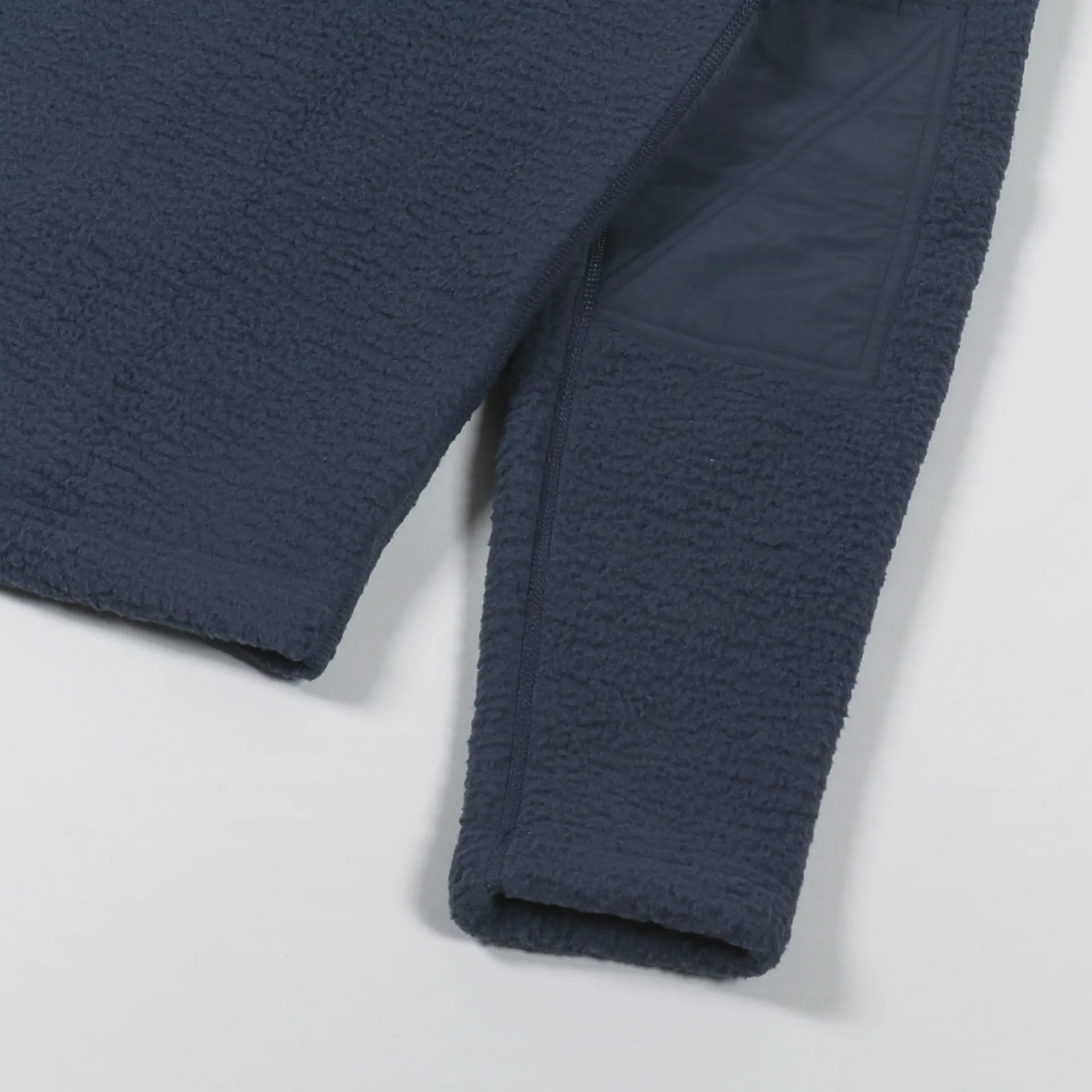 A warm winter pullover from UK-based outerwear label Montane, made from a brushed sherpa pile of 100% polyester with nylon overlays to the collar and elbows. It has elasticated cuffs, a half-zip neck, zippered handwarmer pockets and a woven logo patch to the chest.