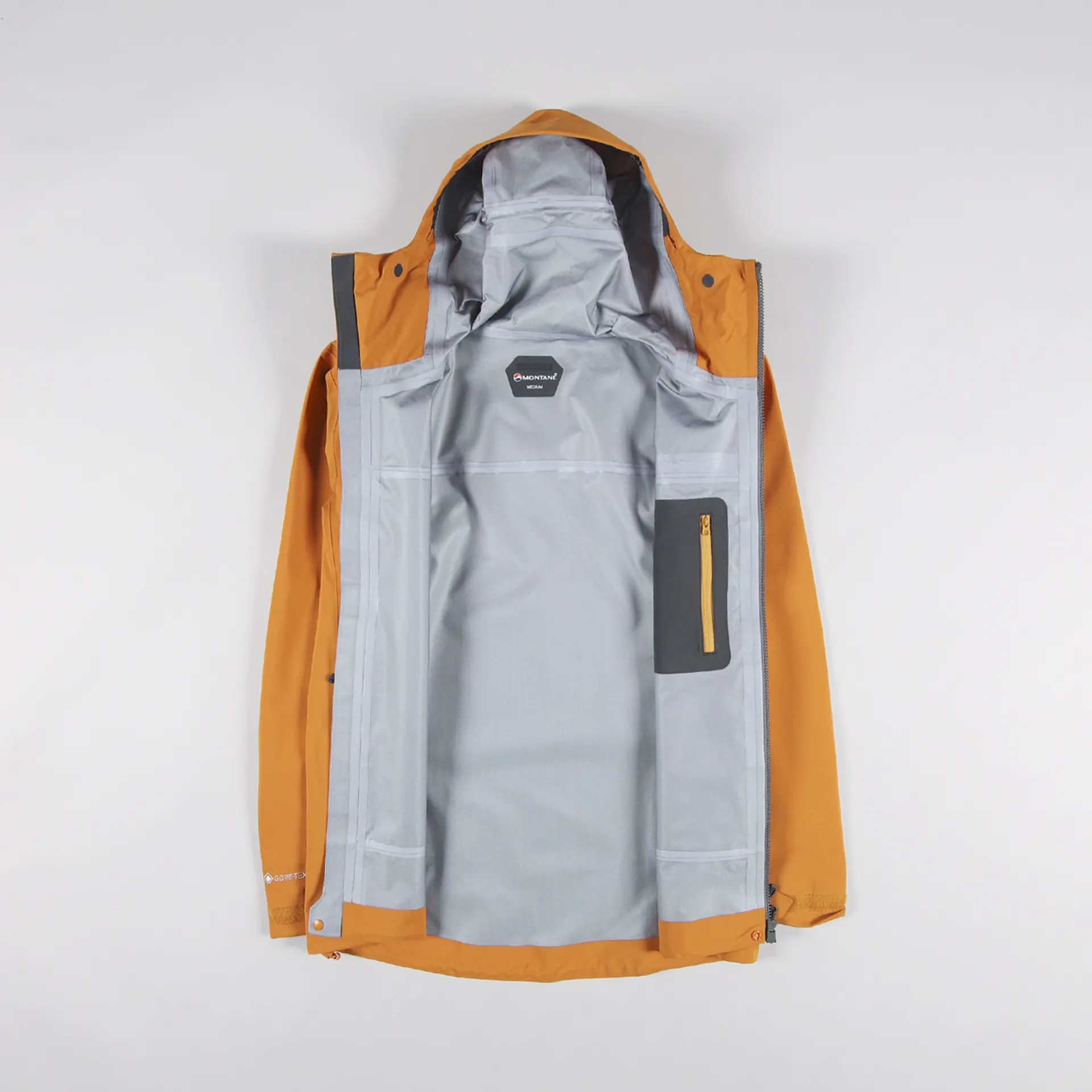 A waterproof jacket from British outerwear label Montane, made from 100% nylon with 70 Denier GORE-TEX Performance Technology and a full taped seam construction.