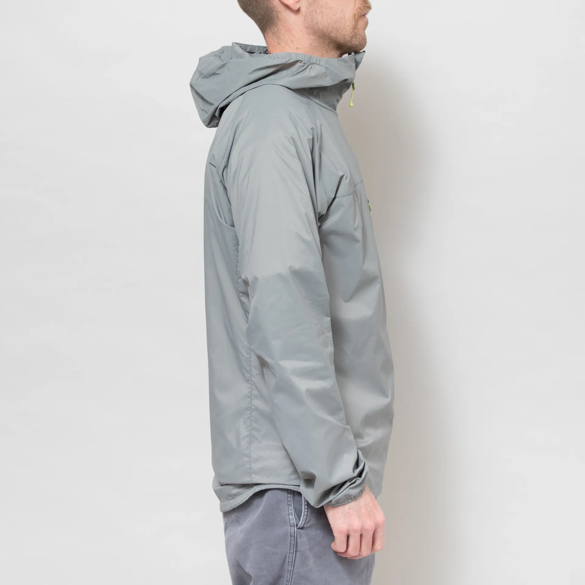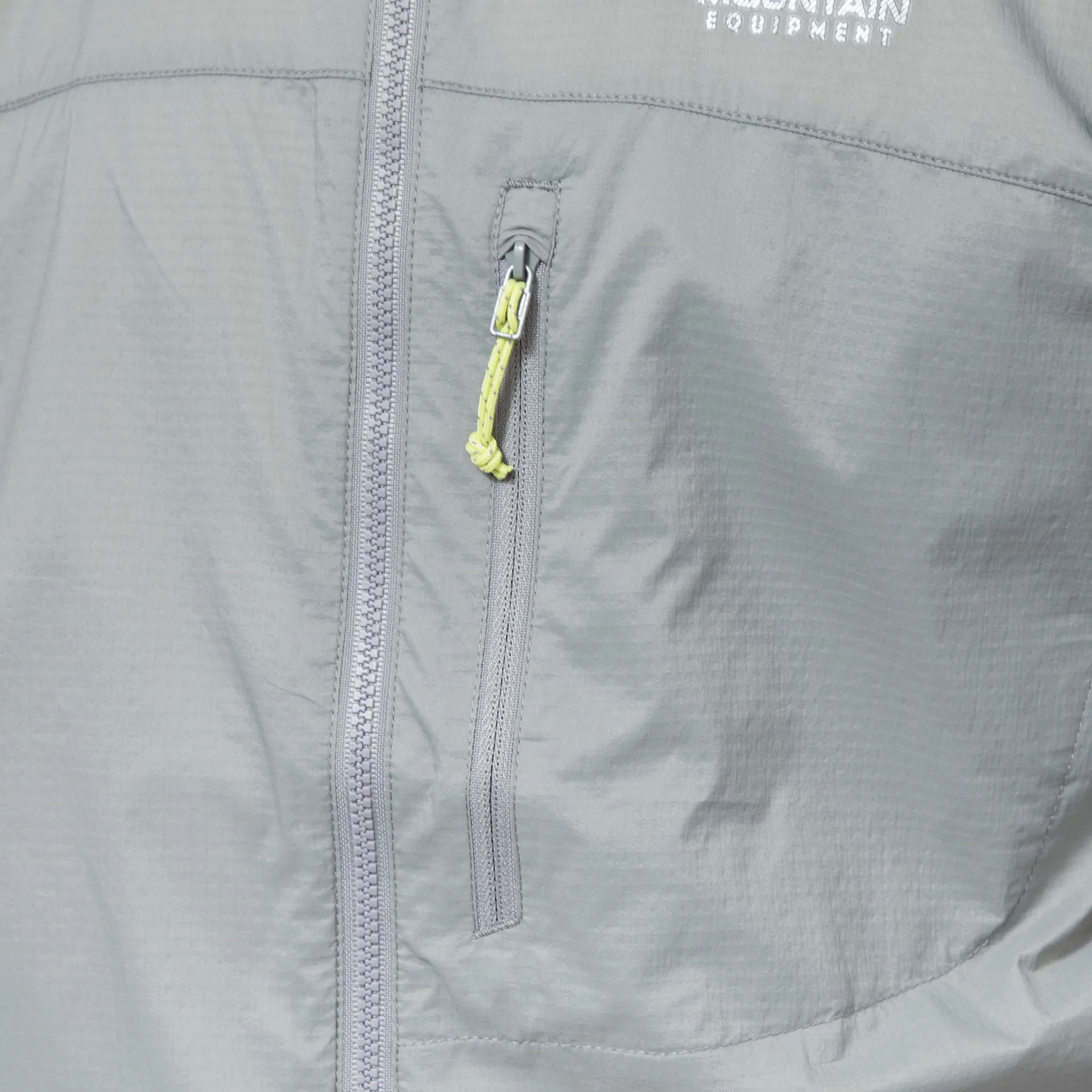 A windproof jacket from Mountain Equipment, constructed from ultralight EXOLITE soft shell, a double weave fabric that's tough and stretchy.