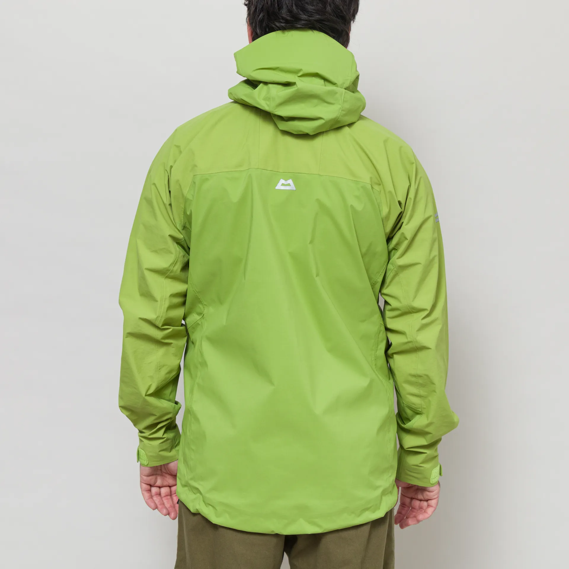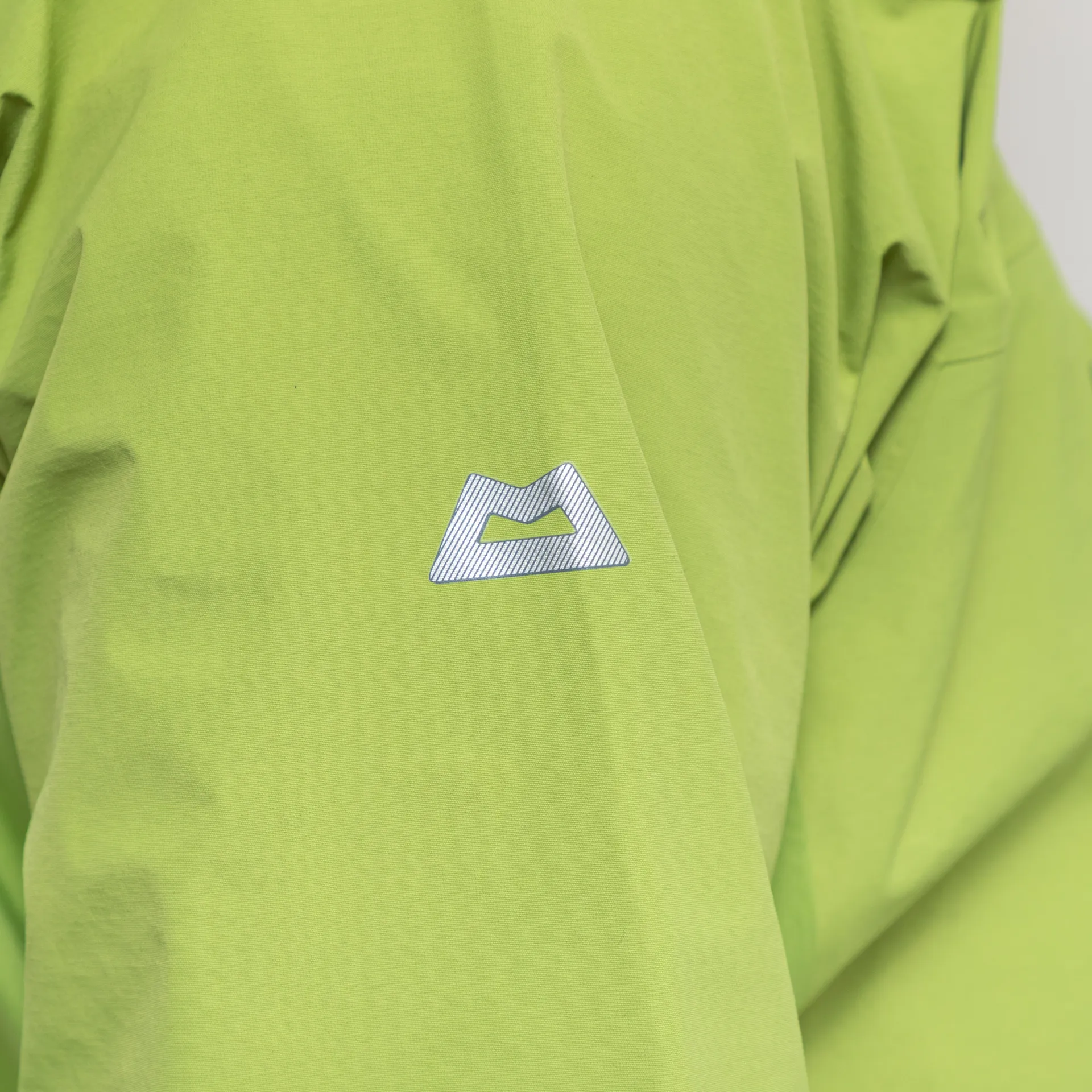 A technical jacket from Mountain Equipment, constructed with an abrasion-resistant 160 denier face fabric through the highest wear areas and a 70 denier fabric through the rest of the body for flexibility.